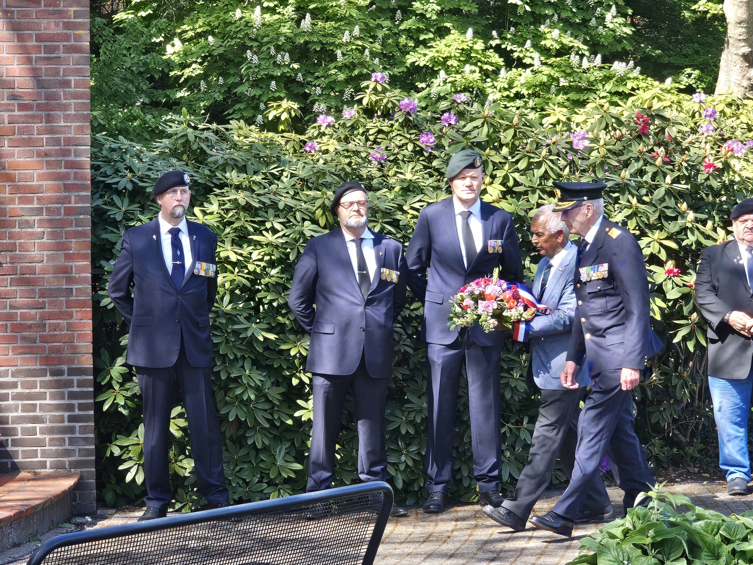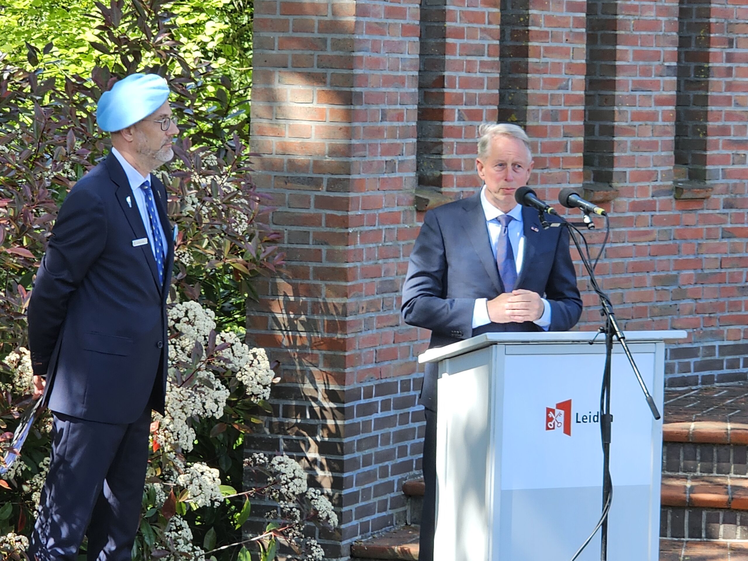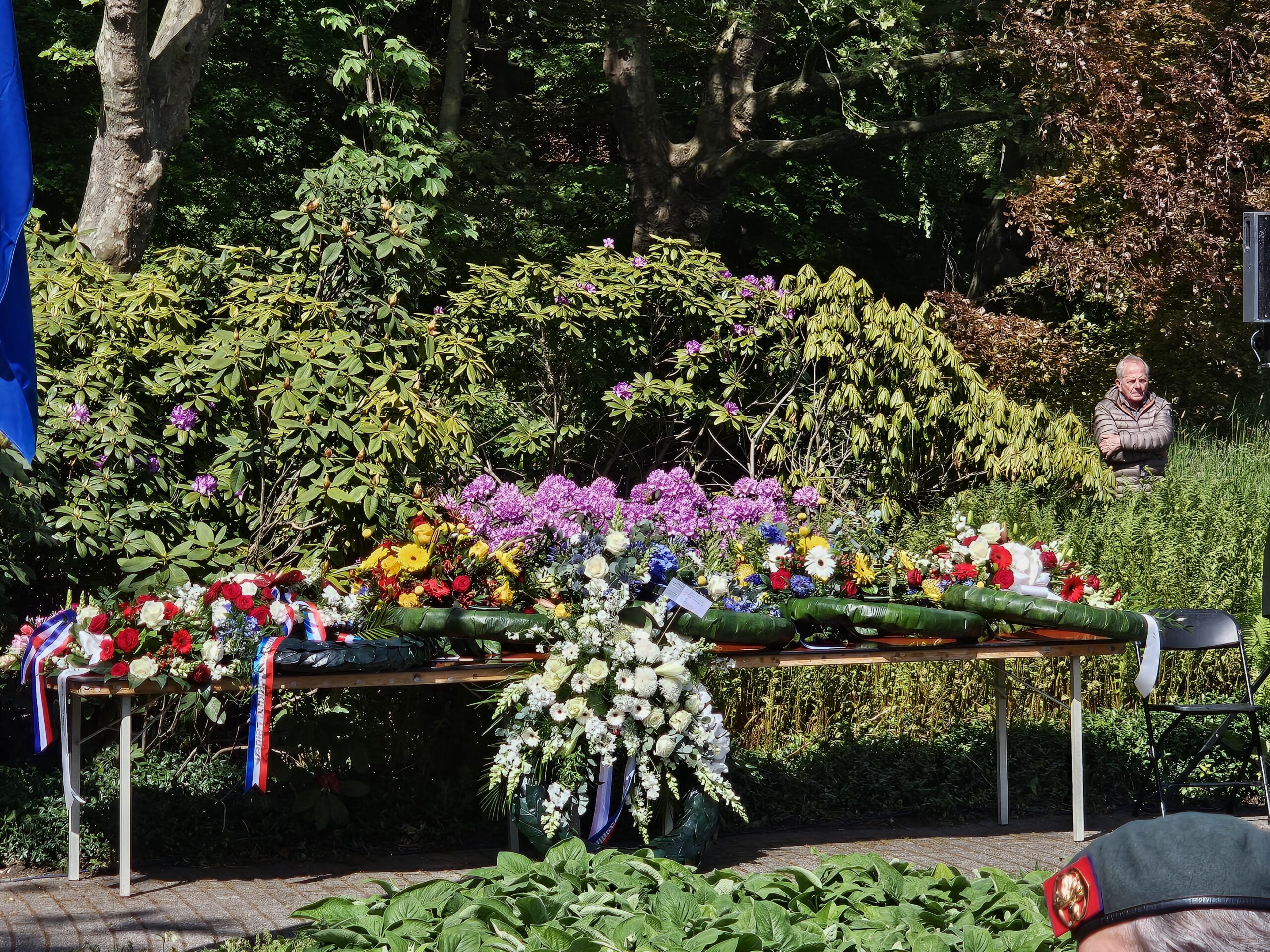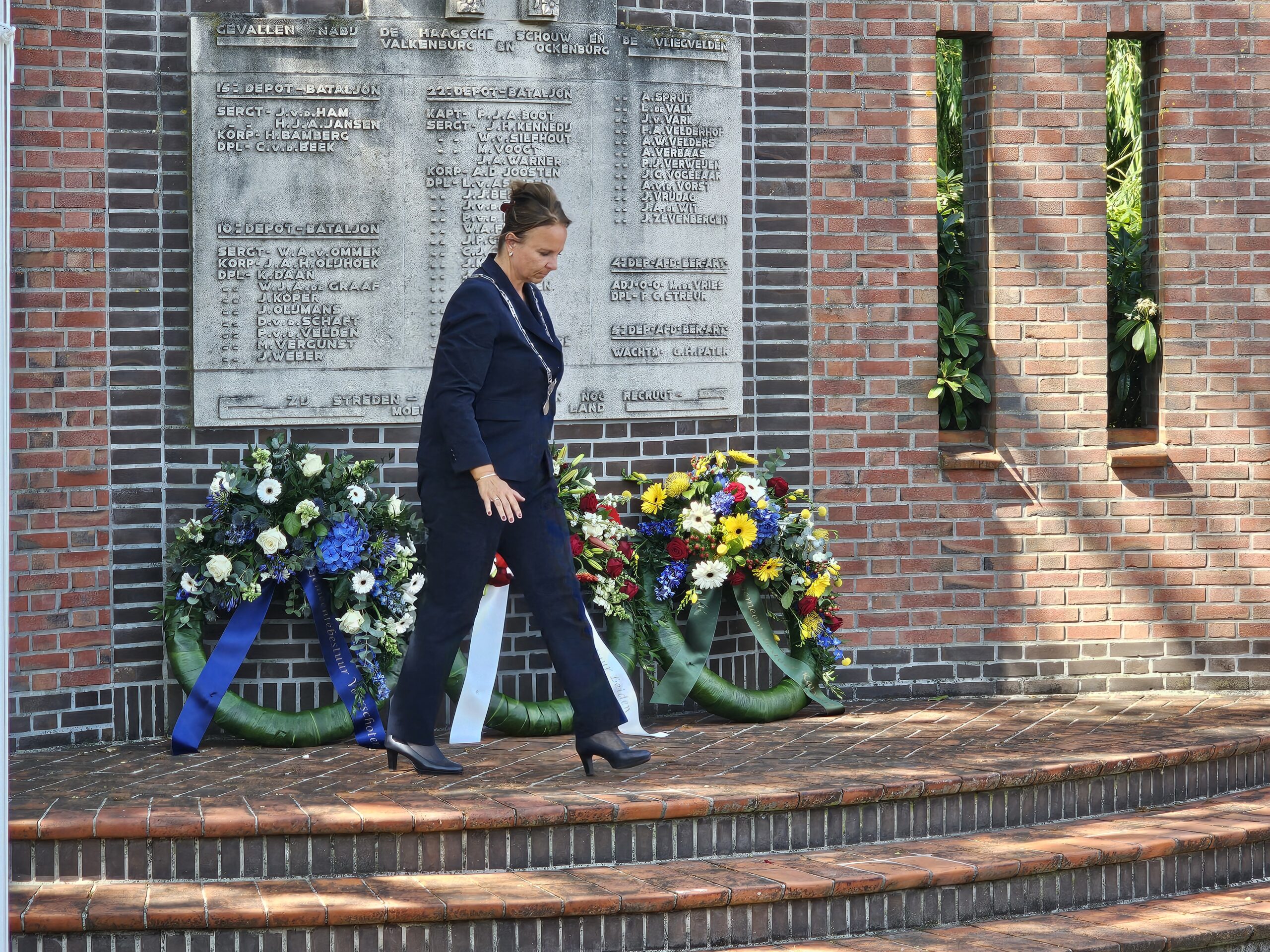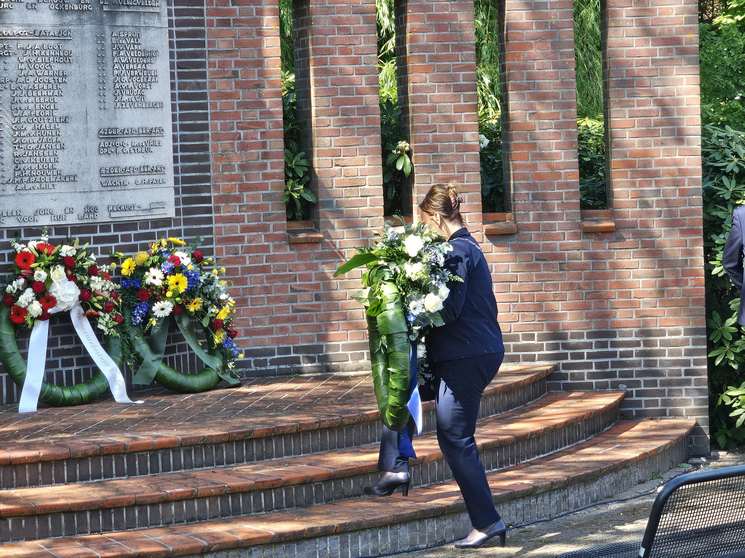 Aansluitend werden door de burgemeesters van Leiden, Oegstgeest, Voorschoten en Katwijk kransen gelegd. Na het spelen van de Last Post, het Wilhelmus en twee minuten stilte defileerden enkele honderden aanwezigen langs het monument, waarbij sommigen bloemen neerlegden.