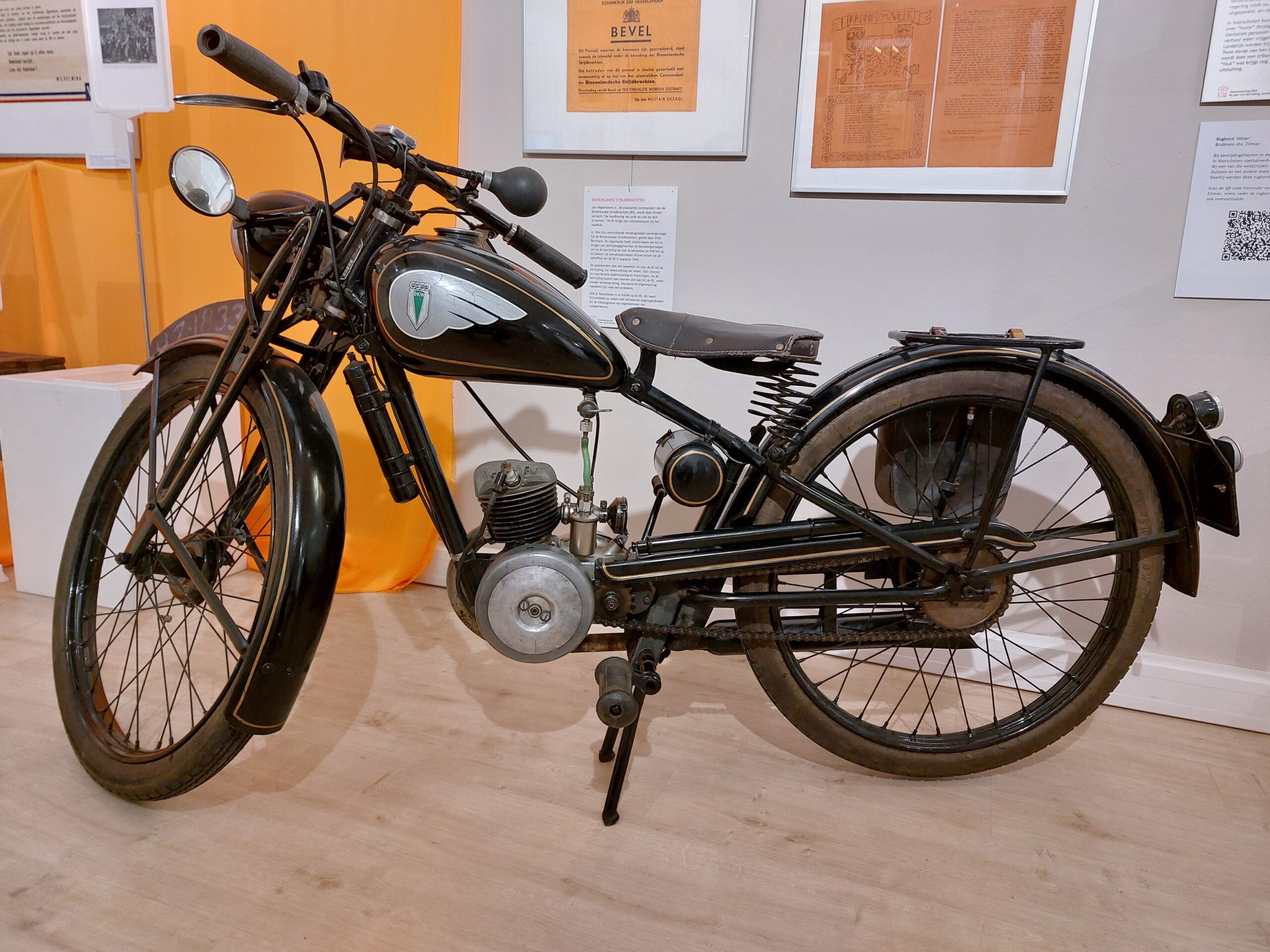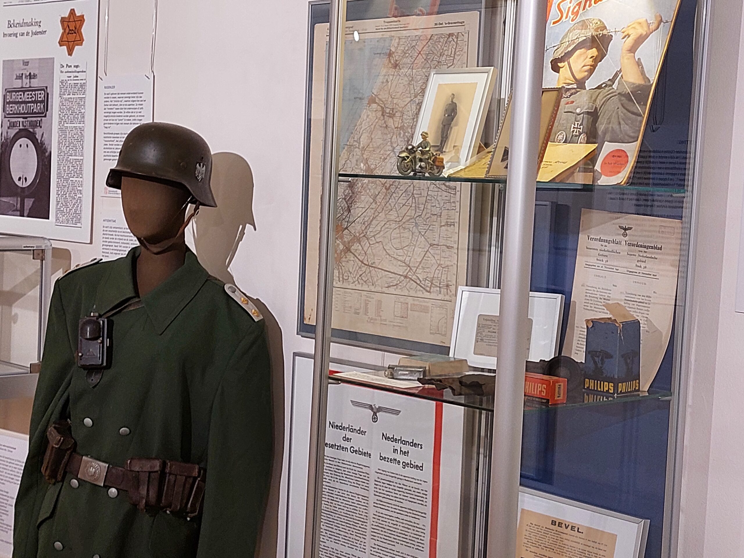 “De expositie is eigenlijk een vierluik”, zegt Thinkie Mets, samensteller van de tentoonstelling. “We beginnen met de oorlogstijd, dan volgt een deel over de bevrijding, daarna de viering van Bevrijdingsdag in de loop der jaren en tenslotte eindigt de tentoonstelling met de vraag ‘wat bekent vrijheid’. In de expositie ligt de focus weliswaar op Voorschoten, maar de gebeurtenissen worden ook in een bredere context geplaatst.”