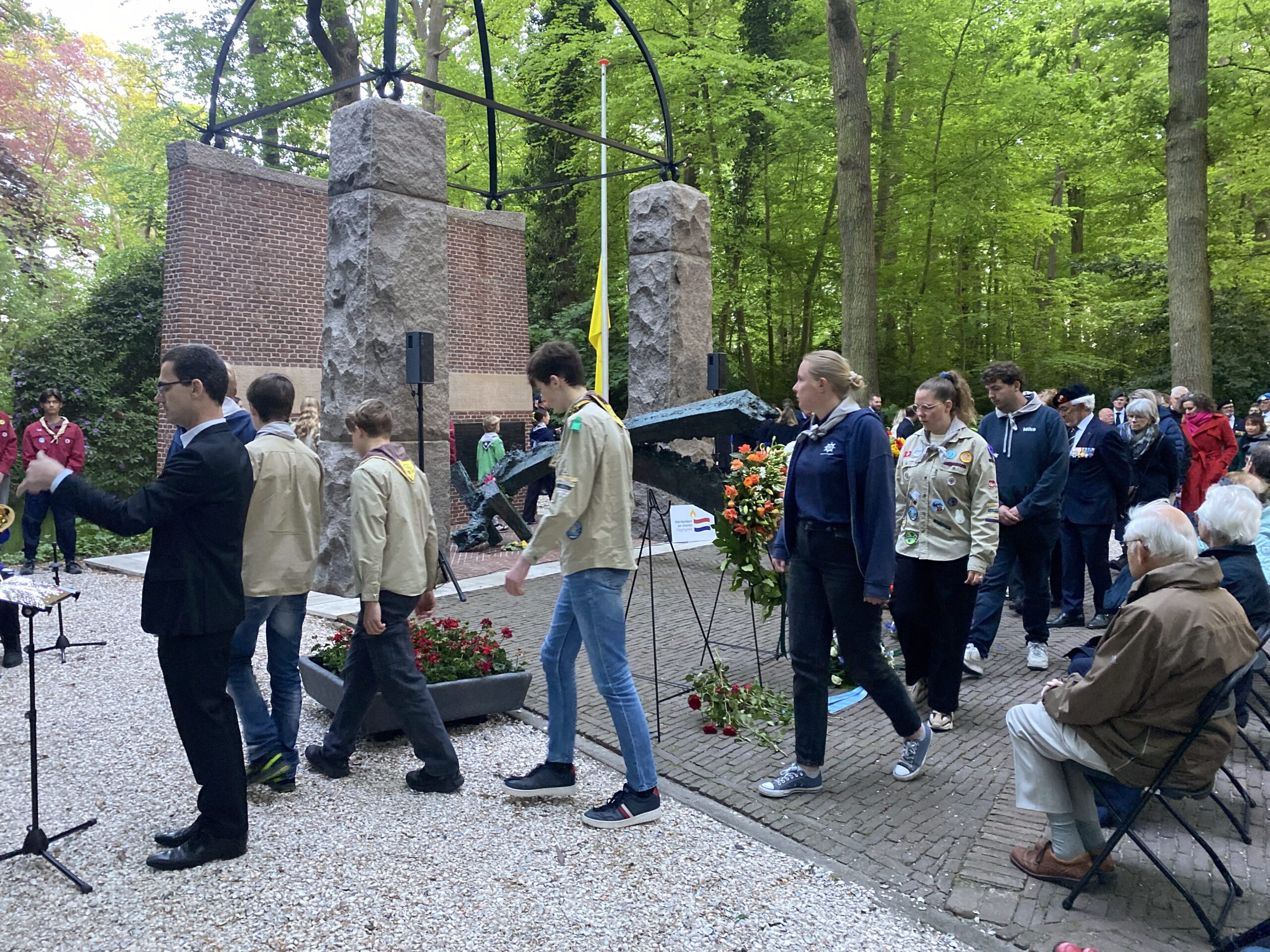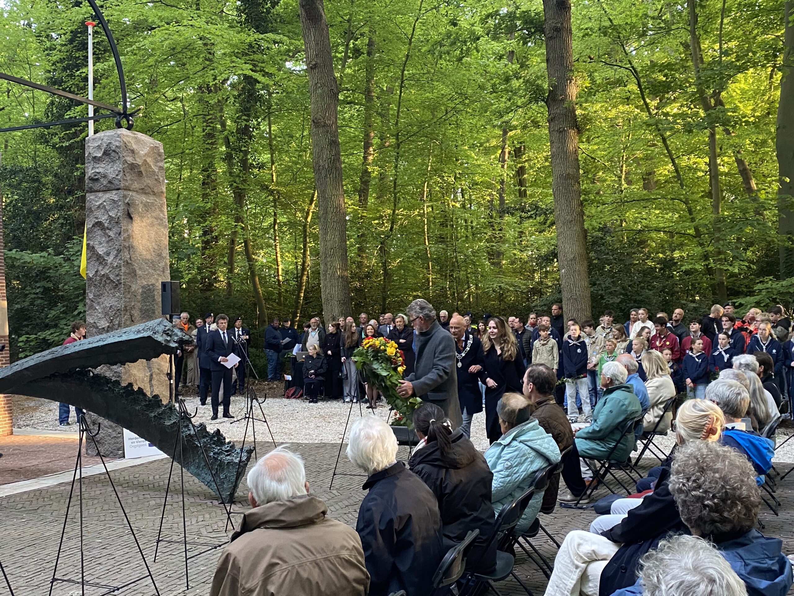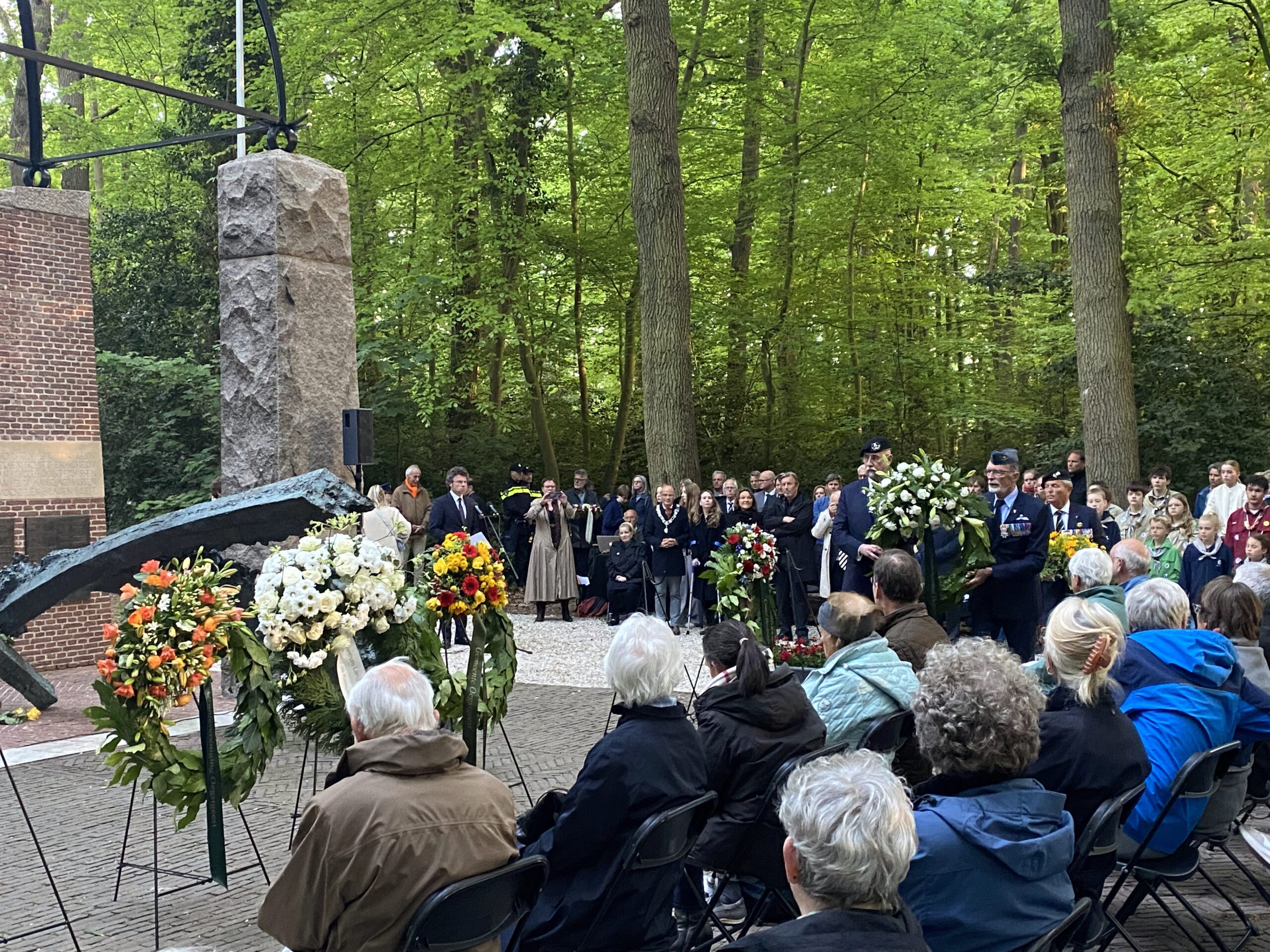 Zondagavond werden ook in Oegstgeest, bij het oorlogsmonument in het Bos van Wijckerslooth, de oorlogsslachtoffers herdacht. De ceremonie werd georganiseerd door het Comité Herdenken en Vieren.