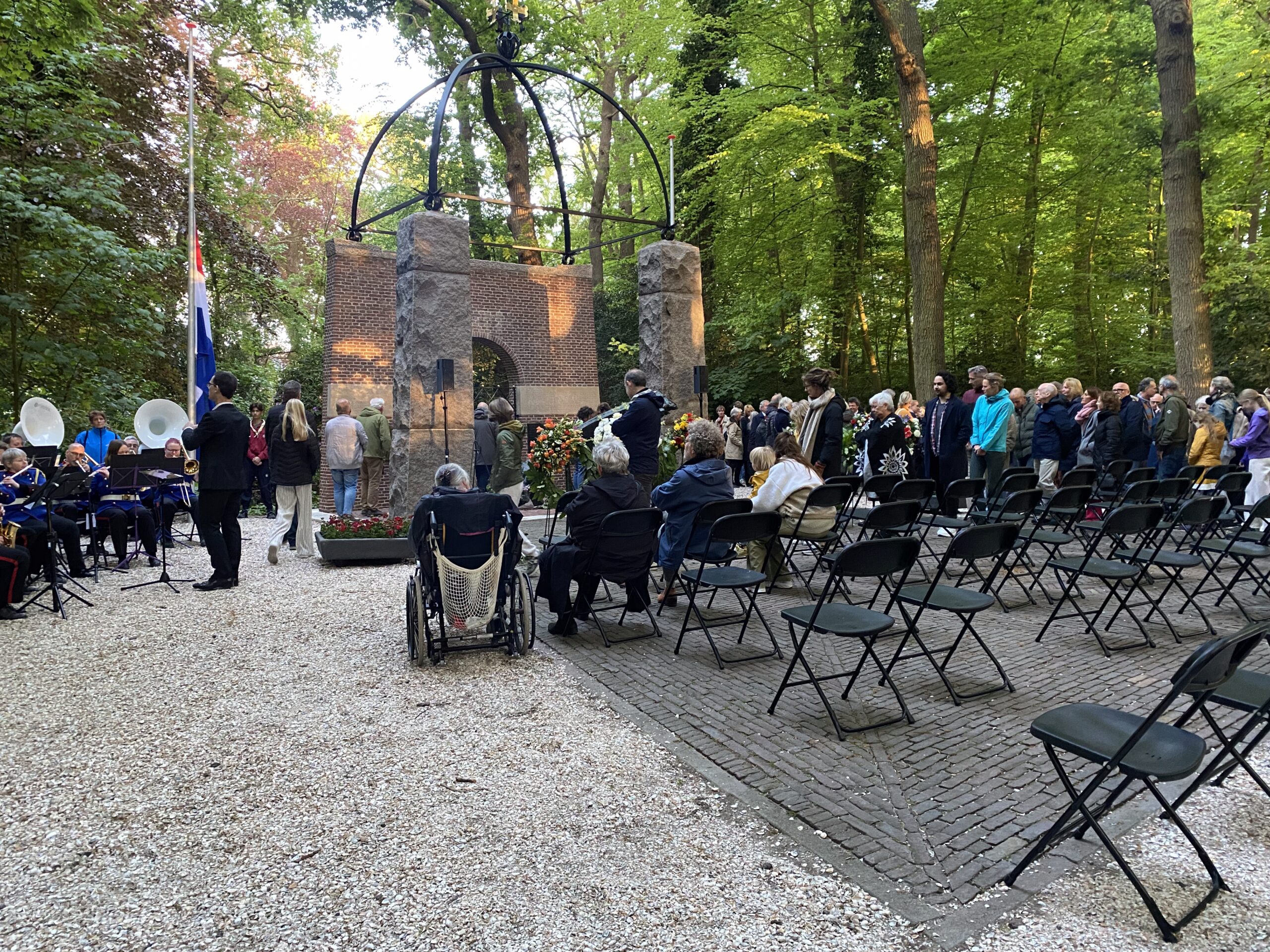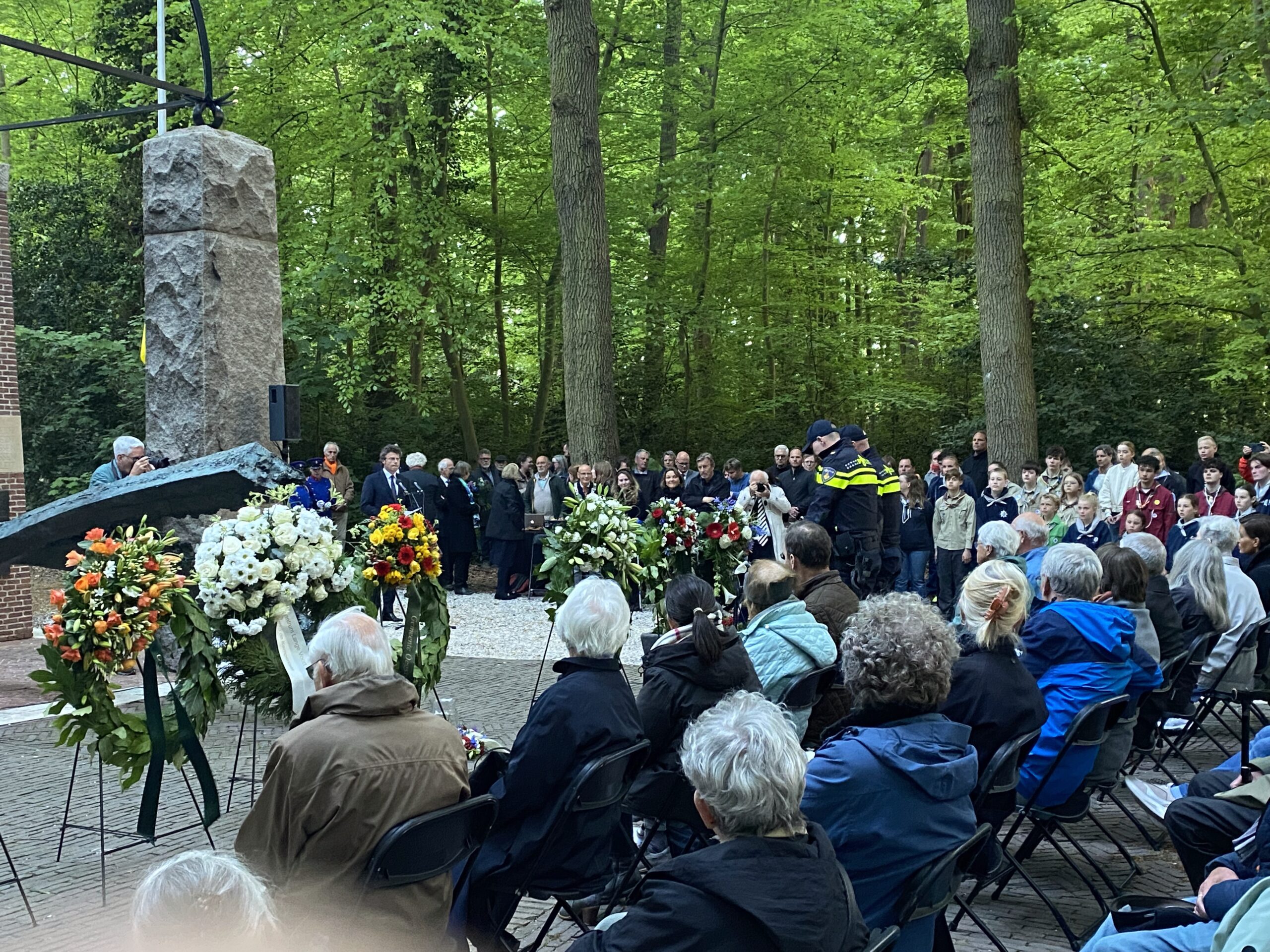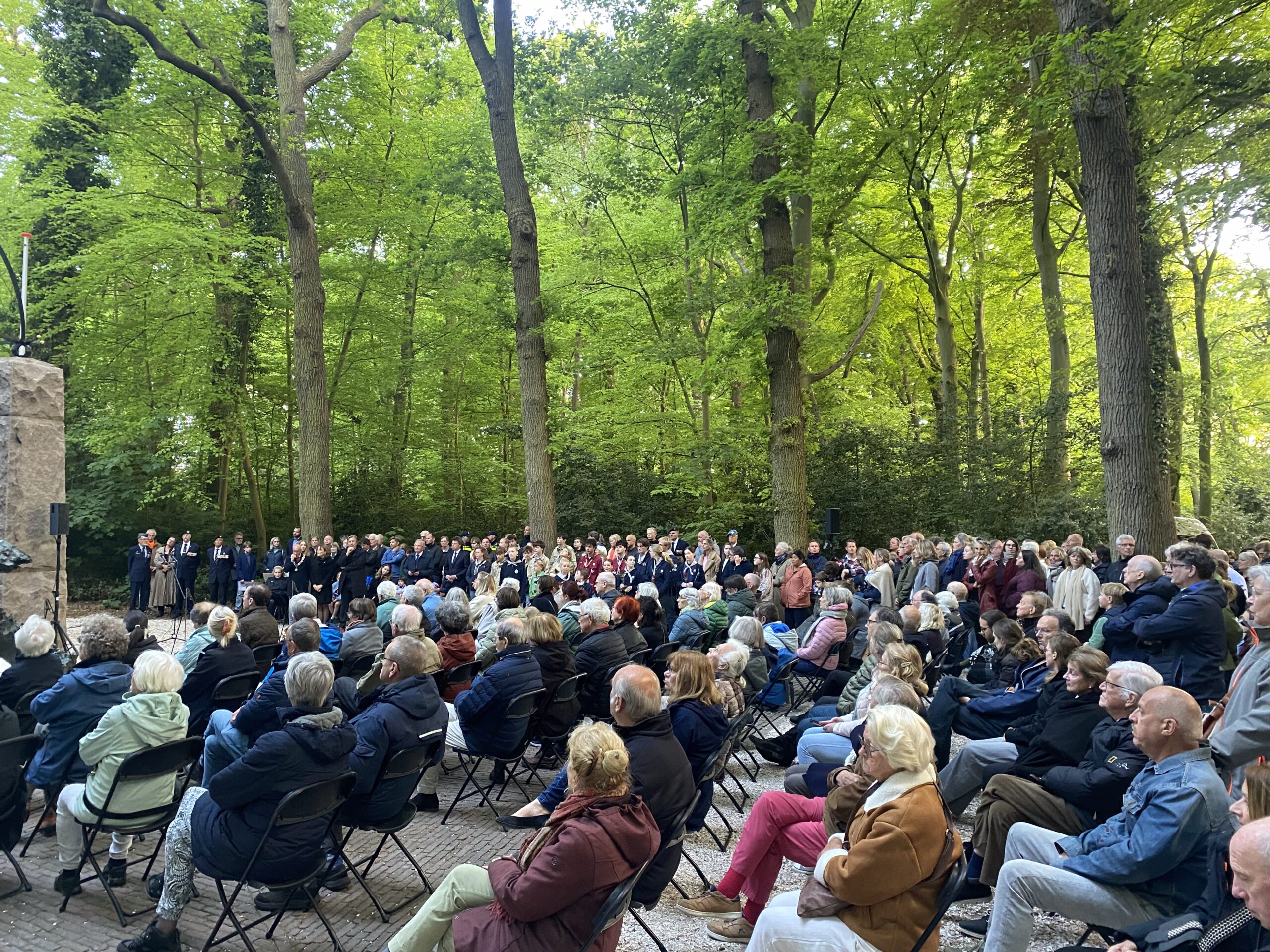 Zondagavond werden ook in Oegstgeest, bij het oorlogsmonument in het Bos van Wijckerslooth, de oorlogsslachtoffers herdacht. De ceremonie werd georganiseerd door het Comité Herdenken en Vieren.