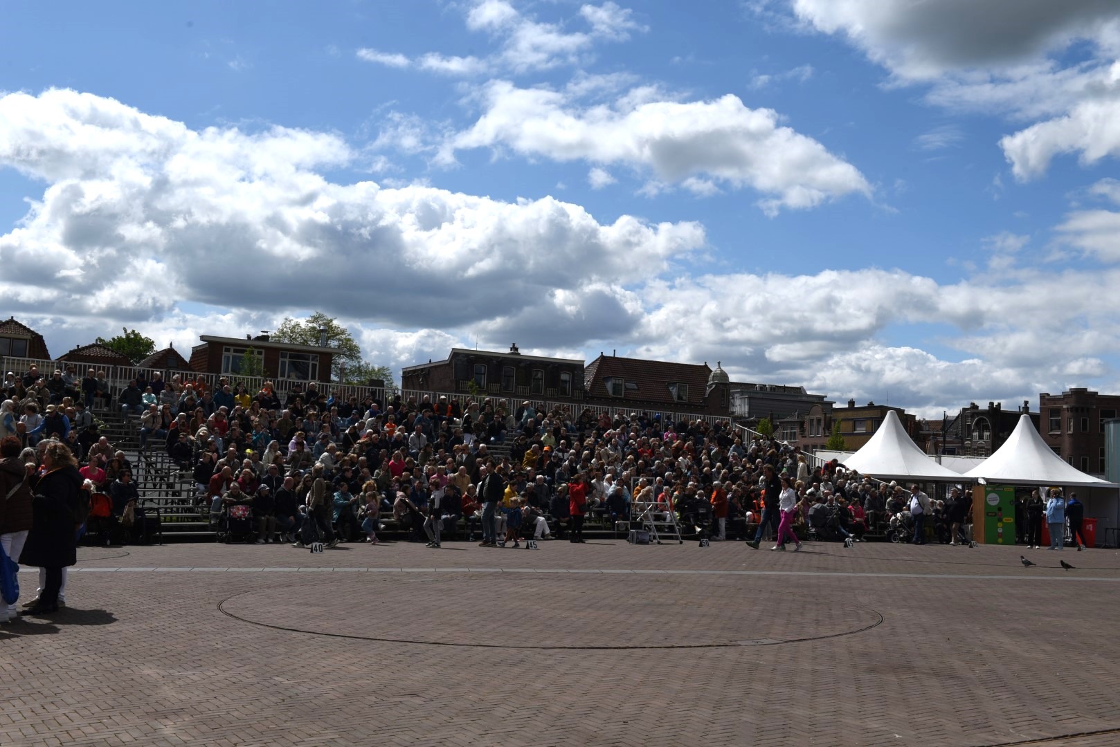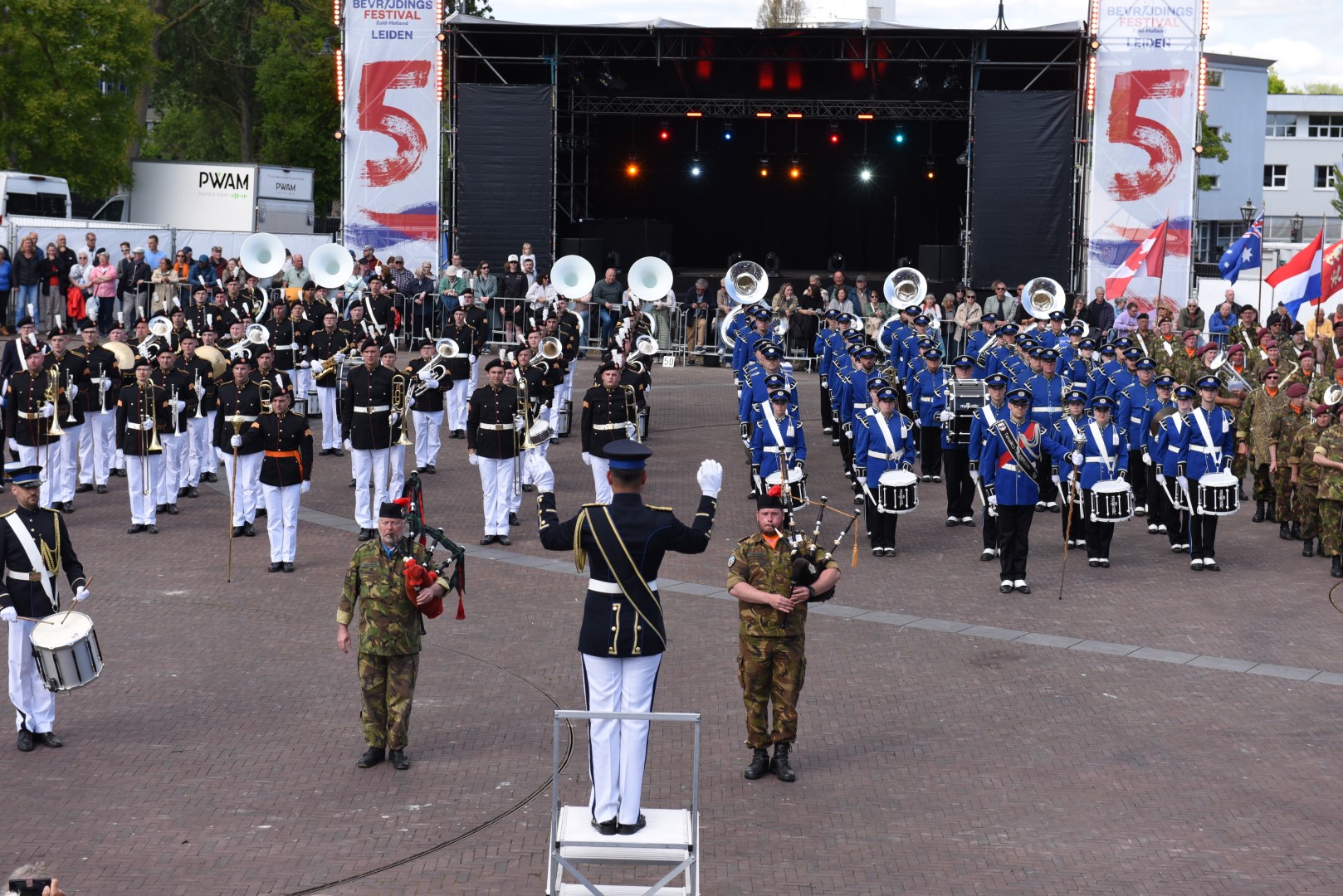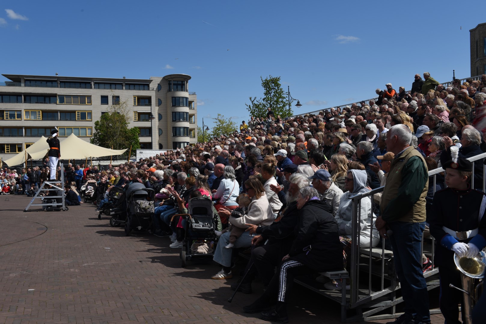 De belangstelling voor de grote Bevrijdingstaptoe die ter ere van 80 jaar vrijheid werd gehouden op de Lammermarkt overtrof maandag alle verwachtingen. De organiserende Stichting Bevrijding Leiden had een grote tribune neergezet en dacht daarmee het publiek wel van een zitplaats en goed zicht te voorzien. Het bleek bij lange na niet genoeg.