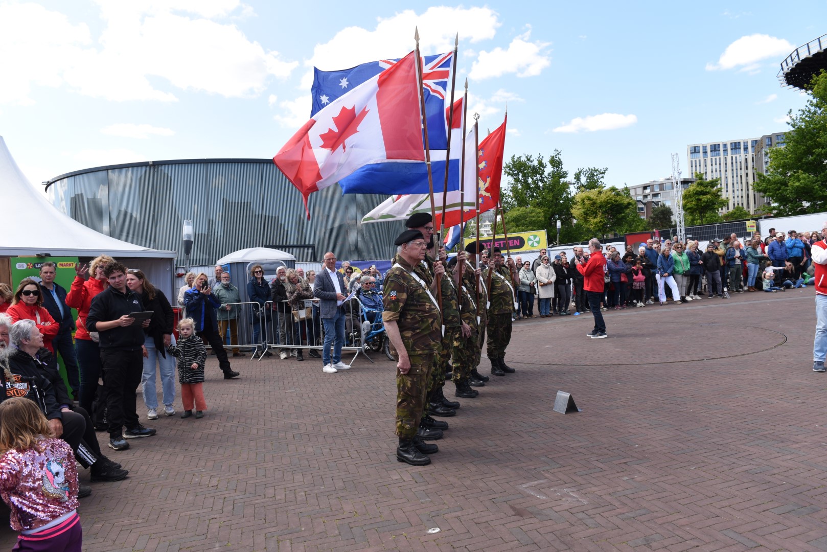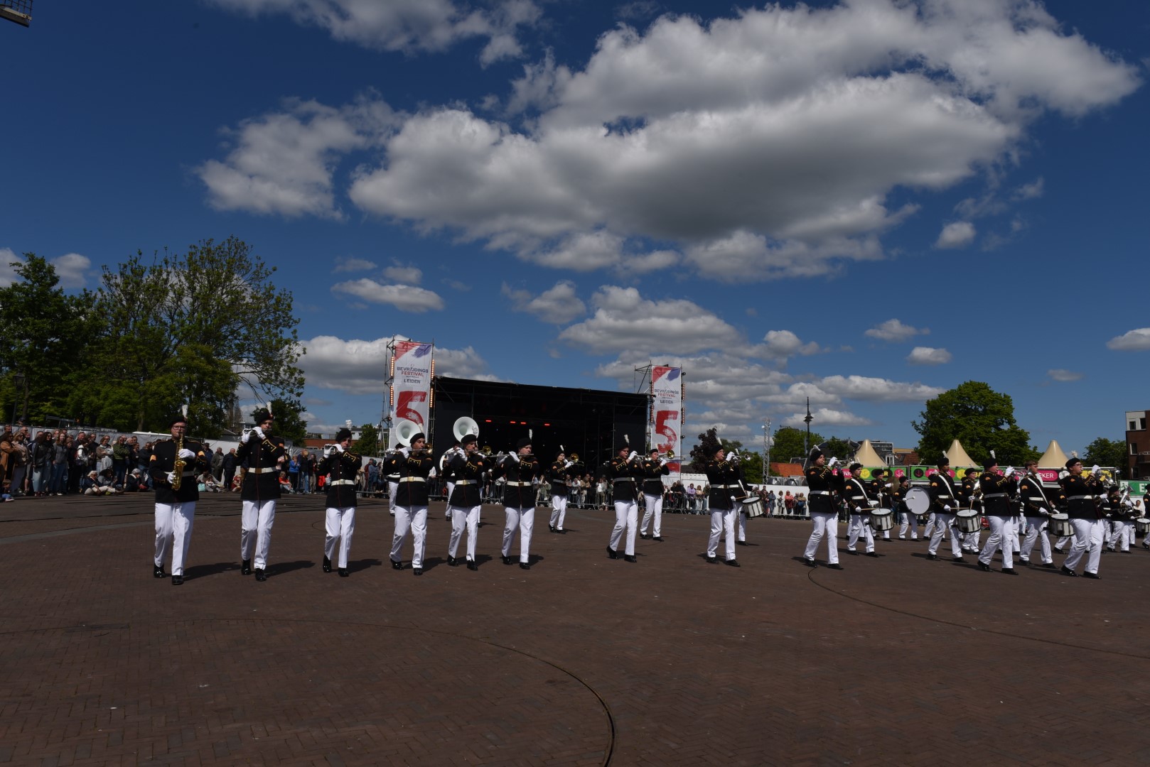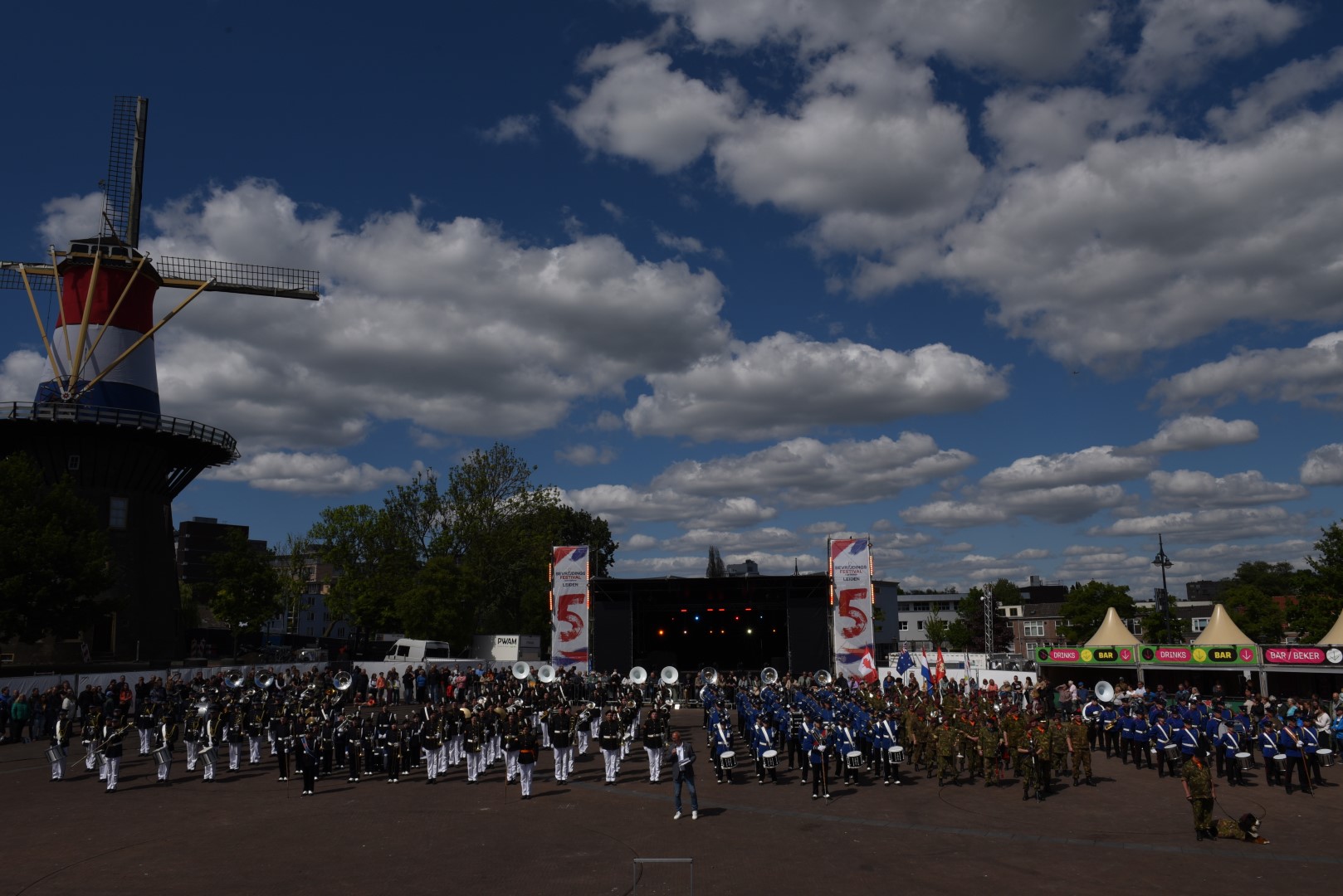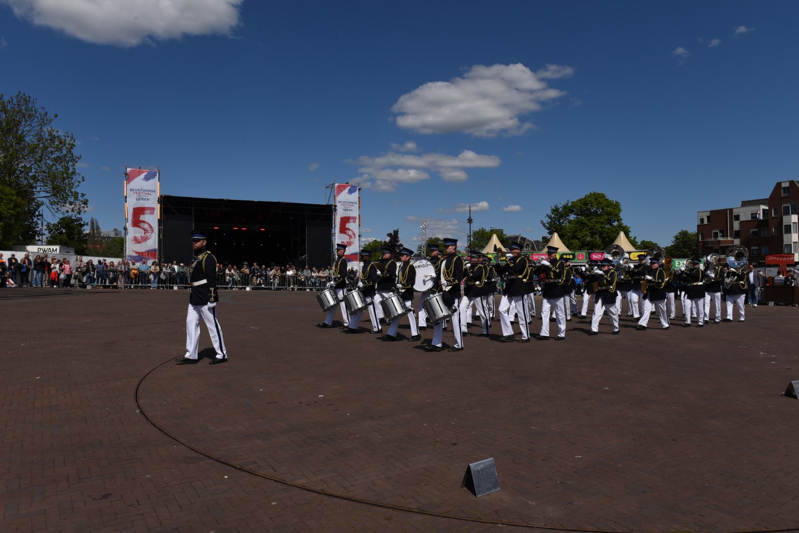 De belangstelling voor de grote Bevrijdingstaptoe die ter ere van 80 jaar vrijheid werd gehouden op de Lammermarkt overtrof maandag alle verwachtingen. De organiserende Stichting Bevrijding Leiden had een grote tribune neergezet en dacht daarmee het publiek wel van een zitplaats en goed zicht te voorzien. Het bleek bij lange na niet genoeg.