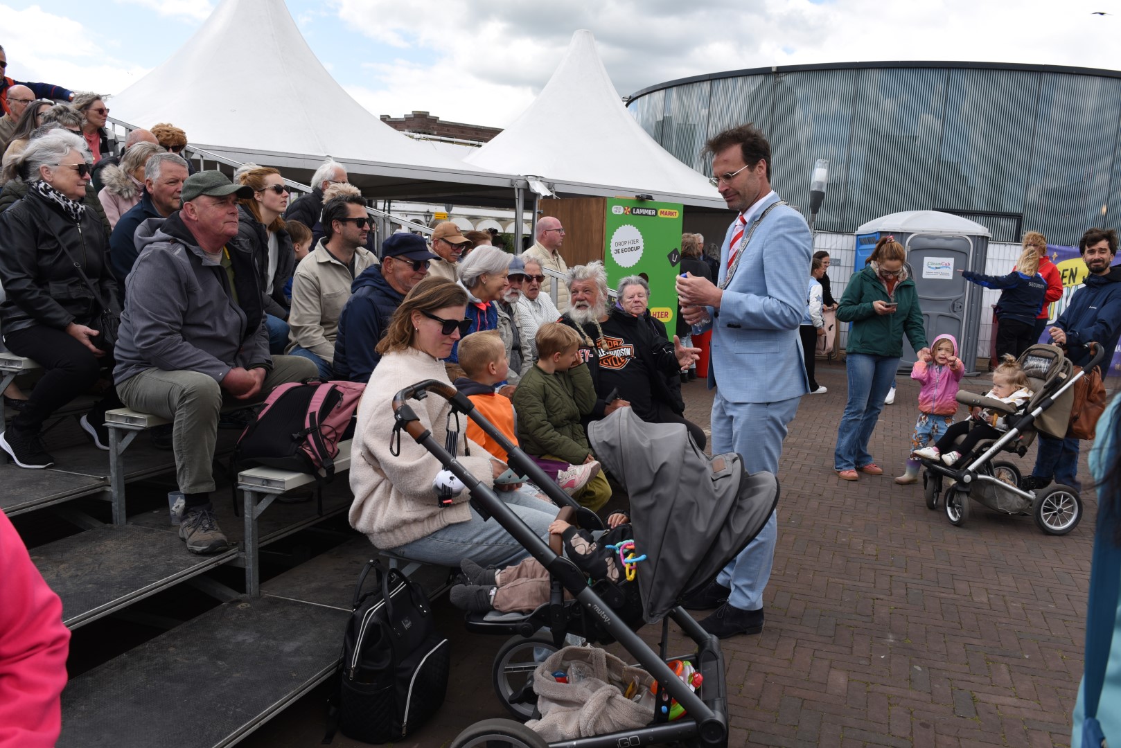 Nadat de tribune prop en propvol zat en iedereen op verzoek van de organisatie al een stukje ingeschoven had, konden de overige belangstellenden langs het speelveld staan. Al snel stond het daar ook rijen dik en mocht noodgedwongen er geen publiek meer bij. Dat zorgde voor een behoorlijke rij buiten het festivalterrein. Voor de organisatie een dubbel gevoel, de massale belangstelling was geweldig, maar dat er mensen teleurgesteld moesten worden omdat er geen plaats meer was, is natuurlijk jammer.