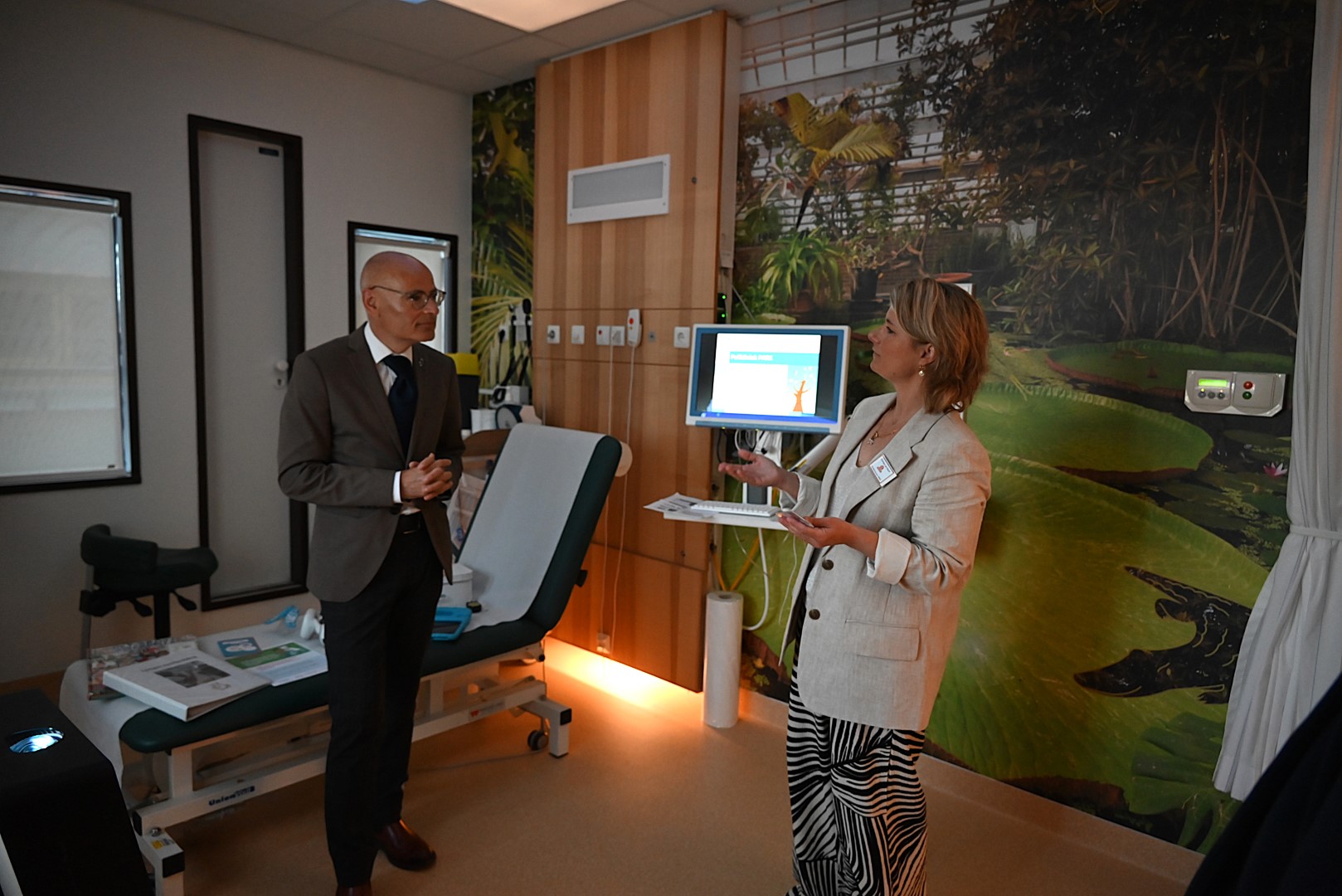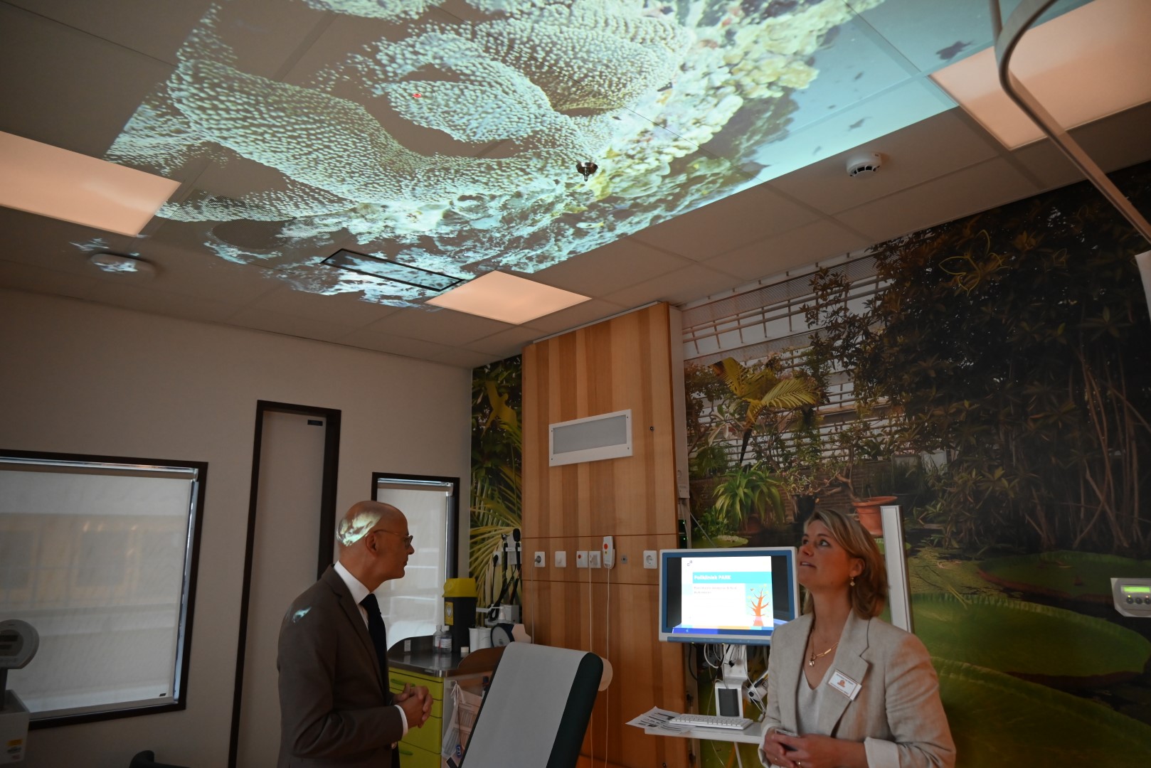 Jaensch kreeg een uitgebreide rondleiding door het ziekenhuis. In een van de behandelkamers van de polikliniek vertelden Liesbeth de Bruijn, kinderintensivist, anesthesist en Veronique van Noort, kinderverpleegkundige hoe zij kinderen proberen af te leiden van vervelende onderzoeken. Zij gebruiken hier onder andere een doormiddel van onder andere een Qwiek up en VR brillen voor. Verpleegkundig manager Anne-Marie Geenjaar gaf een rondleiding over de verpleegafdeling.