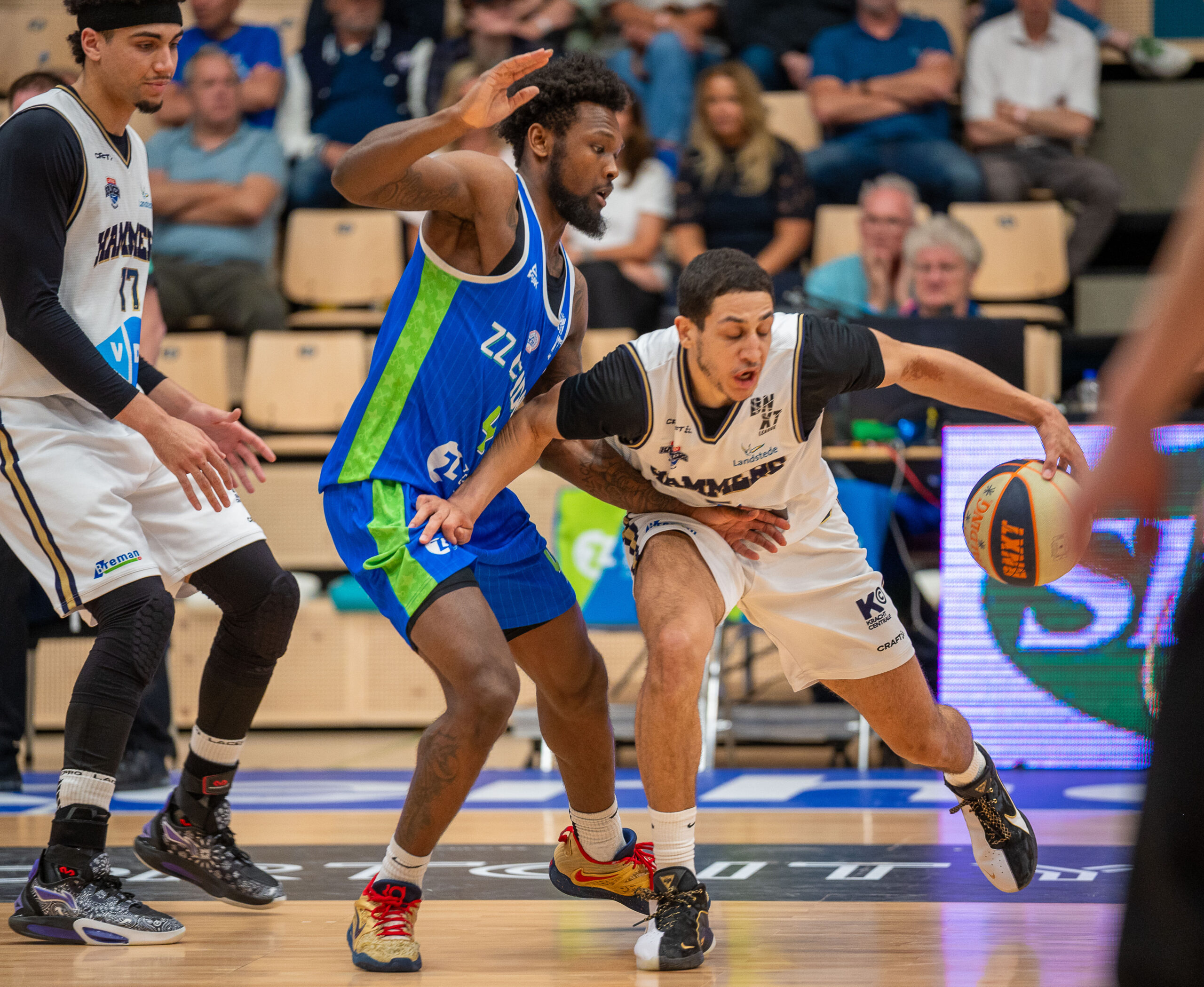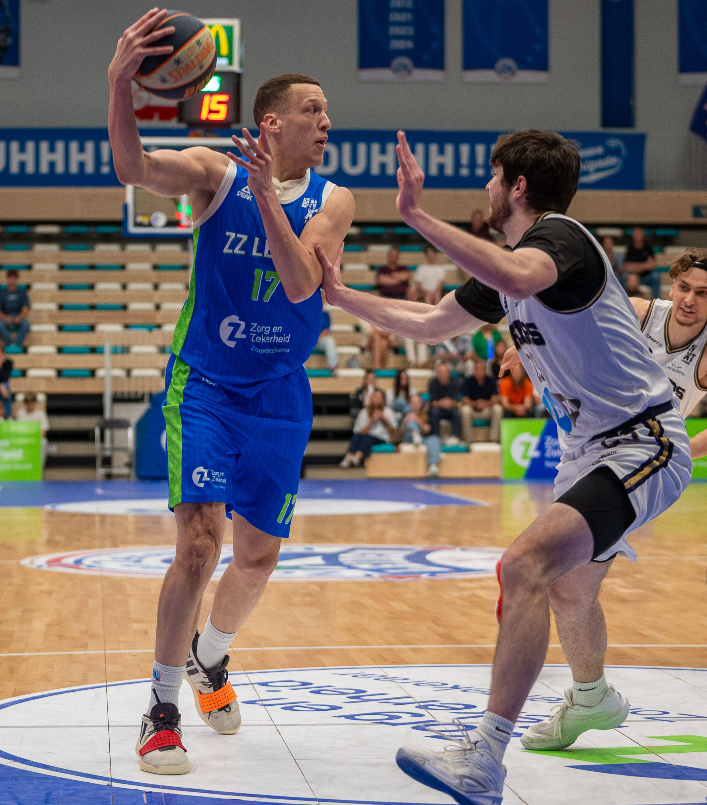 Landstede Hammers kon geen vuist meer maken. Met 103-71 is ZZ Leiden op matchpoint gekomen, maar er zal donderdag bij de tweede wedstrijd wellicht een ander en getergd Landstede Hammers ten tonele verschijnen. Als ZZ Leiden wint, gaat het door naar de volgende ronde, anders volgt er een beslissende wedstrijd zaterdag in Leiden.