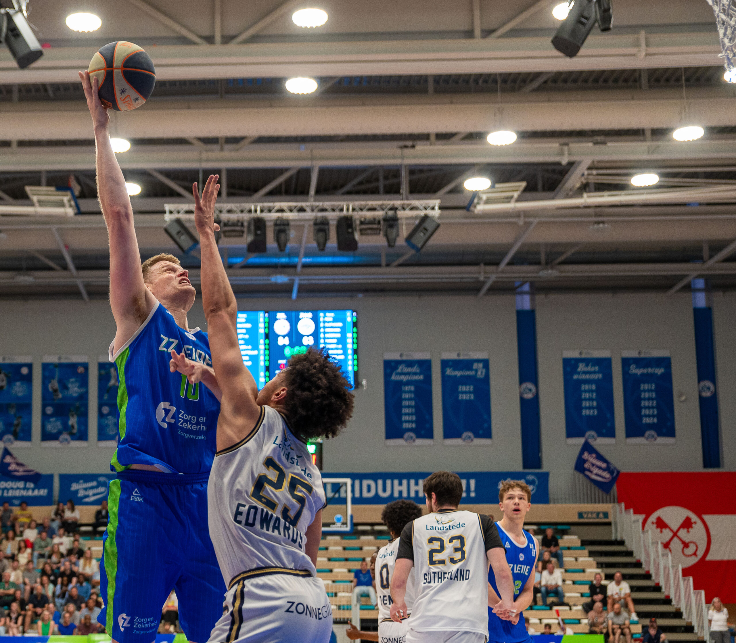 Daarna kwam Landstede weer langszij. Maar tegen de rust had ZZ Leiden de smaak van het scoren te pakken en stond de verdediging ook op scherp. ZZ Leiden liep uit naar een 53-39 ruststand. Na de pauze trok ZZ Leiden goed door en de marge groeide naar 20 punten bij ingang van het laatste kwart, 74-54.
