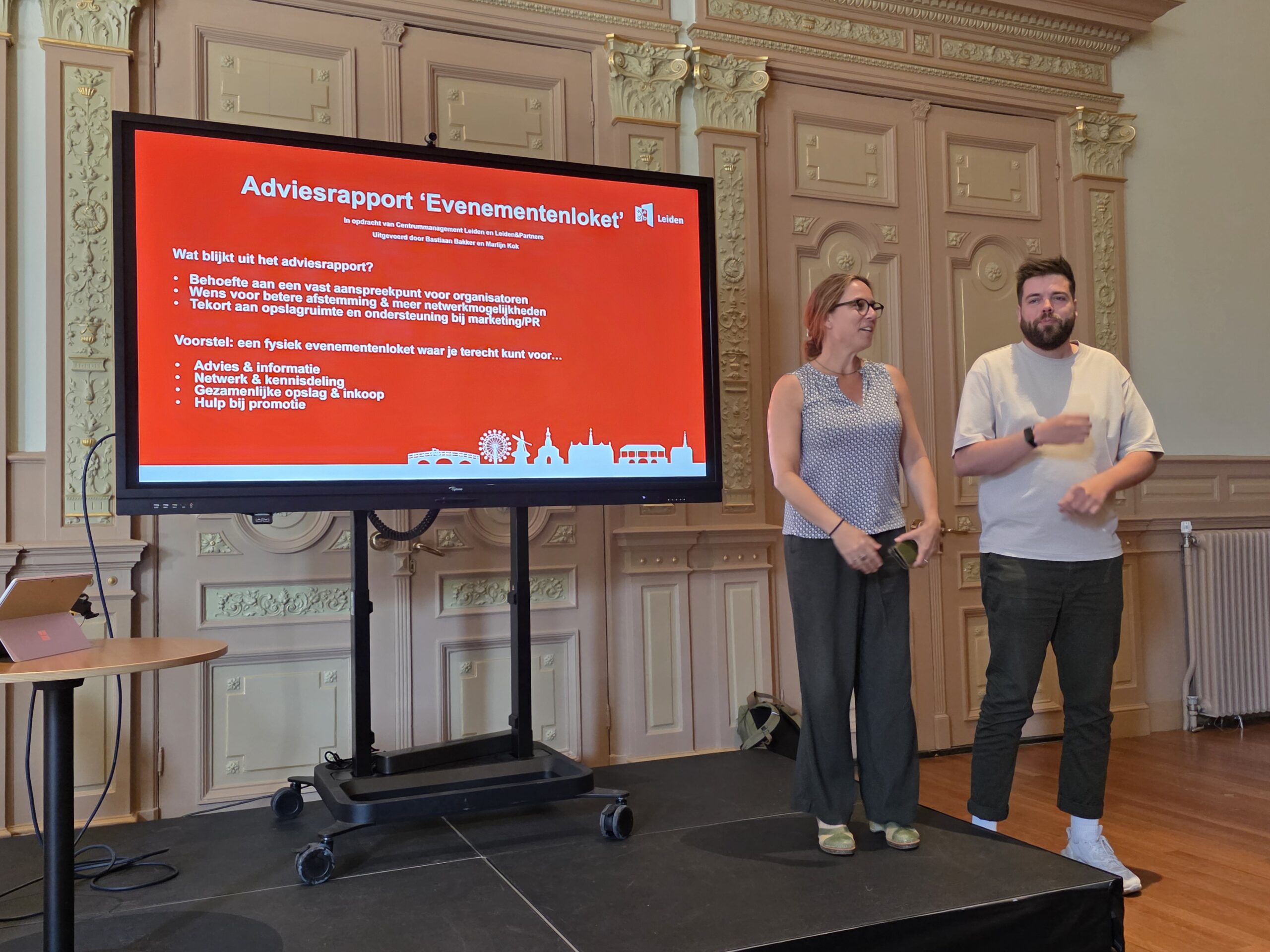 Gedurende twee jaar wordt een team van twee adviseurs ingezet, ondergebracht bij Centrummanagement Leiden (CML). Zij vormen een herkenbaar en toegankelijk aanspreekpunt voor organisatoren in de stad: een plek waar kennis samenkomt en verbindingen worden gelegd. Zij zijn verantwoordelijk voor de coördinatie van de gezamenlijke opslagfaciliteit, het organiseren van netwerk- en kennisbijeenkomsten, en het ondersteunen van (nieuwe) organisatoren. Daarnaast stimuleren zij actief de samenwerking binnen de sector. De advisering over wet- en regelgeving blijft een taak van de gemeentelijke contactpersonen.
