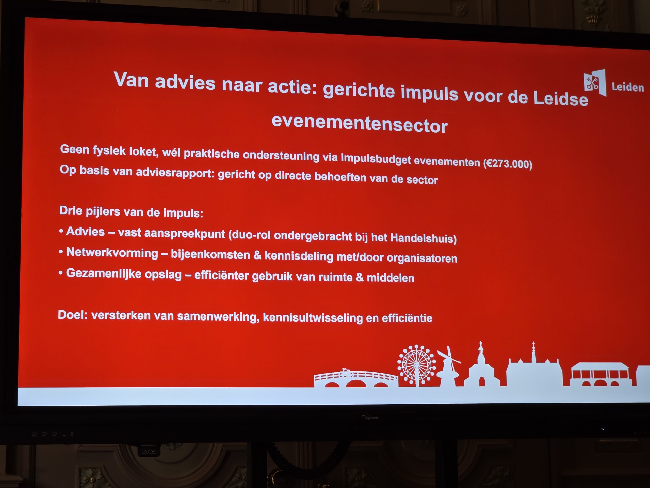 In opdracht van Centrummanagement en Leiden&Partners is in 2024 een onderzoek uitgevoerd naar de behoefte aan ondersteuning van de evenementensector. Dit onderzoek bracht belangrijke behoeften in de sector in kaart. Bijvoorbeeld het gezamenlijk huren van een ruimte voor de opslag van materialen. Met het bedrag dat de gemeente beschikbaar stelt kan een deel van de aanbevelingen worden opgepakt.
