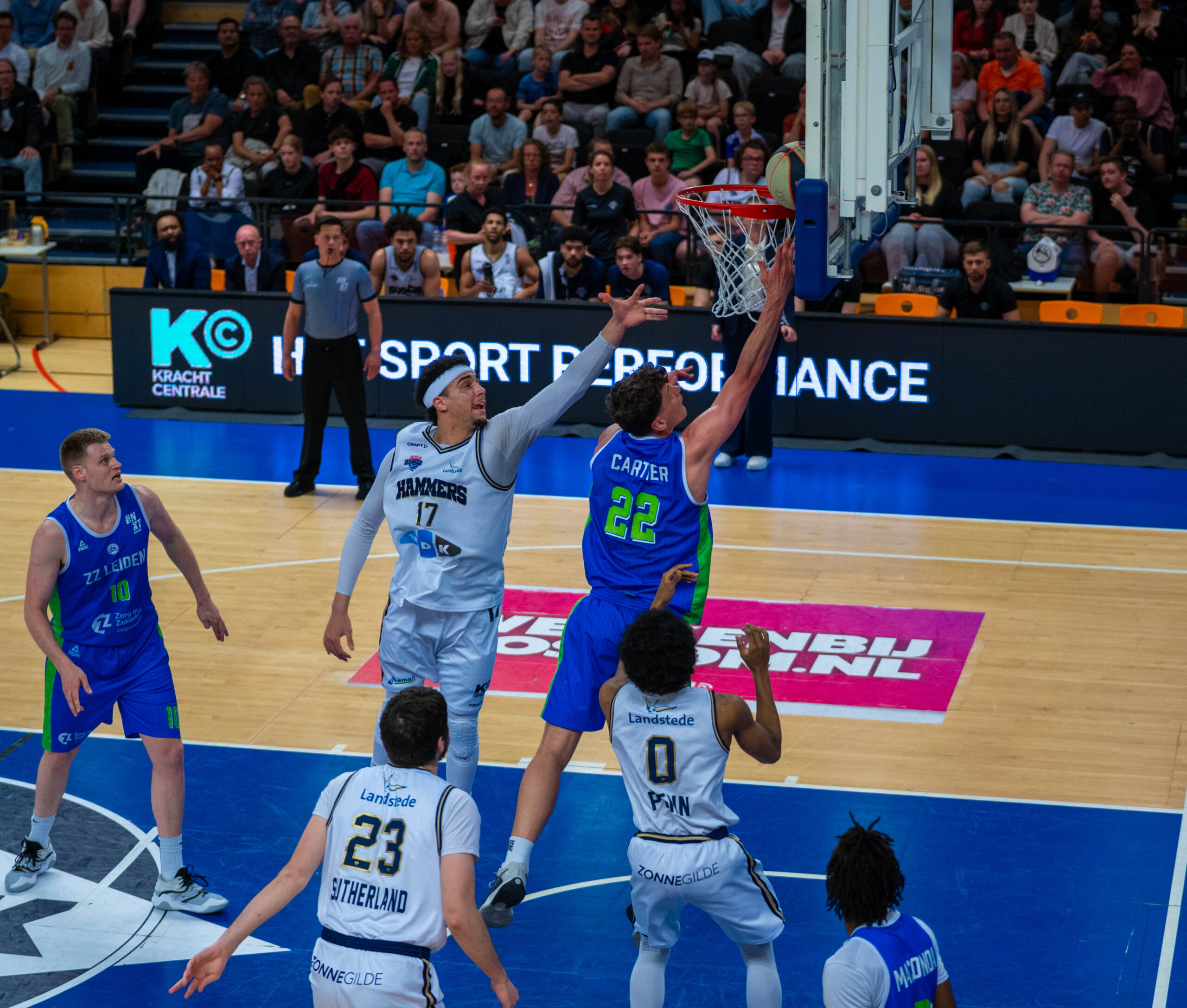 Zorg en Zekerheid Leiden heeft zich donderdagavond geplaatst voor de halve finale van de 711 Dutch Play-offs. Makkelijk ging dat zeker niet, want Landstede Hammers vocht voor de laatste kans om het seizoen nog enige glans te geven. ZZ Leiden kwam in het derde kwart 8 punten achter te staan, maar trok dat in het laatste kwart recht. Met 81-83 werd de winst mee terug genomen naar Leiden. Next up: LWD Basket.