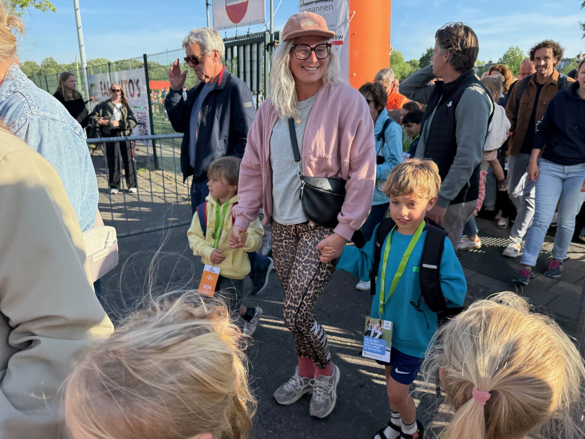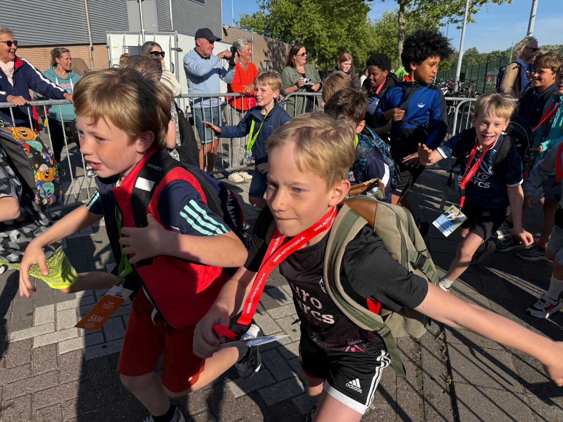 Voorzitter Melchior Aelmans glundert. ‘Prachtig he. We hebben weer meer aanmeldingen dan vorig jaar. Alle scholen uit Voorschoten doen mee en een paar uit Leiden. In totaal hebben we dertien scholen. De route moest wel een beetje aangepast worden door de werkzaamheden in de wijk Adegeest. En de tien en vijftien kilometer gaan door Voorschoten, Leiden Wassenaar en langs het Valkenburgse Meer, waar onlangs een deel van de walkant wegviel. Maar we hebben alles goed kunnen regelen dankzij de prima medewerking van de gemeente.”