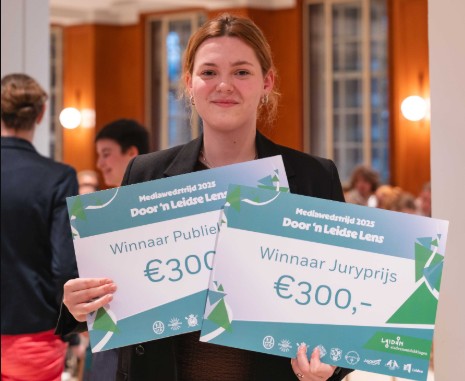 Janne van Roessel heeft de fotowedstrijd ‘Door ’n Leidse Lens’ gewonnen. Ze kreeg zowel de jury- als publieksprijs. Dit werd duidelijk bij de finale die woensdagavond gehouden werd in het Leidse stadhuis. De jury bekroonde haar werk vanwege de studentenelementen die in haar foto’s terugkomen en het unieke Leidse beeld dat werd neergezet.