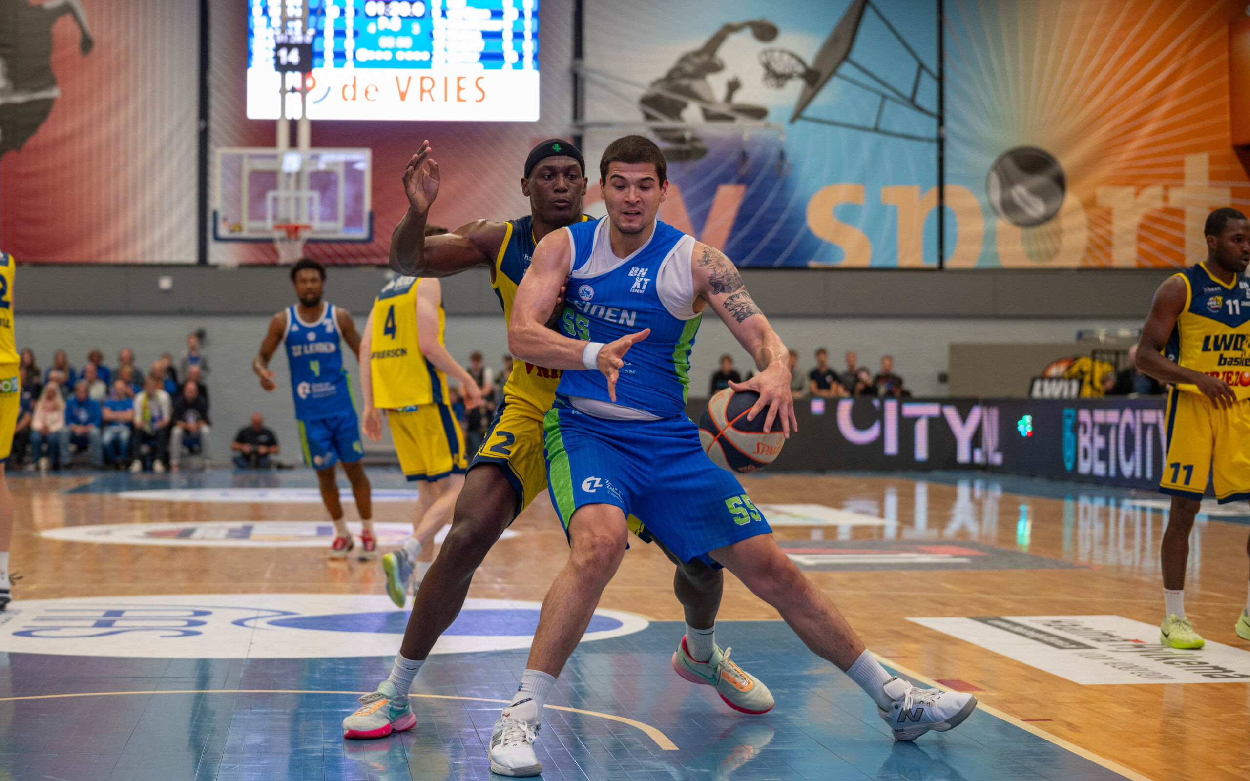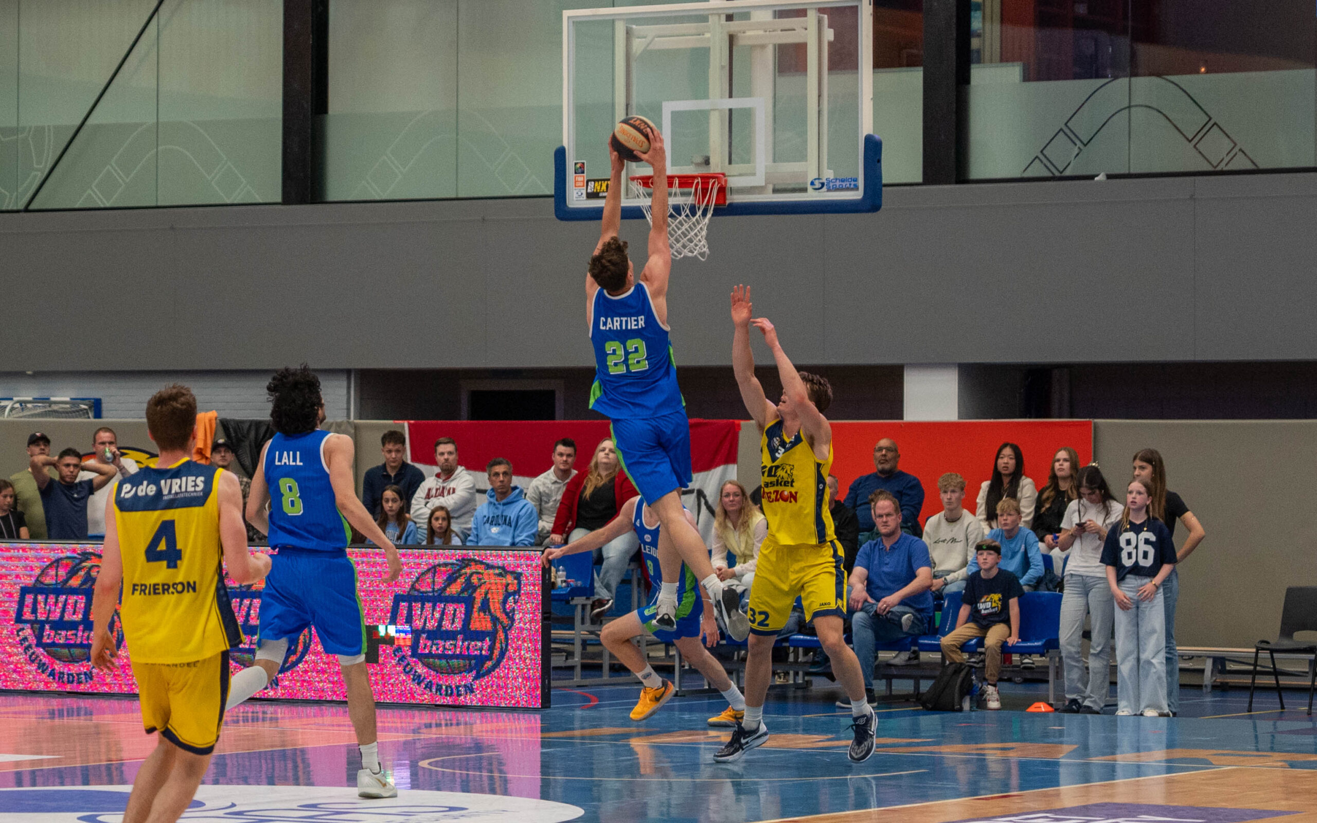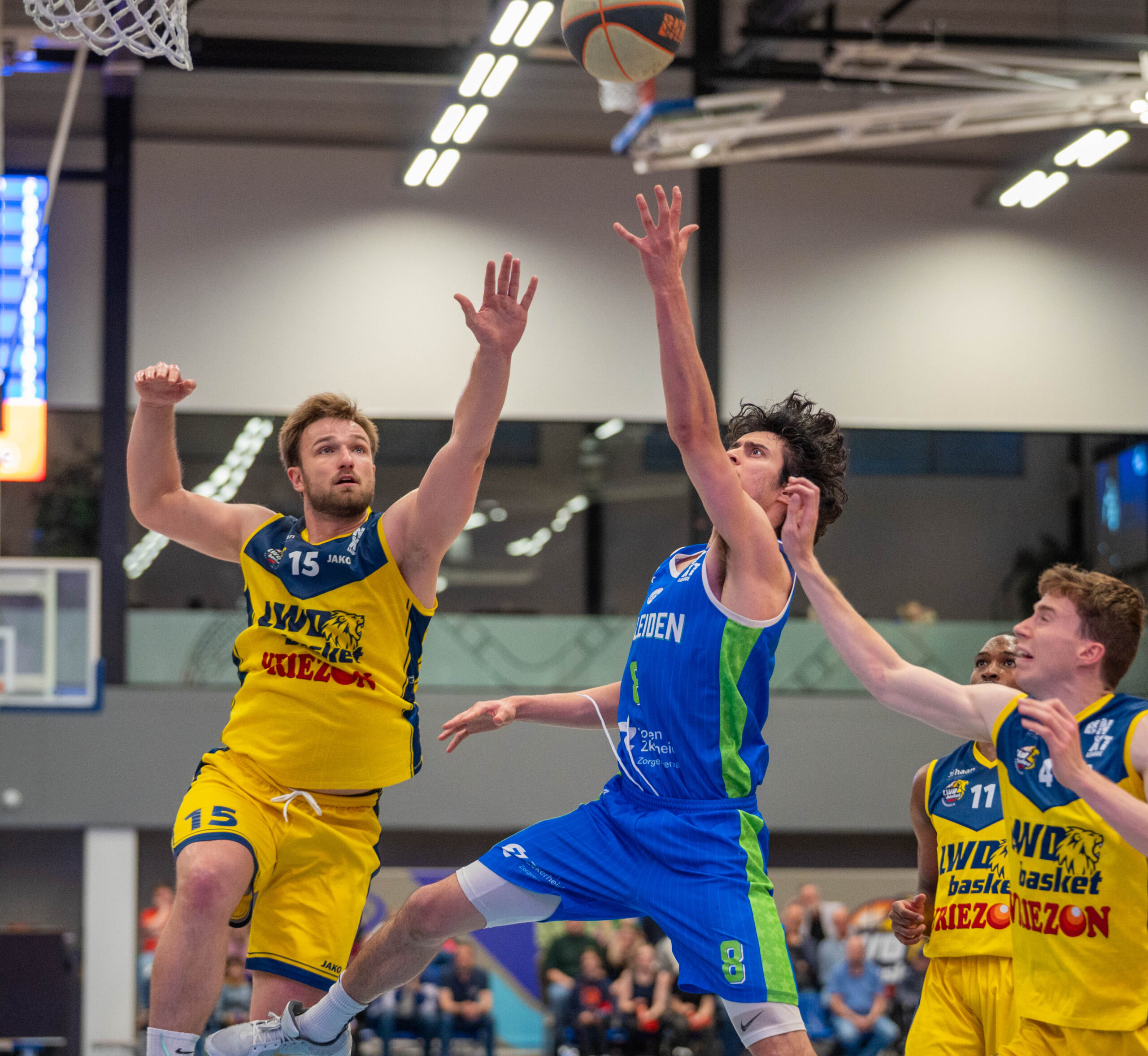 Zorg en Zekerheid Leiden heeft zich in Leeuwarden niet kunnen plaatsen voor de finale van de 711 Dutch Play-offs. De foutenlast in het eerste kwart zorgde voor een ruime achterstand. Kort na rust stond het 58-32 voor LWD Basket. Toch kwam de Leidse formatie nog goed terug. Vier minuten voor tijd was de marge verkleind tot één punt (77-76), maar het laatste zetje kon niet worden gegeven: 89-81. Dat betekent dat de stand in de halve finale van de play-offs op 2-1 komt. Maandagavond gaat de serie weer verder in Leiden.