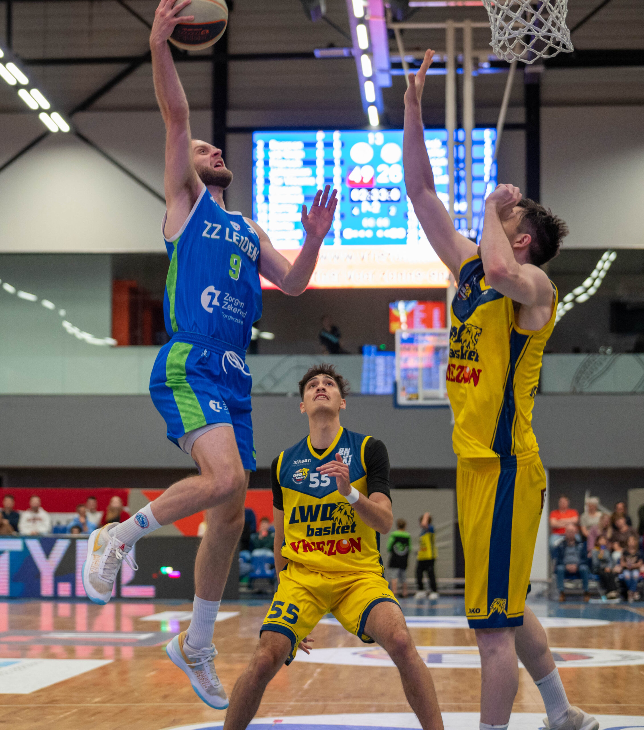 Opmerkelijk was dat ZZ Leiden voor rust 7 turnovers had en na rust slechts één. Reboundend was de wedstrijd voor LWD Basket (39 om 28). Ook de drietjes vielen na rust beter. In de eerste helft noteerde ZZ Leiden 5 uit 17, na rust 8 uit 14. Als ZZ Leiden in een goede flow zit, gaat het dus stukken beter.