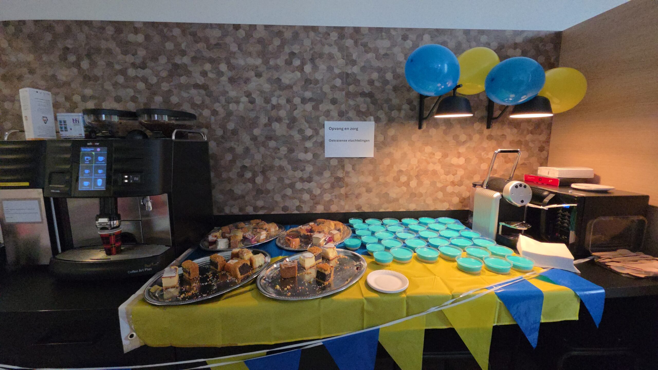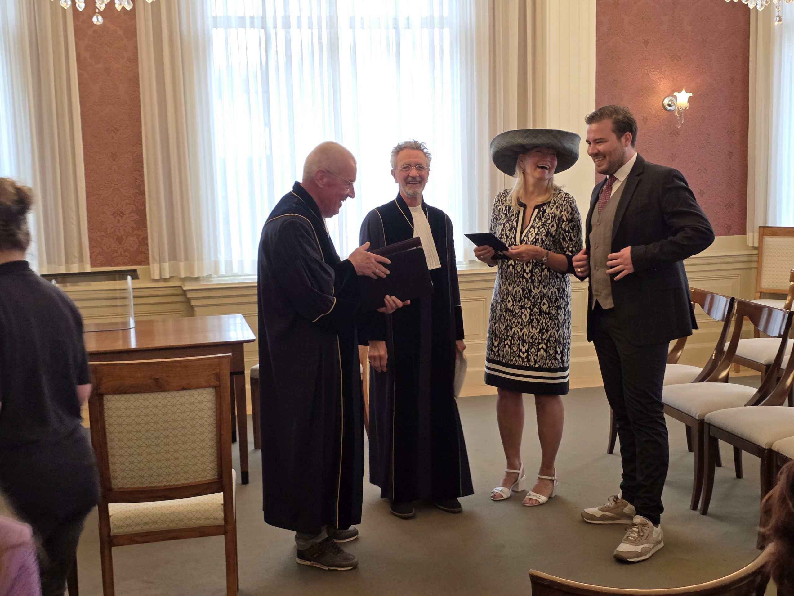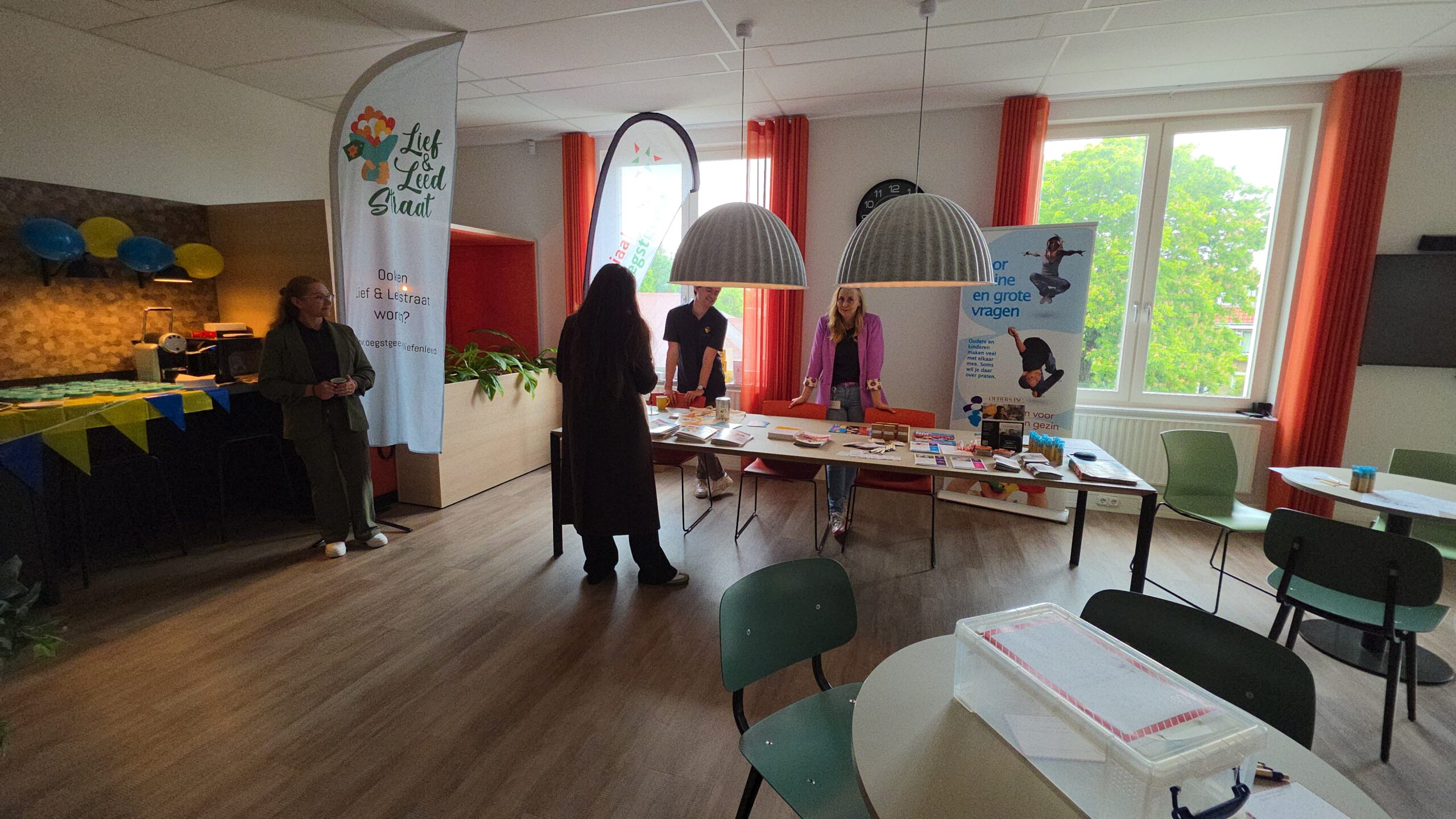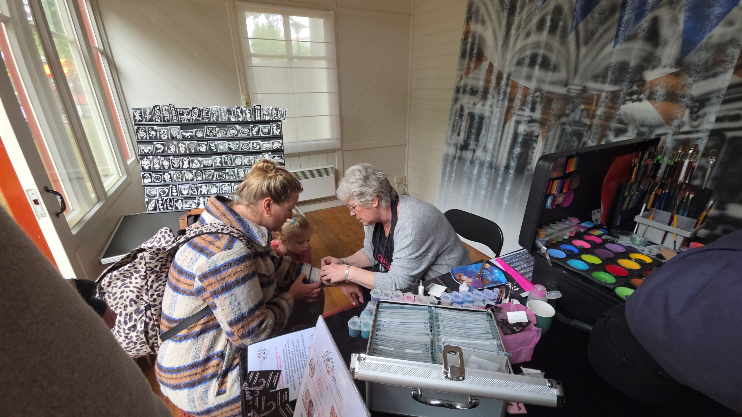 Terwijl buiten de paraplu’s hun werk ook deden in de rij voor de poffertjekraam en de andere standjes, vond binnen een proefhuwelijk plaats. Kinderen konden er aan de slag met kleurige pasta om daarmee een eigen ambtsketen te maken en in de raadzaal traden raadsleden op als quizmaster met vragen over Oegstgeest en de taken van het gemeentebestuur. “Wie is de hoogste baas? De gemeenteraad of de burgemeester?”