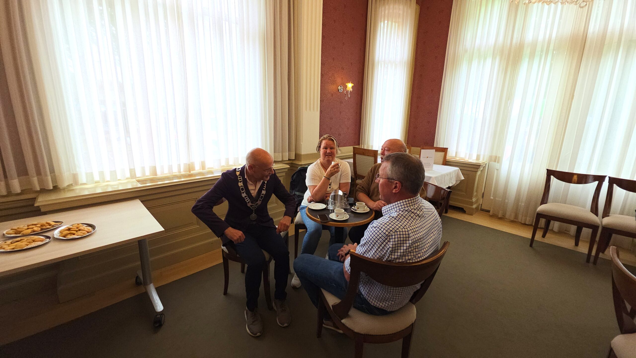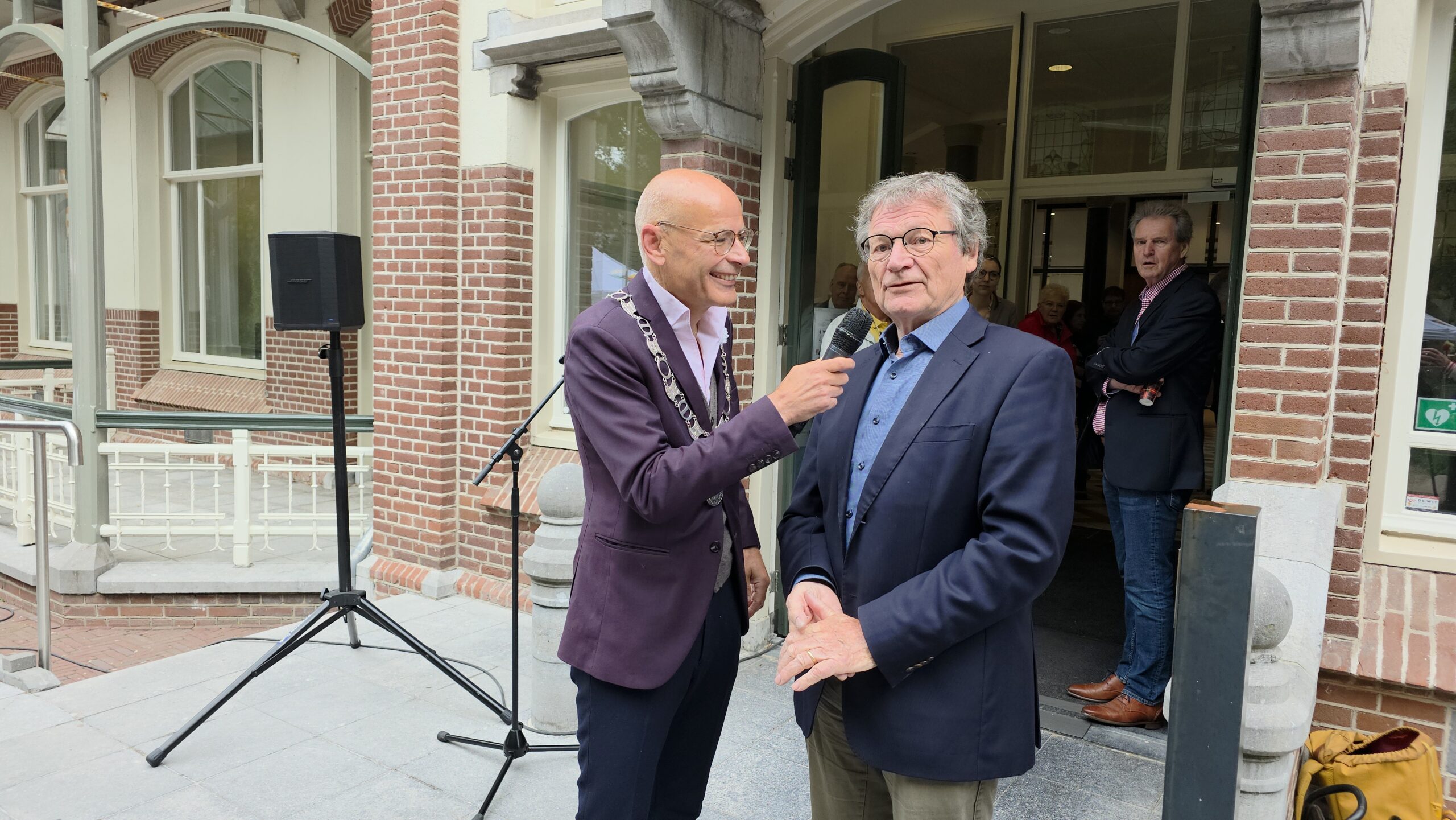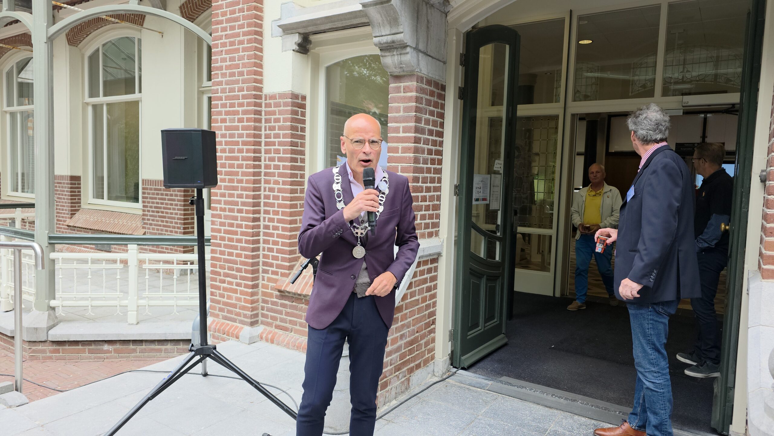 Echt superdruk was het zaterdag niet in en om het gemeentehuis van de gemeente Oegstgeest, maar toen burgemeester Emile Jaensch even na 10.00 uur de allereerste open dag van de gemeente opende druppelden de eerste bezoekers ondanks de regen het terrein op. “We zijn dan ook niet van suiker”, vond Jaensch die ook al blije inwoners had gesproken die de regen verwelkomden. “Het was hard nodig en goed voor de tuin.”