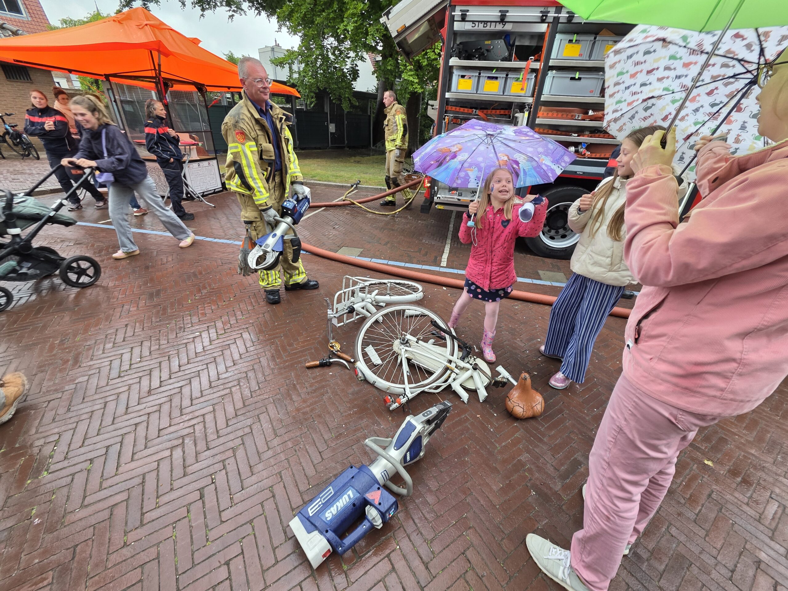 Tijdens de open dag was er van alles te beleven. Op het veiligheidsplein konden kinderen aan de slag met een brandslang of plaatsnemen achter het stuur van een politiemotor. De brandweer demonstreerde hoe met een hydrolyse schaar een fiets in stukjes geknipt kon worden. Zo’n schaar wordt in praktijk vooral gebruikt om mensen uit een auto te bevrijden door bijvoorbeeld het dak eraf te knippen na een aanrijding.