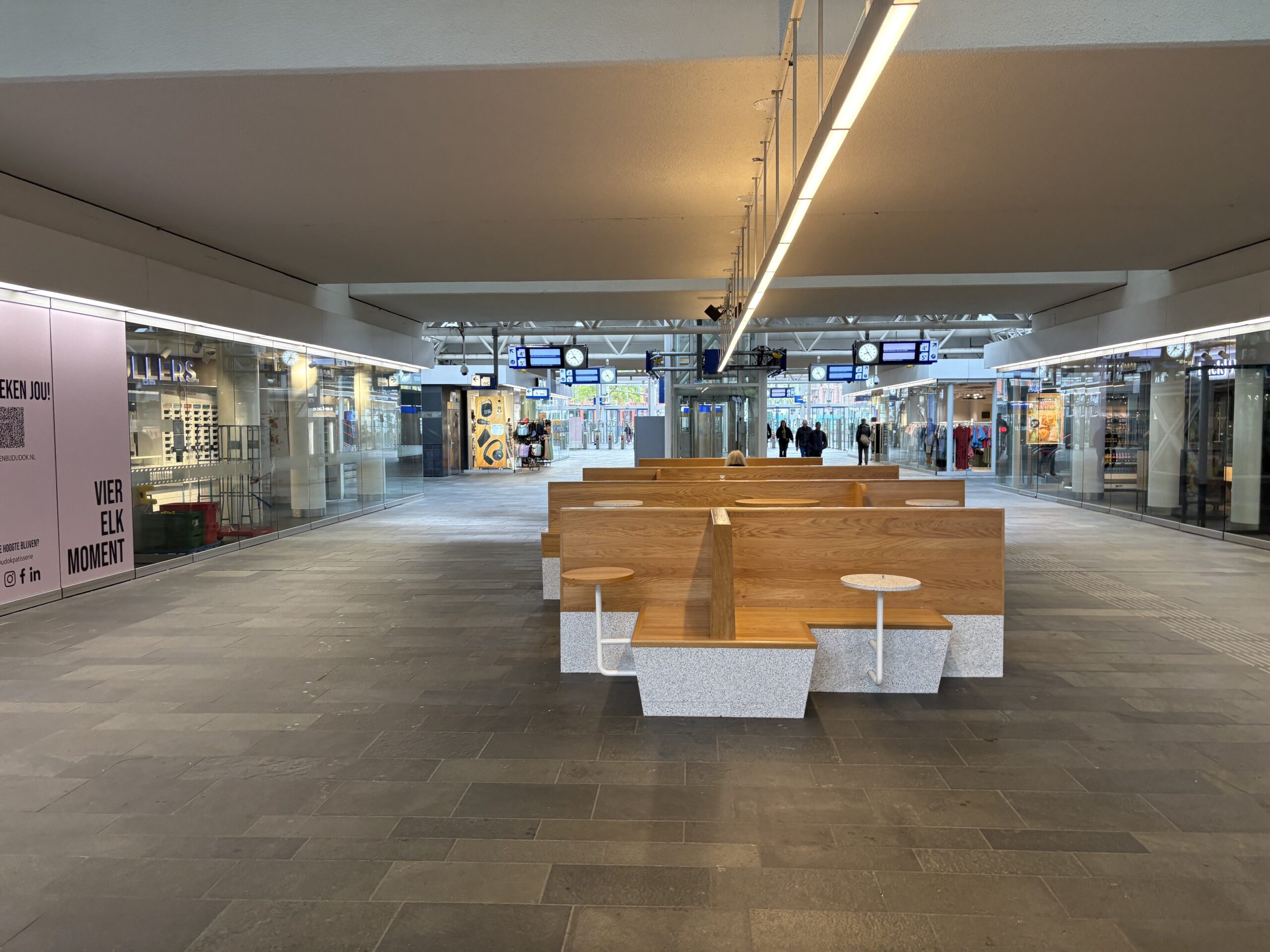 Een verlaten stationshal en lege sporen bij station Leiden Centraal. (Foto’s: Michiel Beijen)