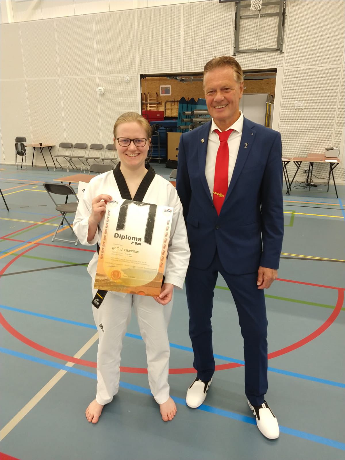 Twee leden van Taekwondo Vereniging Leiden hebben zaterdag hun Dan-examen met succes afgelegd tijdens de nationale zwarte band-examens in Nijmegen.