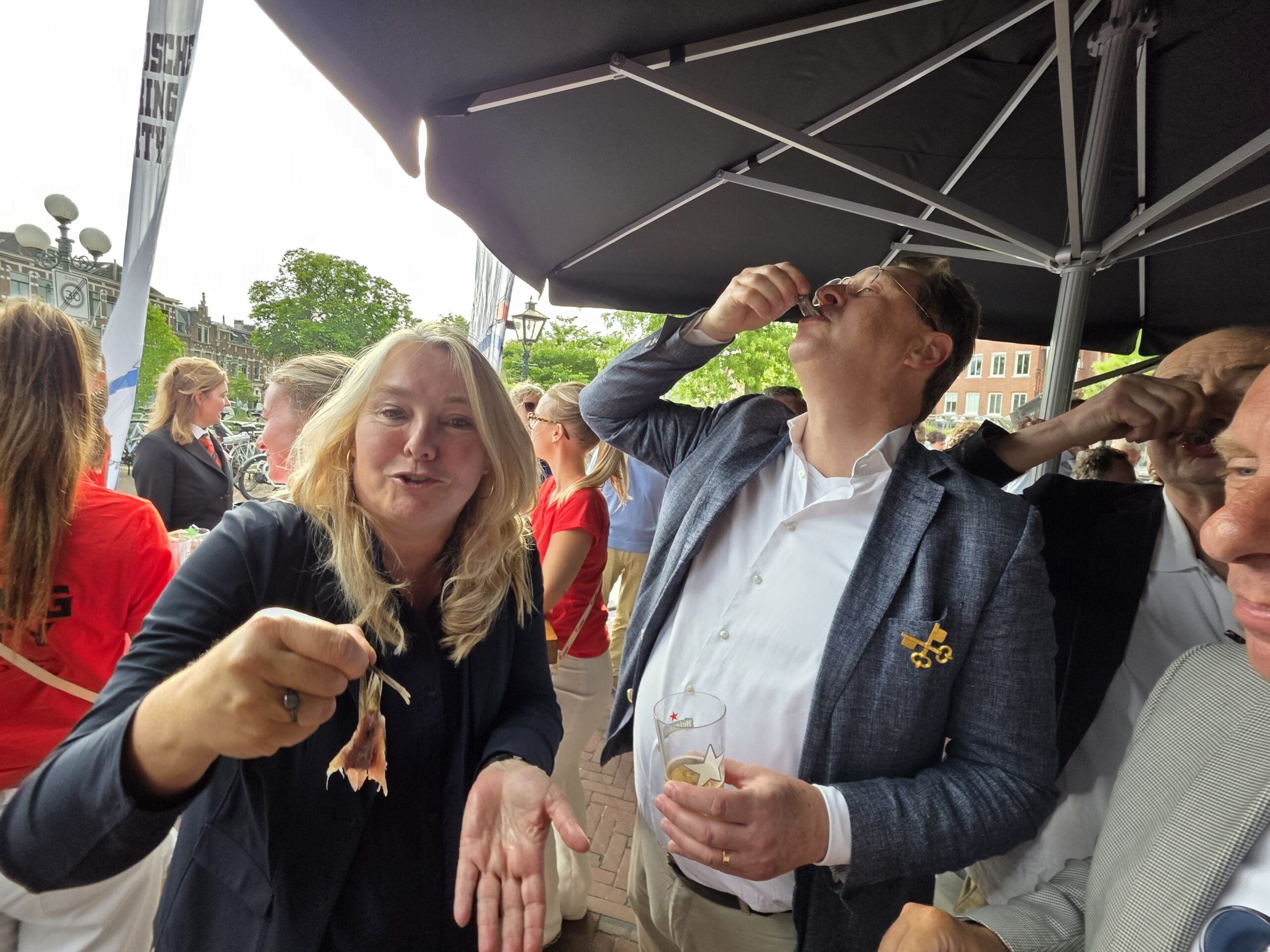 De jaarlijkse haringparty met veiling van de 3 October Vereeniging heeft deze week alle verwachtingen overtroffen. Voor het tweede jaar op rij streken de leden van het 3 October Gilde, dat is een groep ondernemers die het feest der feesten financieel ondersteund, neer op het terras van Petit Café Anne et Fred aan de Boisotkade.