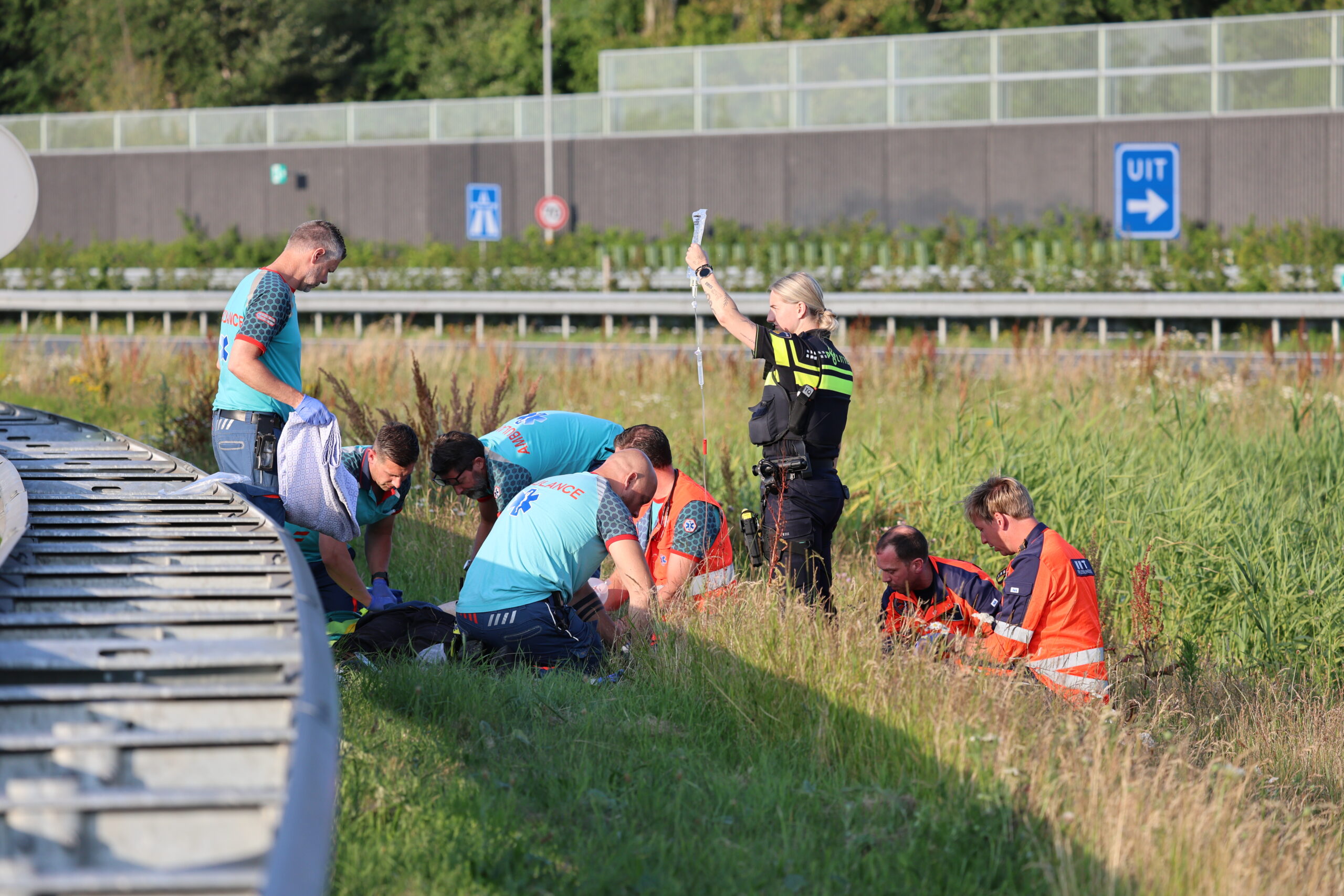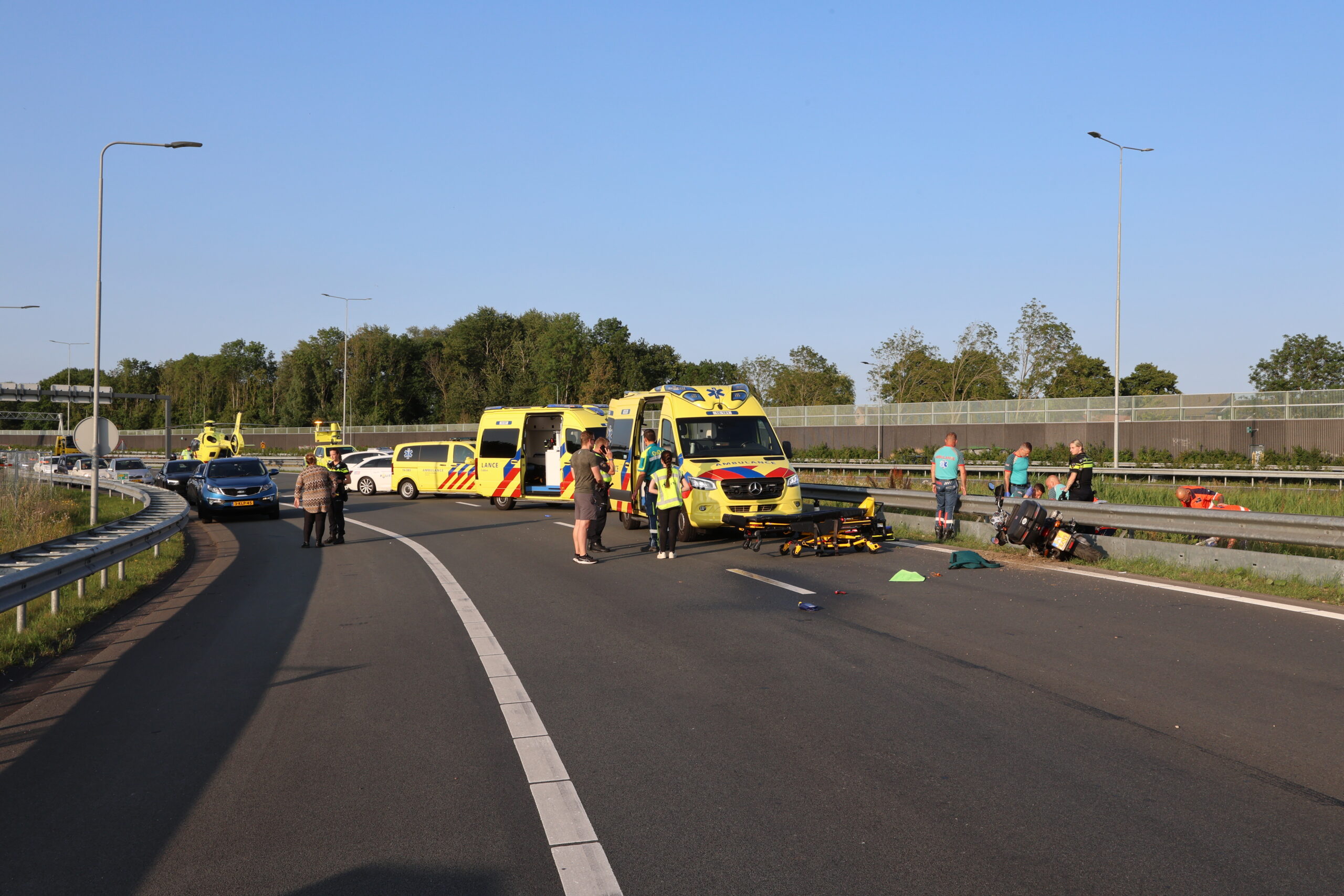 Een traumahelikopter is op de snelweg geland. De weg is afgesloten. Het lijkt erop dat de motorrijder uit de bocht is gevlogen. Er waren geen andere voertuigen bij het ongeluk betrokken.