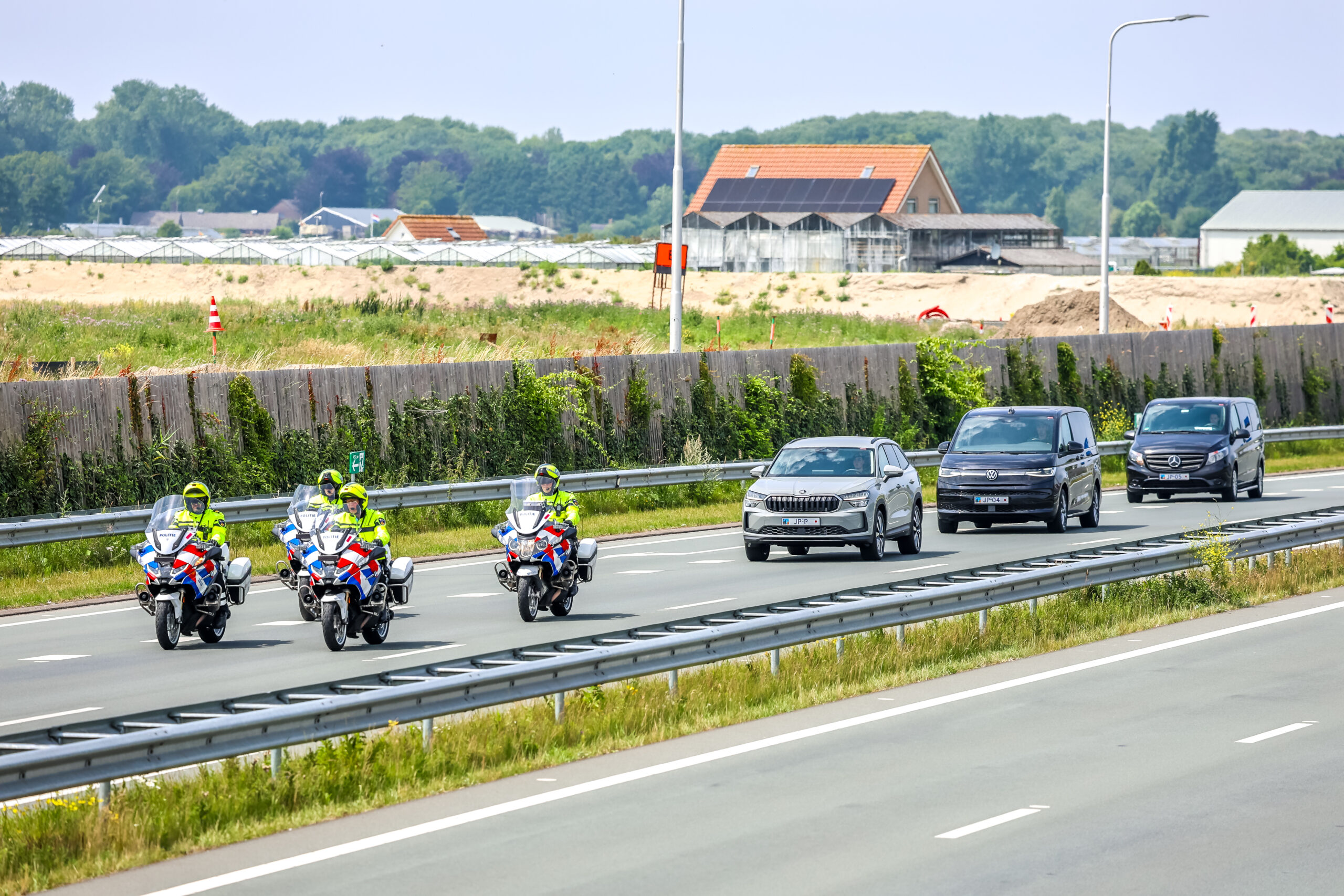 Op de foto de Japanse delegatie op de N206 bij Katwijk onder begeleiding van meerdere politiemotoren. De voertuigen in de stoet zijn voorzien van de speciale NAVO kentekenplaten.