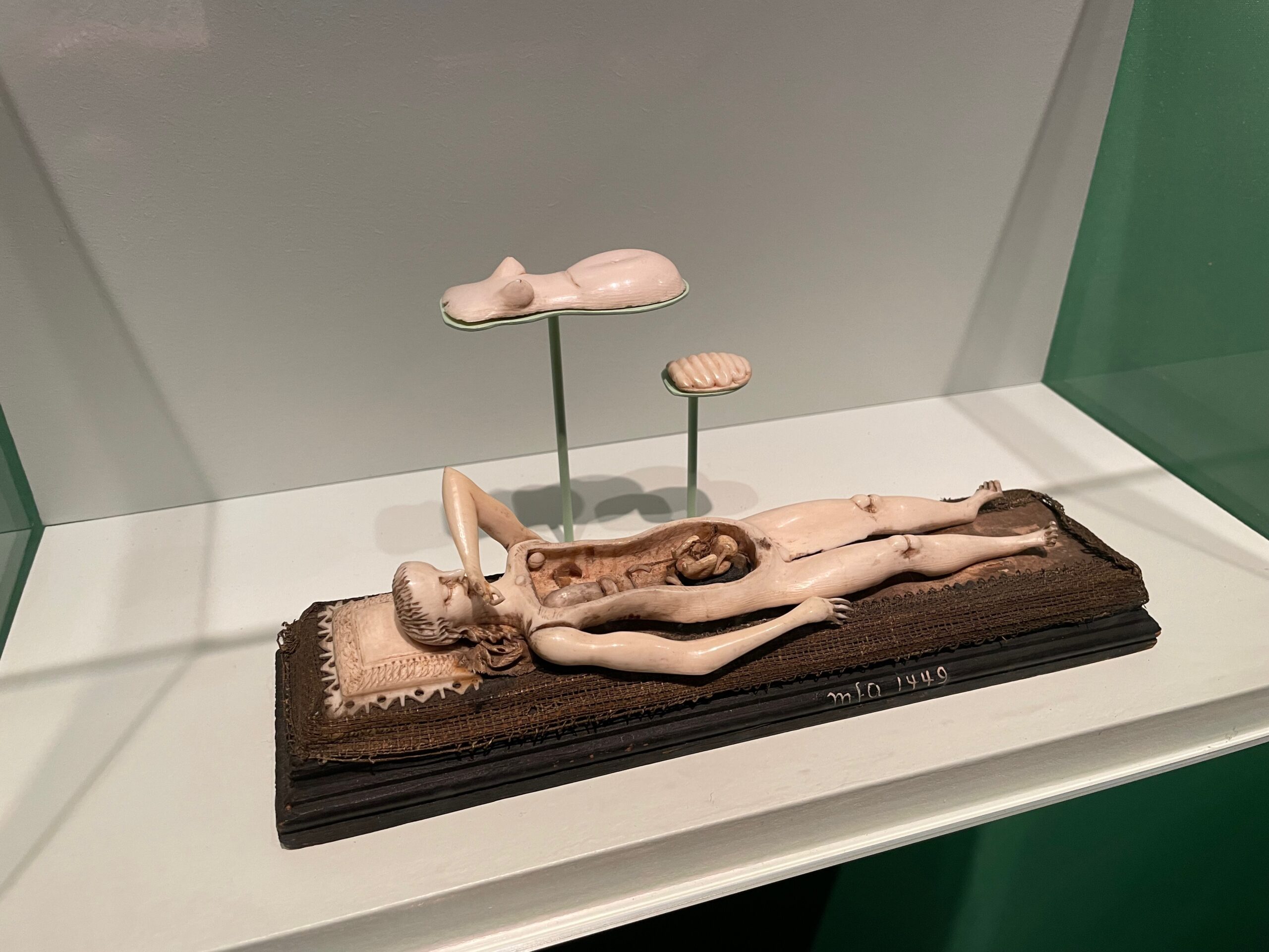 Wat zeker niet mocht ontbreken in de tentoonstelling volgens Te Hennepe is het onderwerp anatomie. “Omdat het heel visueel is, het ligt aan de basis van heel veel kennis. Afbeeldingen staan in lesboeken. Een van de dingen die we laten zien is een anatomie-model van een vrouw. Gemaakt van papier-maché. Ze staat in een pose waarbij ze haar borsten en haar schaamstreek bedekt met haar handen. Dat werd gezien als een nette manier om naakte vrouwen af te beelden. Maar in een anatomisch model is het zeker niet handig.”