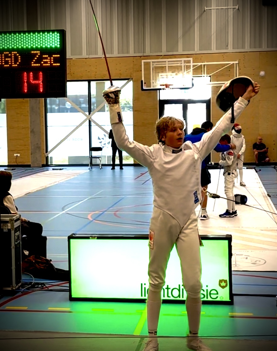 Zachary de Voogd (14) heeft zich opnieuw laten gelden als een van Nederlands grootste schermtalenten. Op zaterdag 21 juni veroverde hij in Rosmalen voor de derde keer op rij de nationale titel bij de Pupillen (onder 14 jaar) tijdens het Nederlands Jeugdkampioenschap schermen. In een zinderende finale versloeg hij zijn tegenstander van schermclub Den Bosch met 15-11.