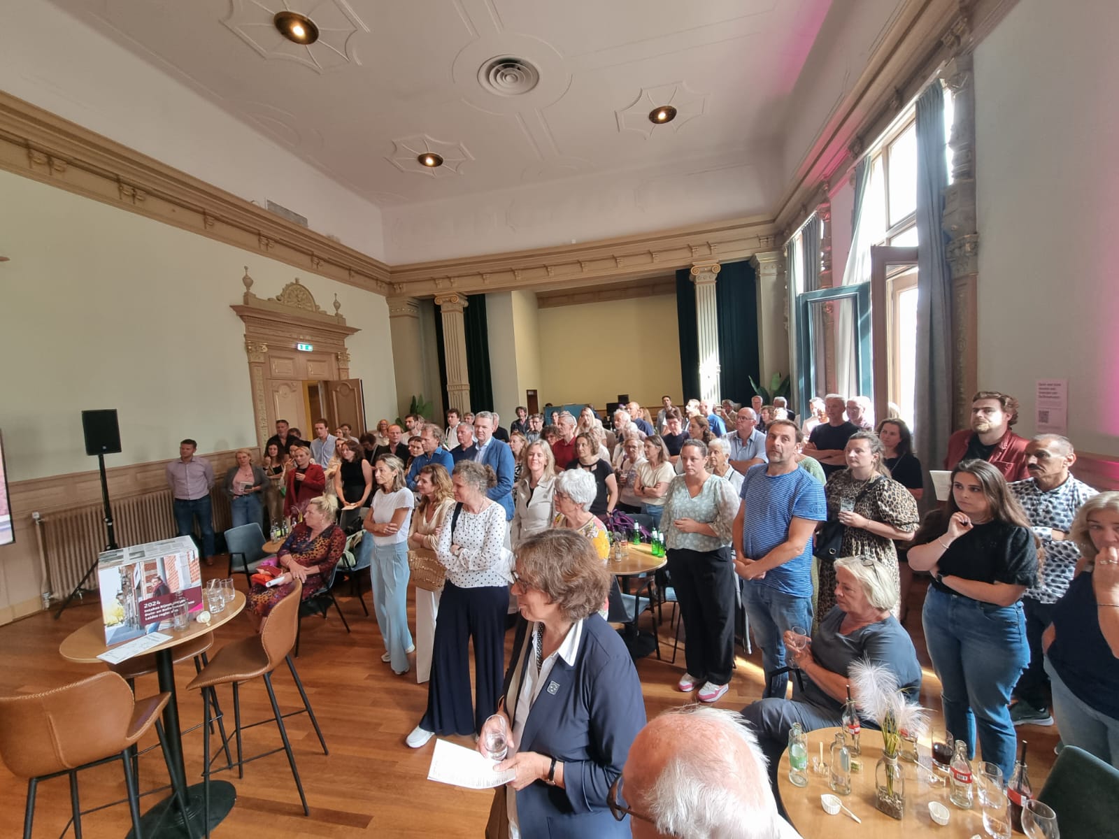 Honderden mensen kwamen donderdagmiddag naar de Stadsgehoorzaal Leiden om afscheid te nemen van directeur-bestuurder Emmy Klooster van stichting De Binnenvest. Daarbij werd ze bedolven onder lovende woorden. Per 1 juli gaat Klooster met pensioen, ze draagt het stokje over aan Marjan Sterenborg.