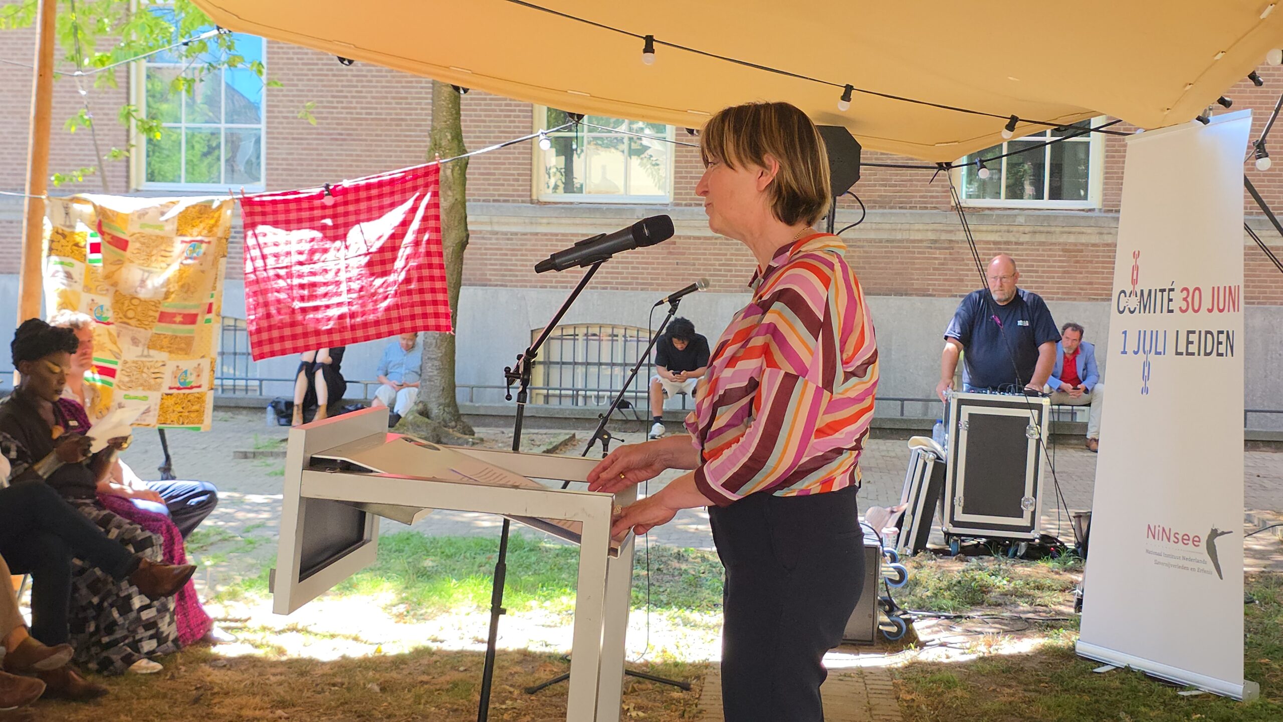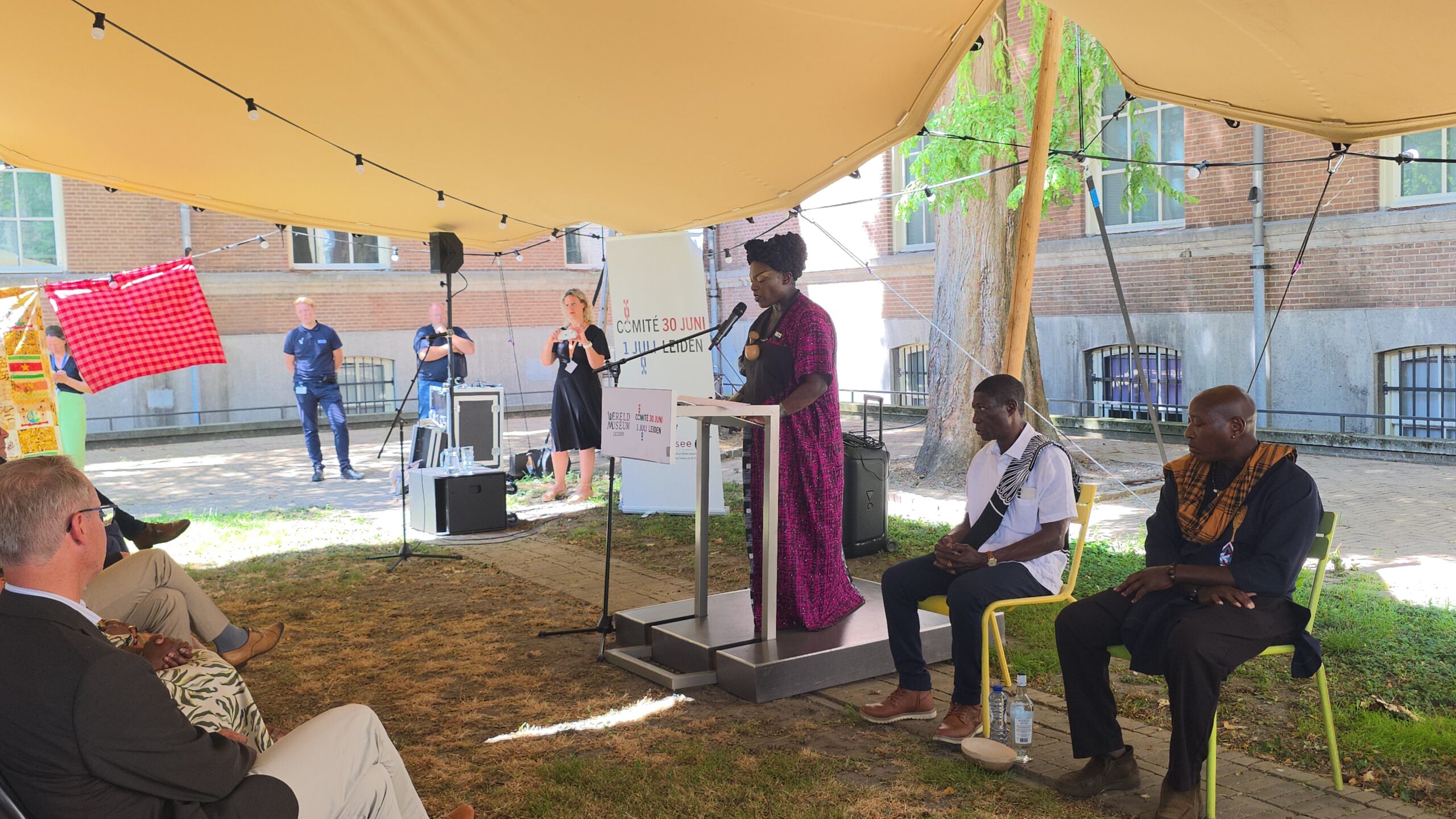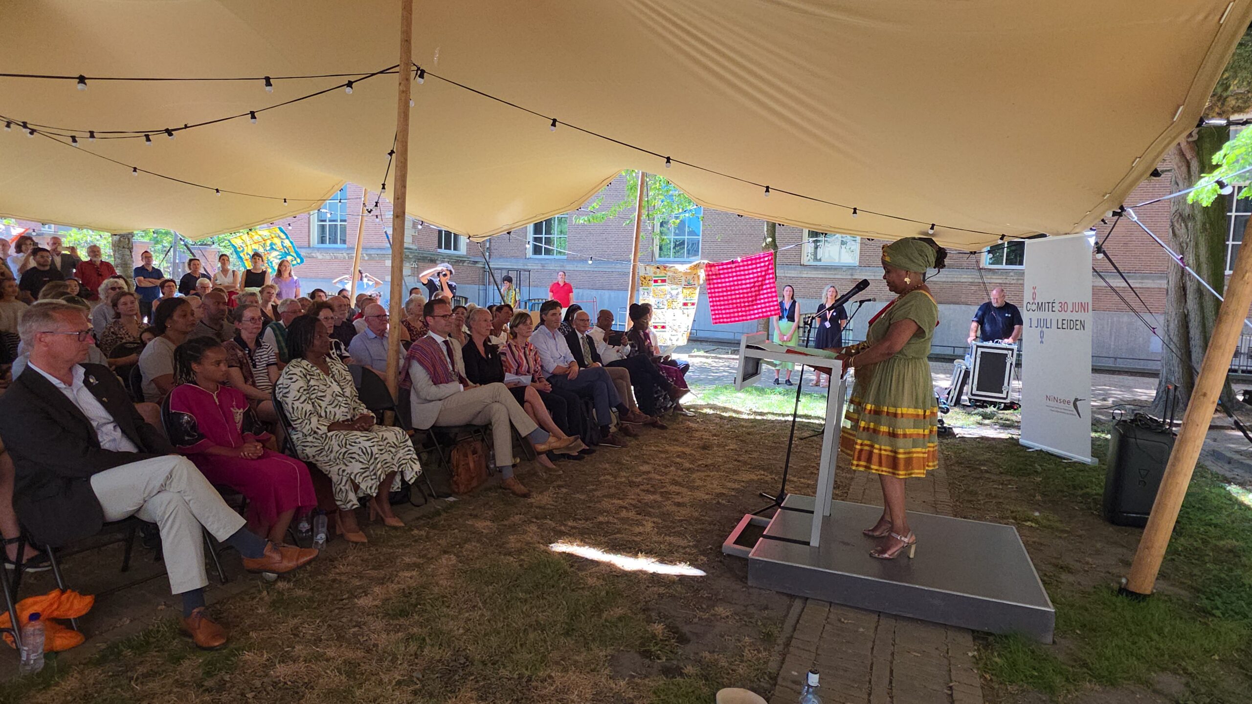 De herdenkingsbijeenkomst begon traditioneel met het brengen van een plengoffer. Aansluitend waren er toespraken van voorzitter Jacintha Groen van het comité 30 juni-1 juli, de Leidse burgemeester Peter Heijkoop, voorzitter Annetje Ottow van het College van Bestuur van de Universiteit Leiden en directeur Marieke van Bommel van het Wereldmuseum.