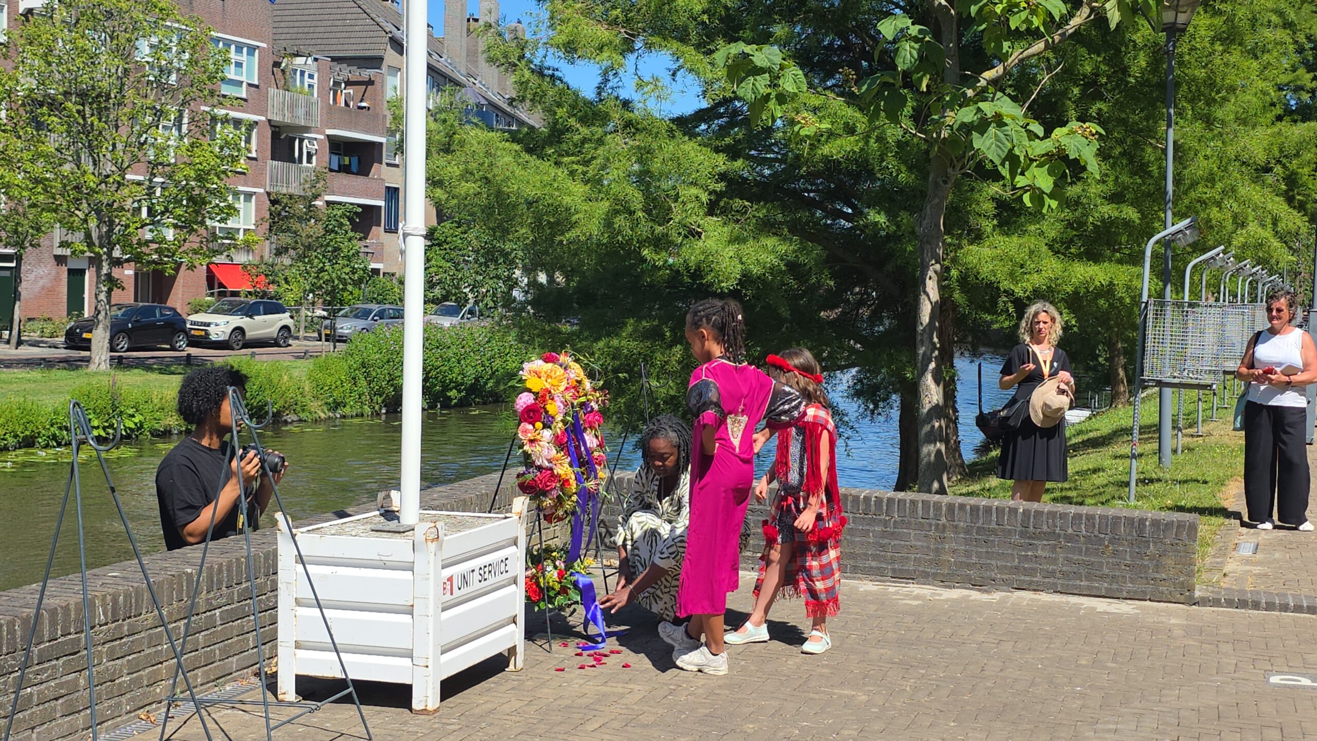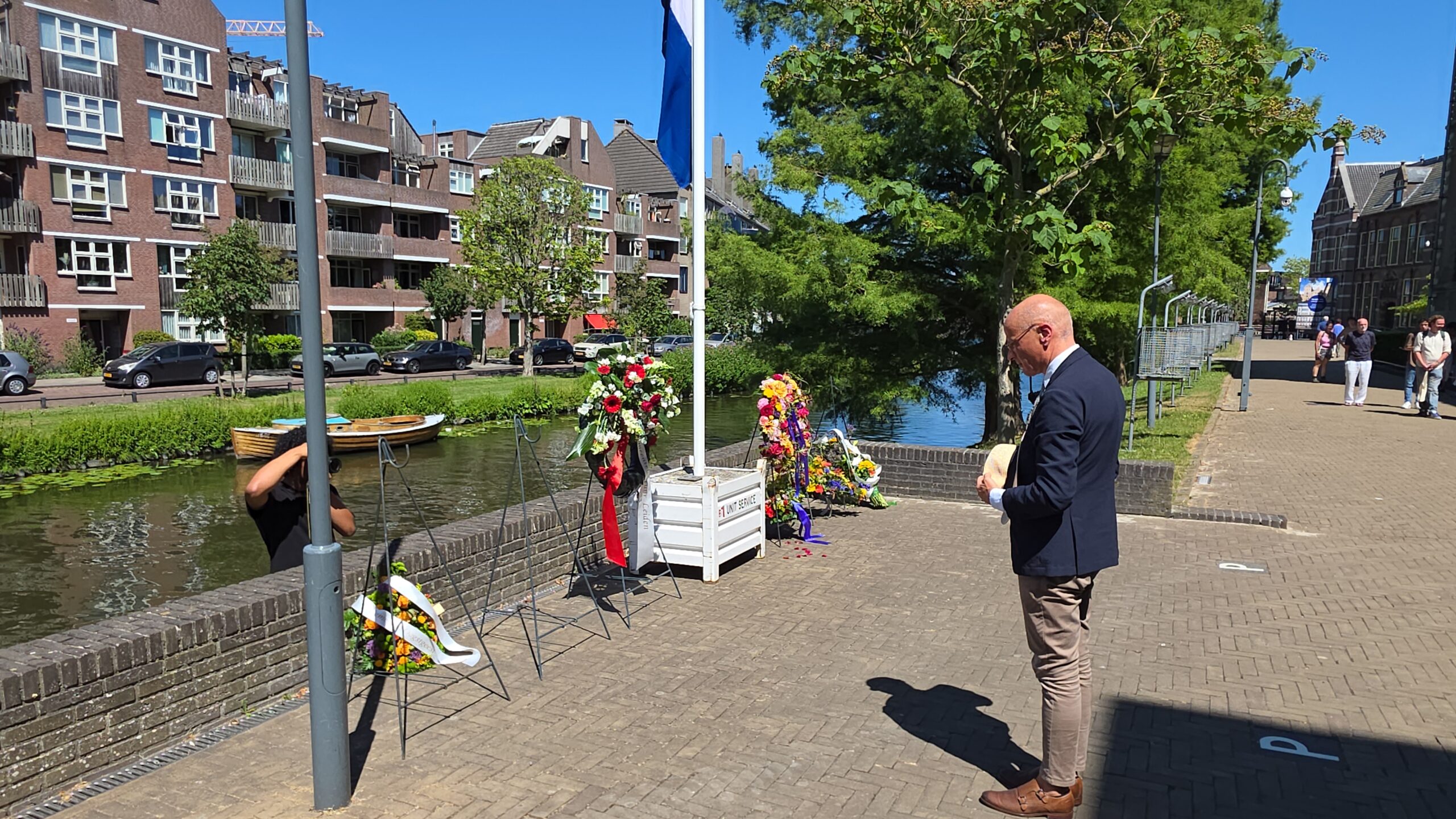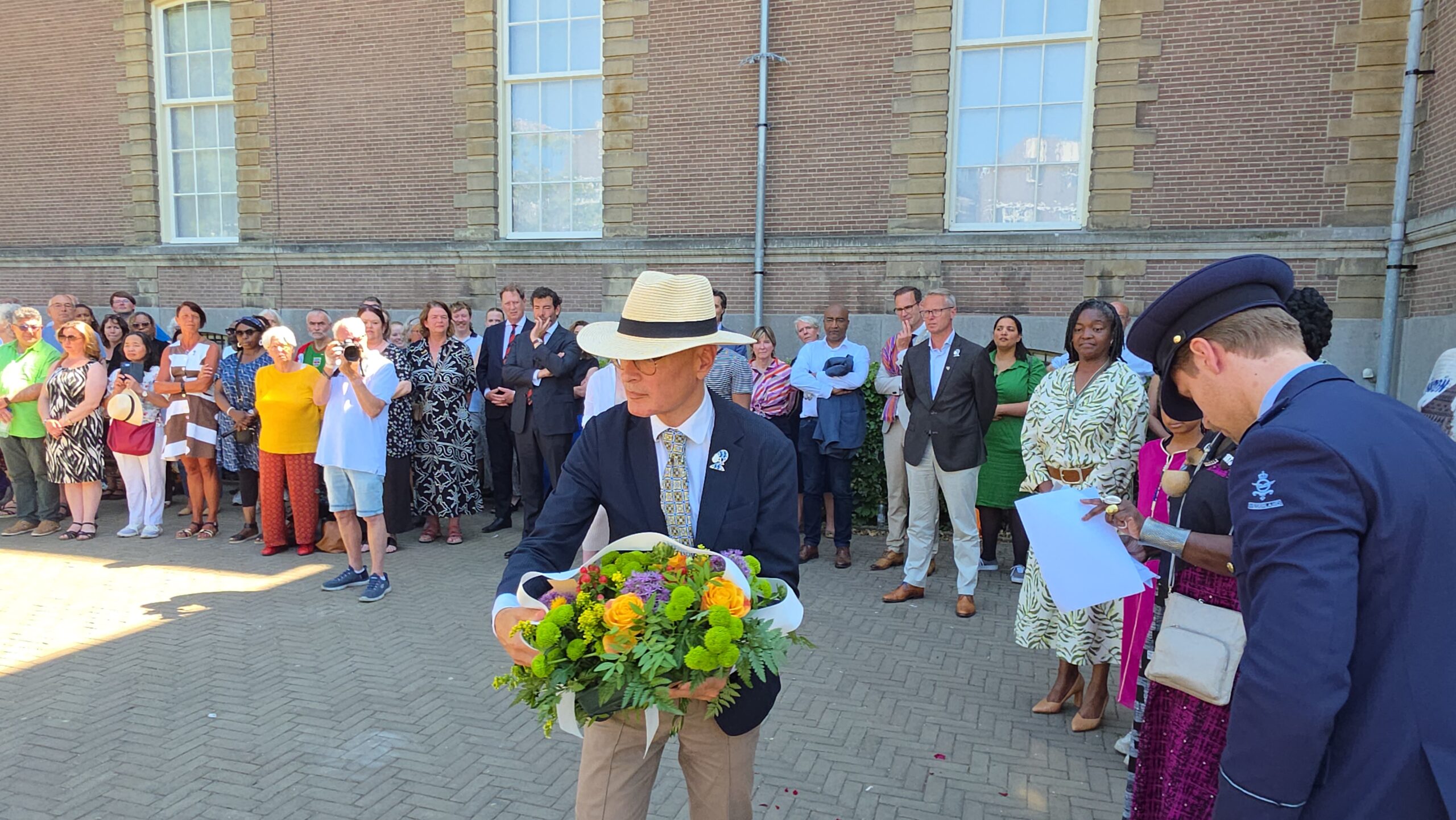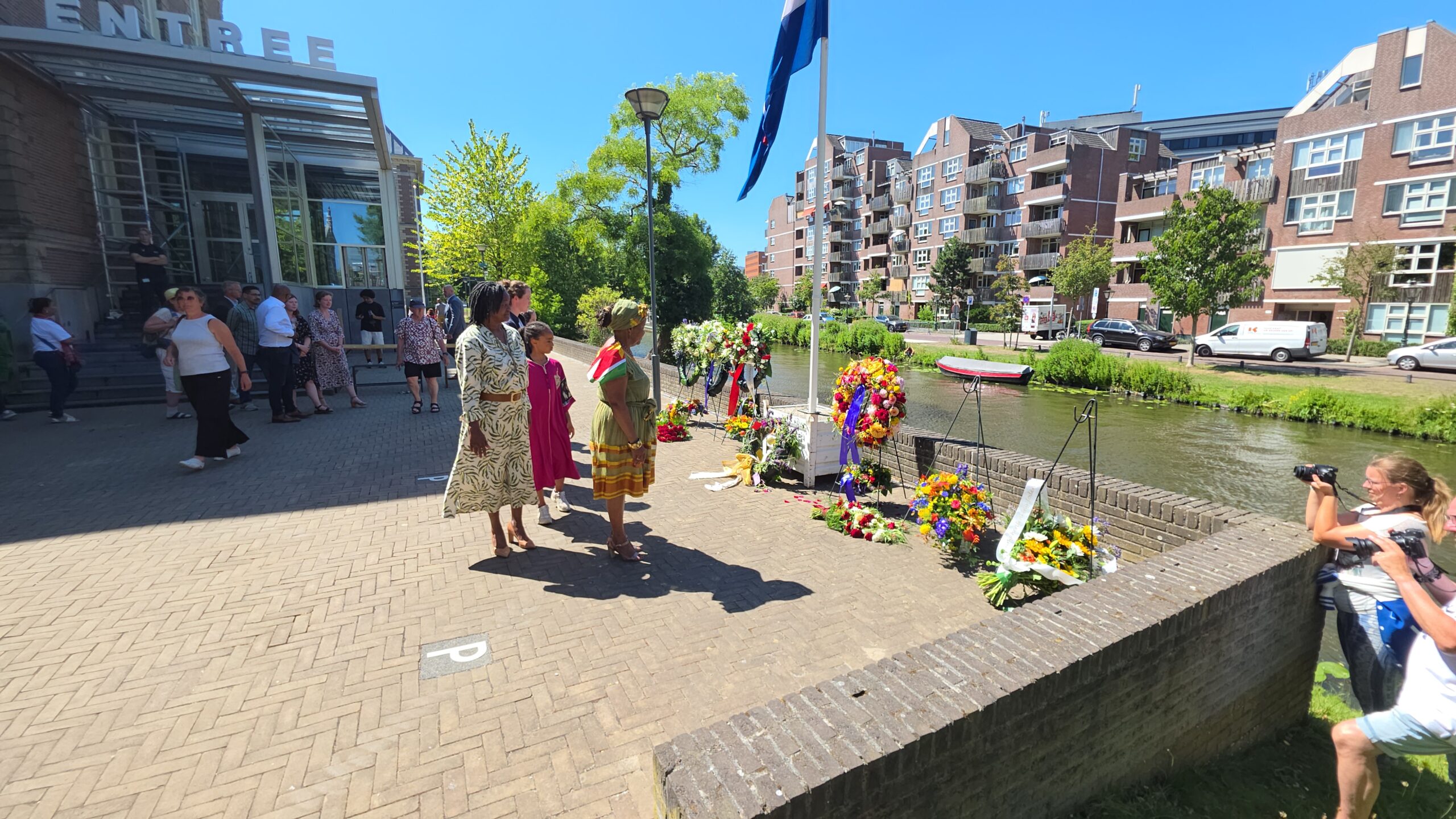 Registratie van de herdenkingsbijeenkomst en de kranslegging bij Wereldmuseum Leiden.