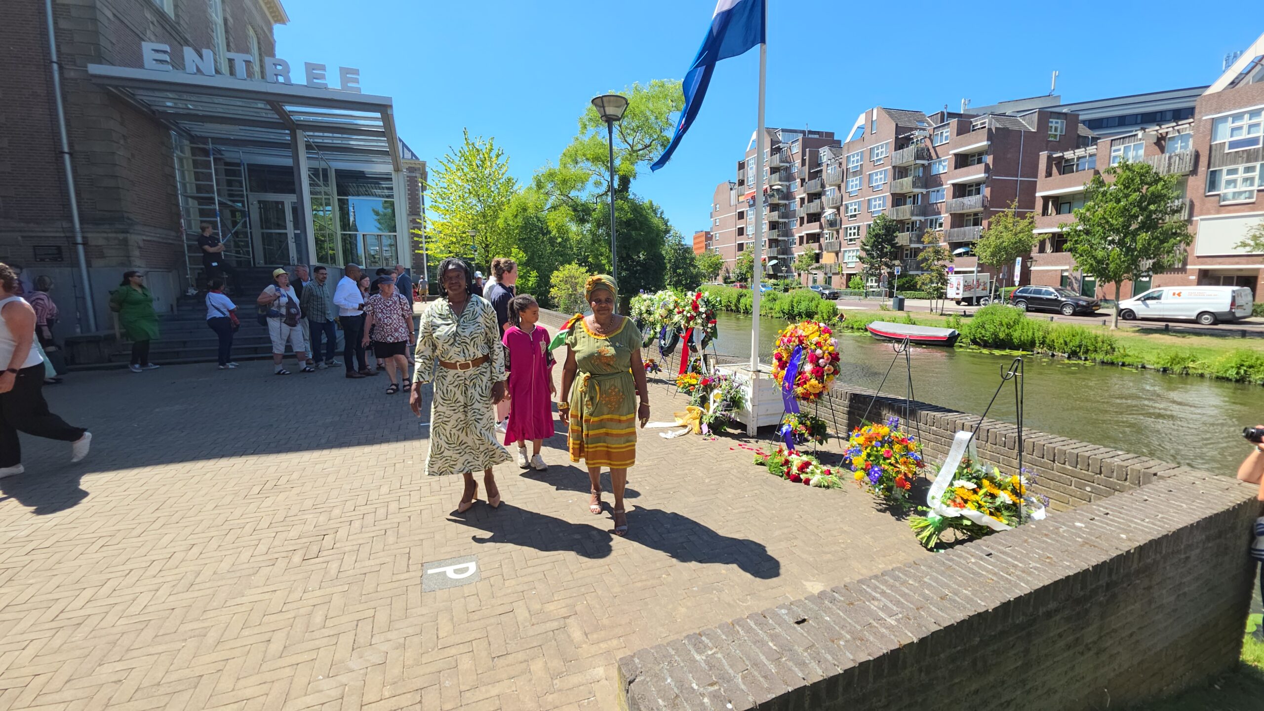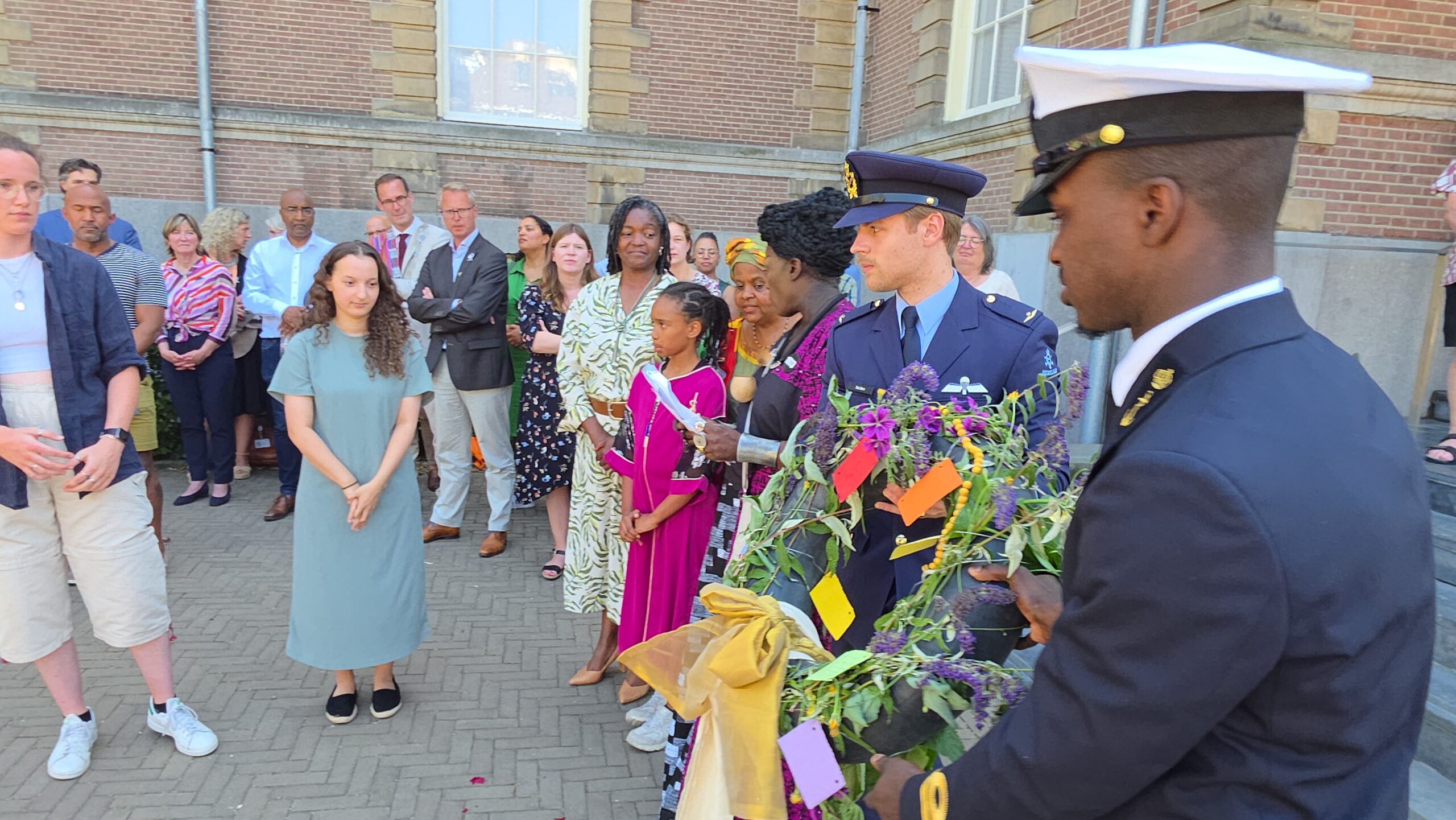 Tijdens een indrukwekkende bijeenkomst is maandag in Leiden het Leids slavernijverleden herdacht. Na een serie toespraken in de binnentuin van Wereldmuseum Leiden werden aan de voorzijde kransen gelegd door vertegenwoordigers van verschillende organisaties. Ook de gemeente Leiden en buurgemeenten Oegstgeest en Voorschoten deden dat.