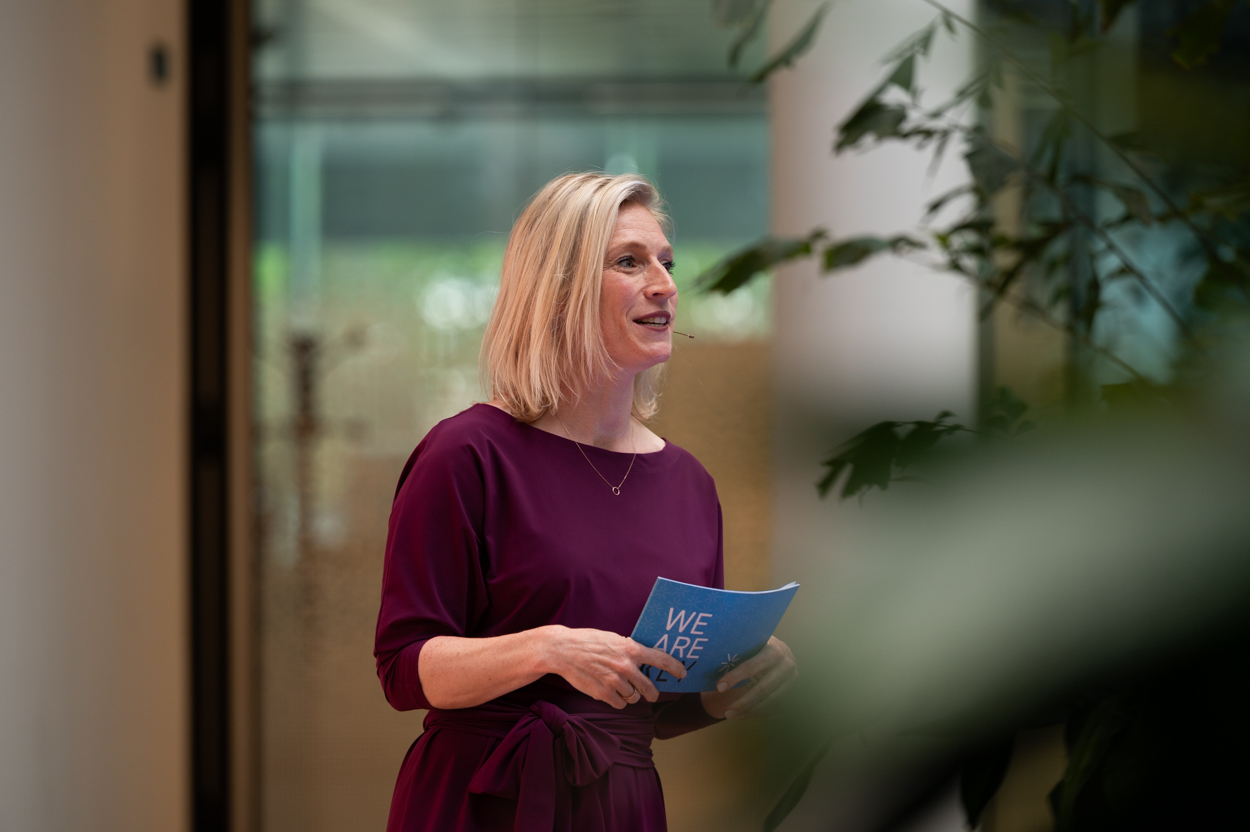 Directeur van Key Region Leiden, Leonie Hussaarts: “Hopelijk kunnen wij ook aan de inwoners van de streek laten zien wat er gebeurt in al die clusters en welke impact we kunnen maken op maatschappelijke problemen.”