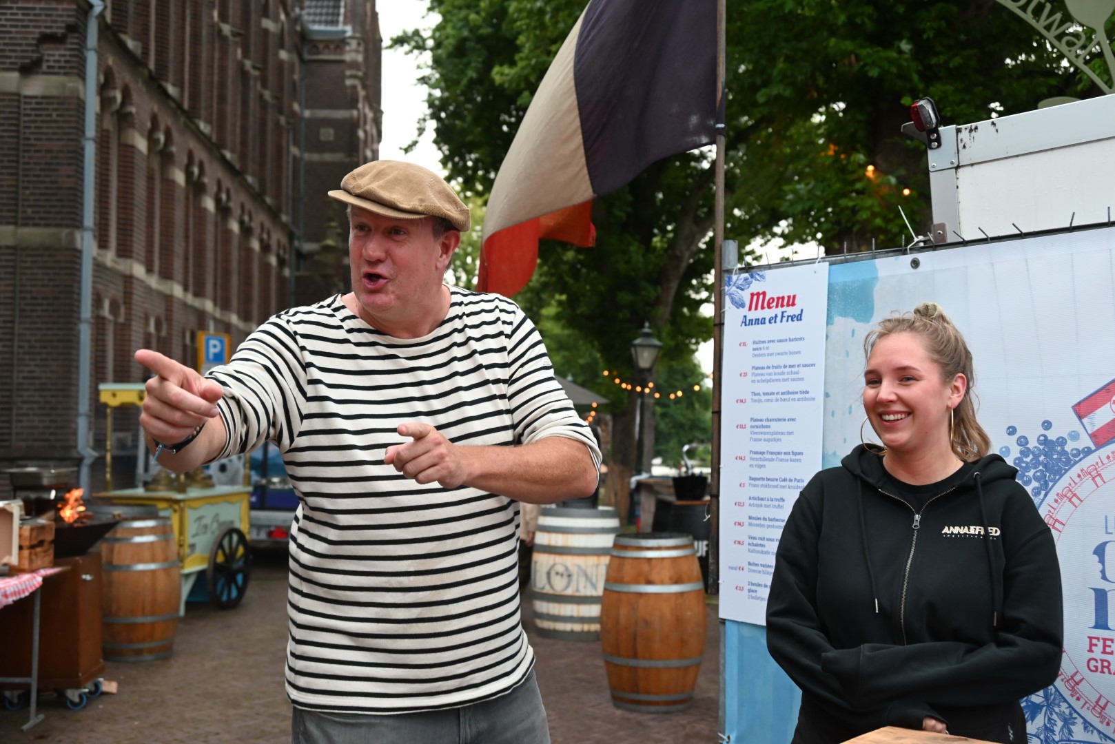 Accordeonist Cato Fluitsma, troubadour Chiel, duo Uku Vibes, Plaatje vullen Gaatjes en DJ Montalto zorgden met hun muziek voor een Frans sfeertje, terwijl sneltekenaar John van Dam karikaturen van de bezoekers maakte.