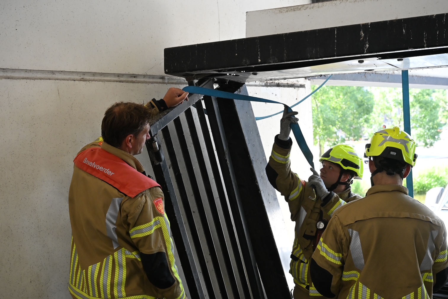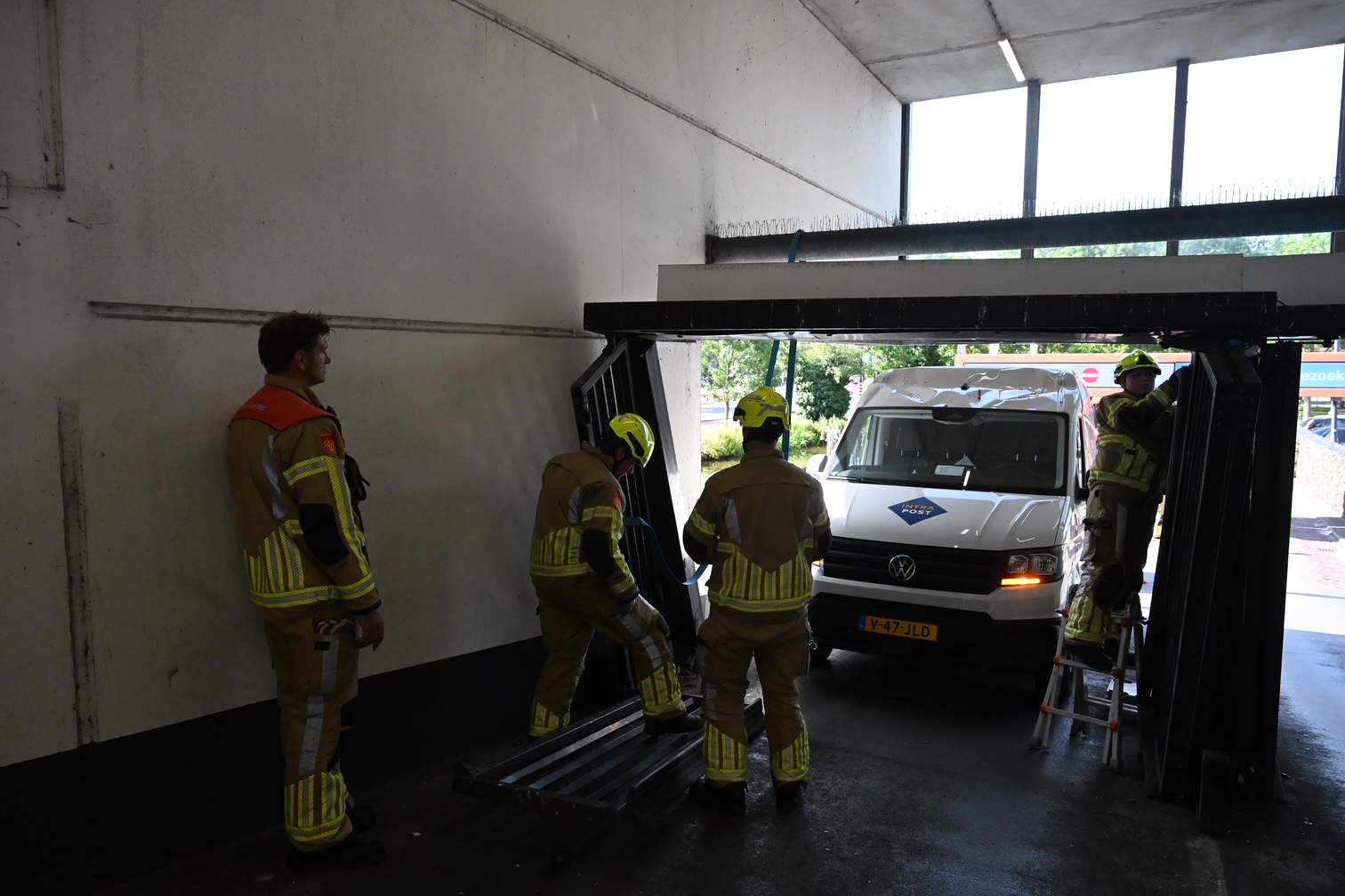 De garage is een tijd lang dicht geweest, auto’s konden de garage wel uitrijden.