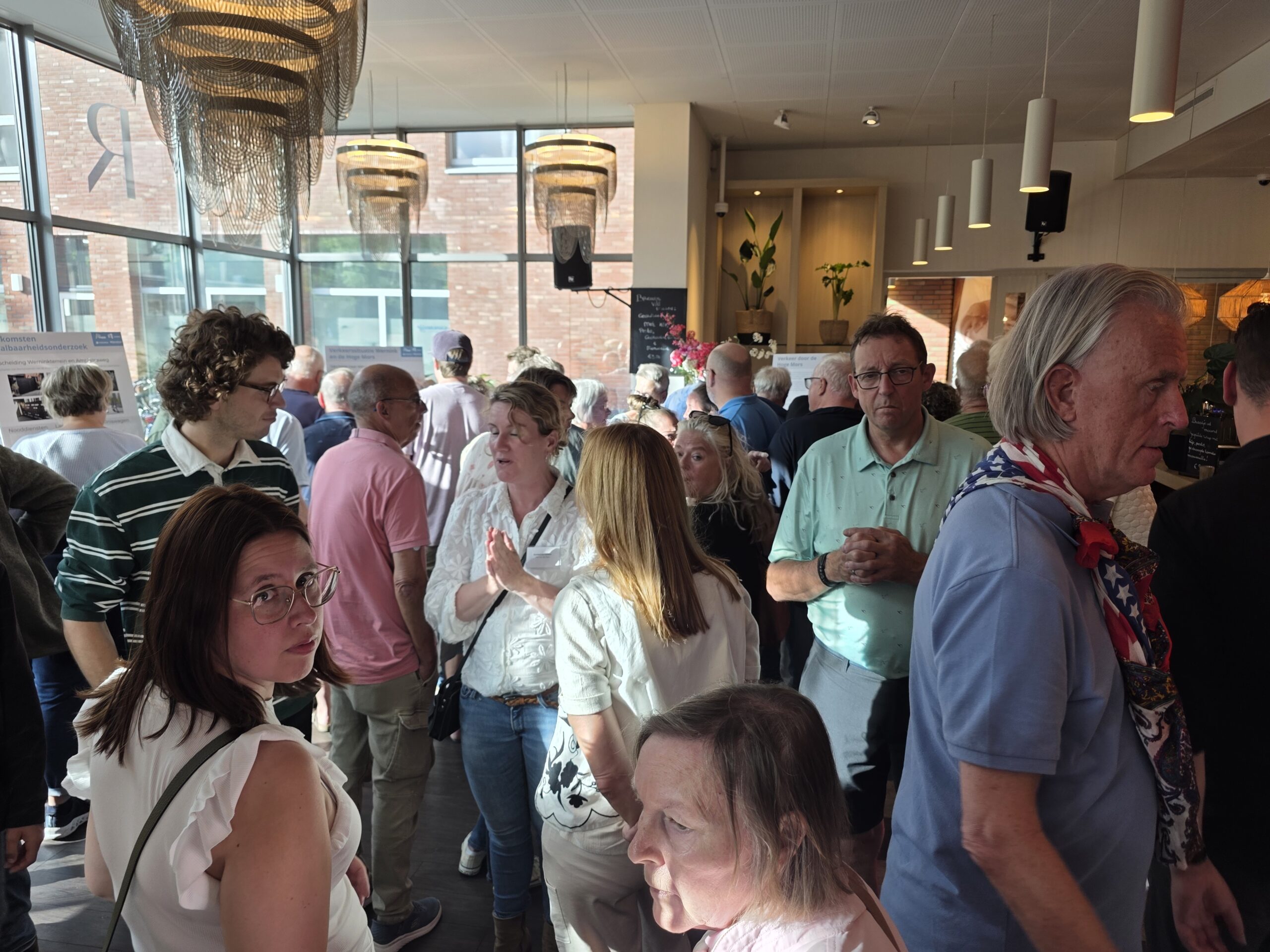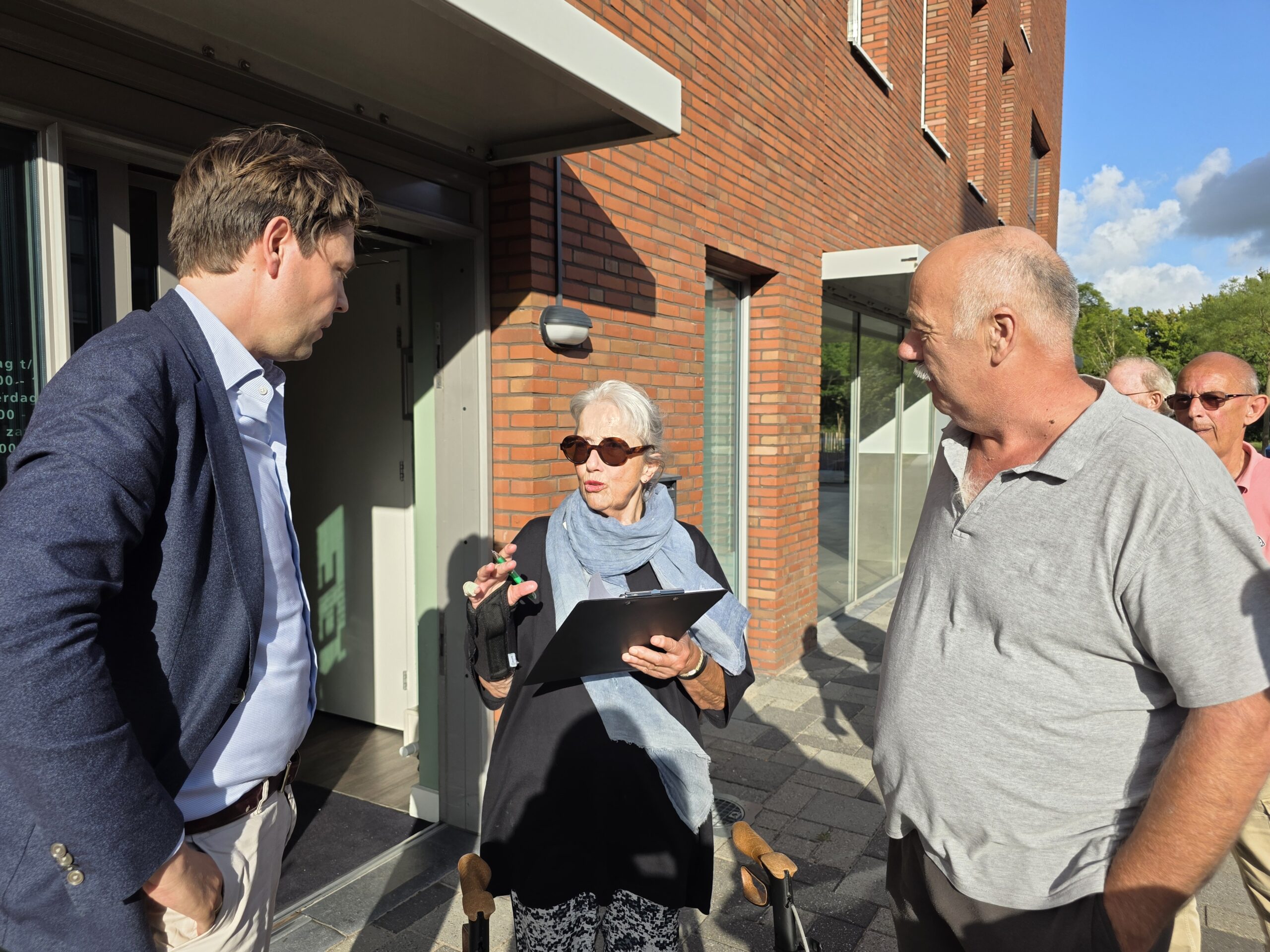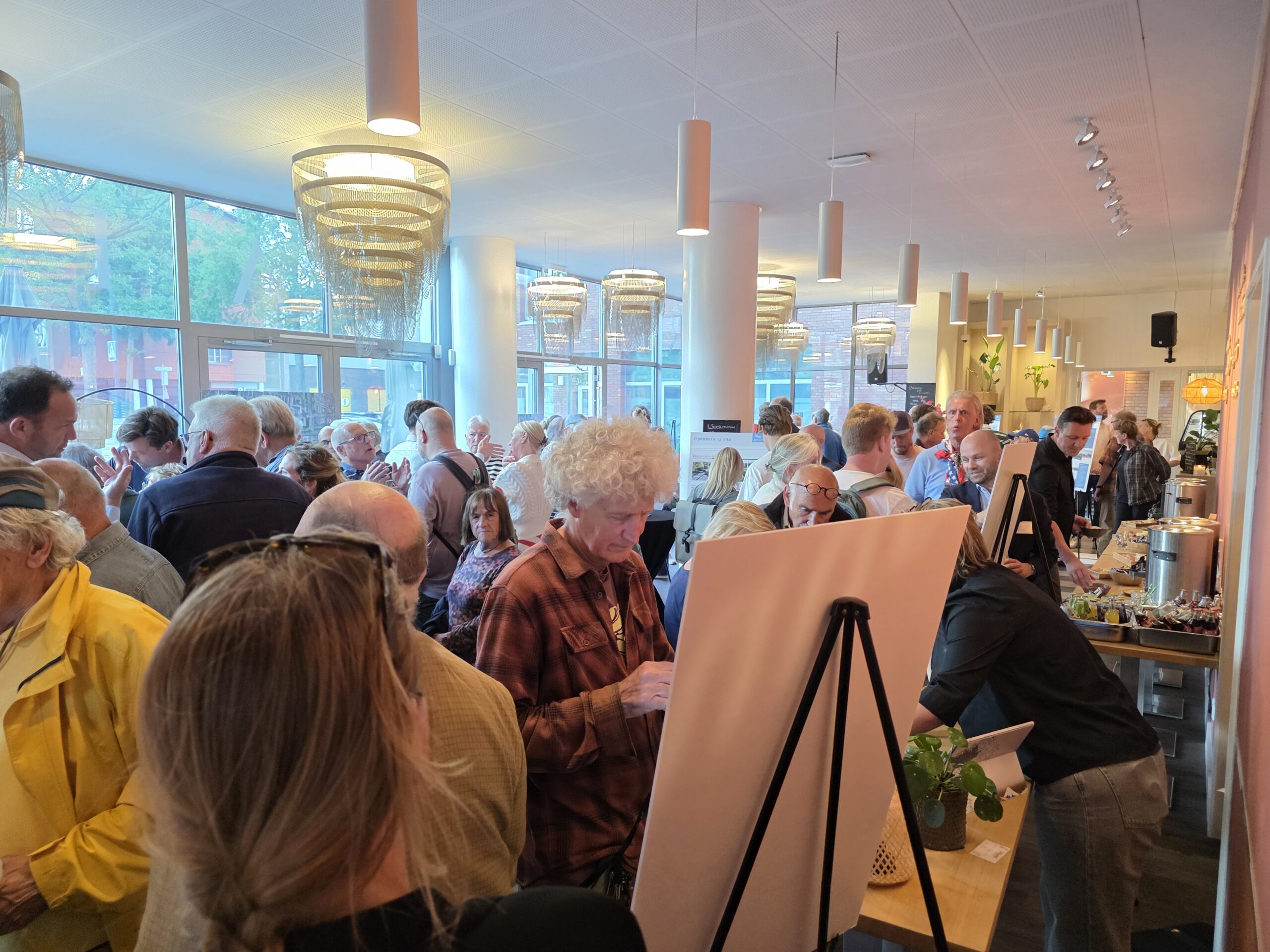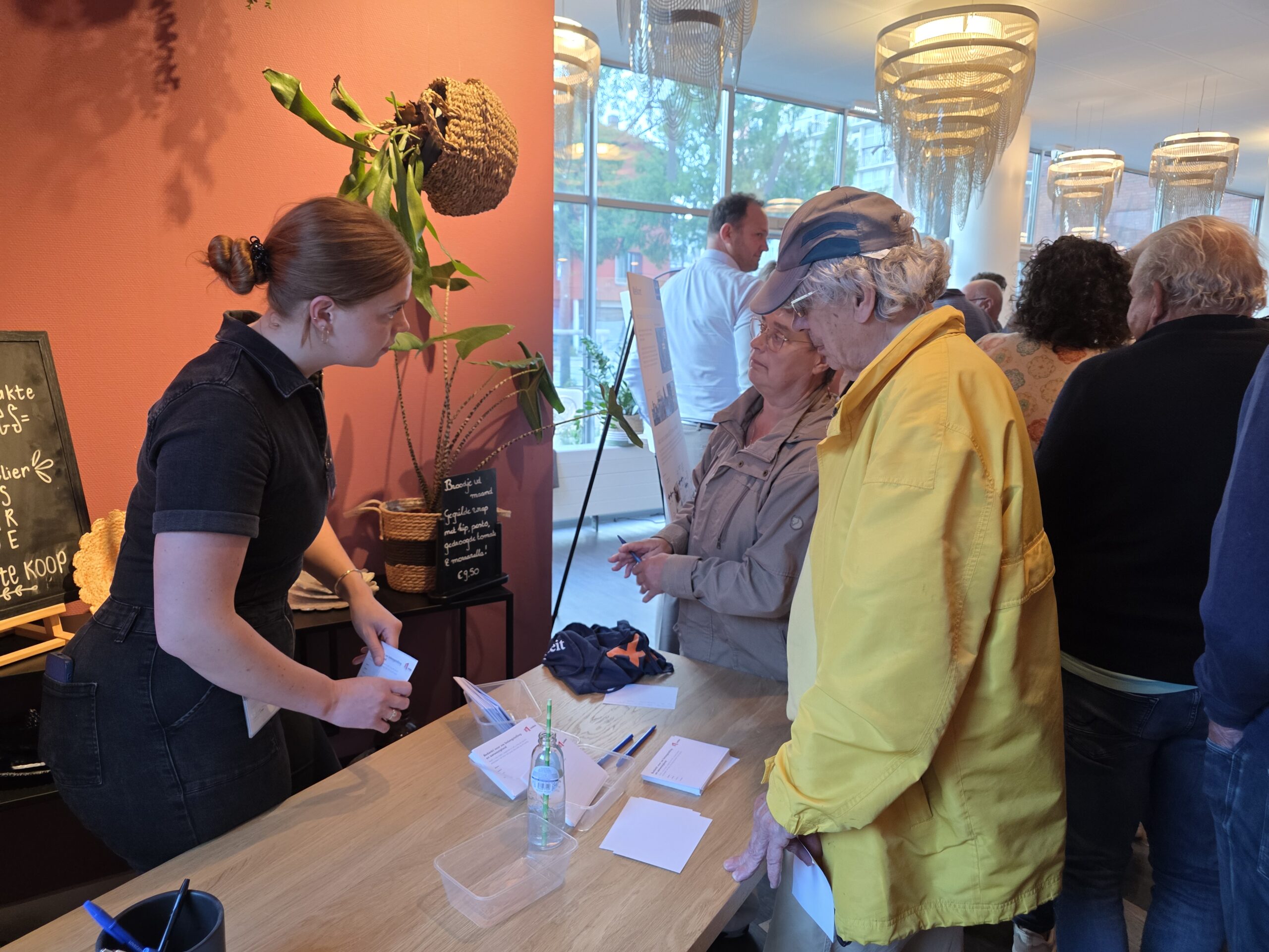 Wethouder Julius Terpstra geeft een toelichting op de nieuwste variant van de plannen. Ook sprake Sleutelstad met een aantal belangstellenden die naar de inloopavond bij Grand Café Deksels aan het Granaatplein waren gekomen.