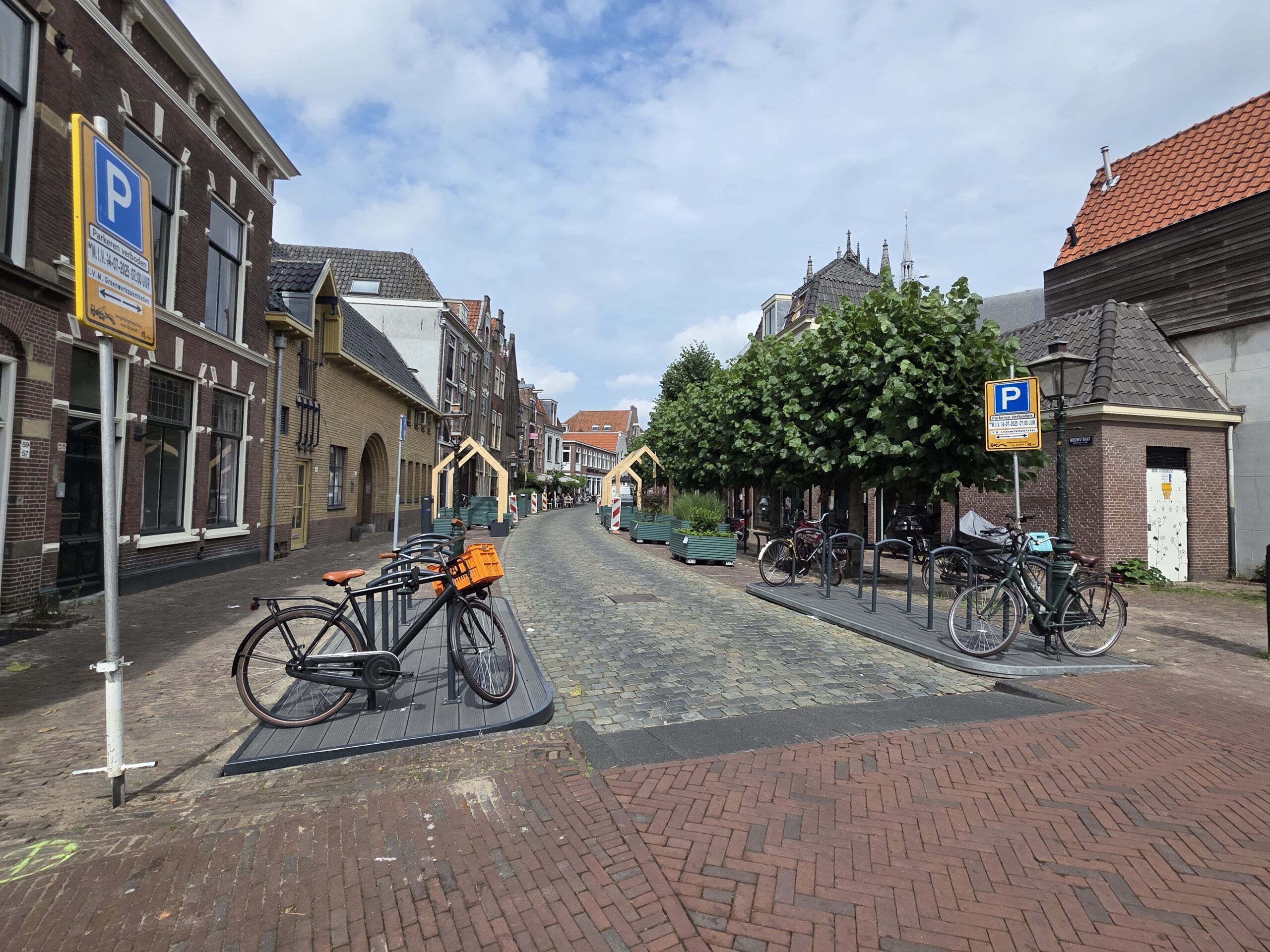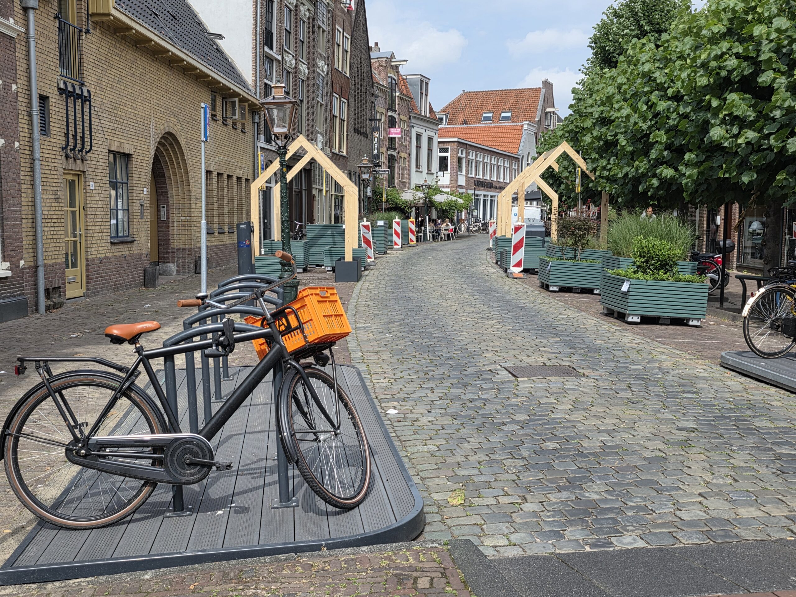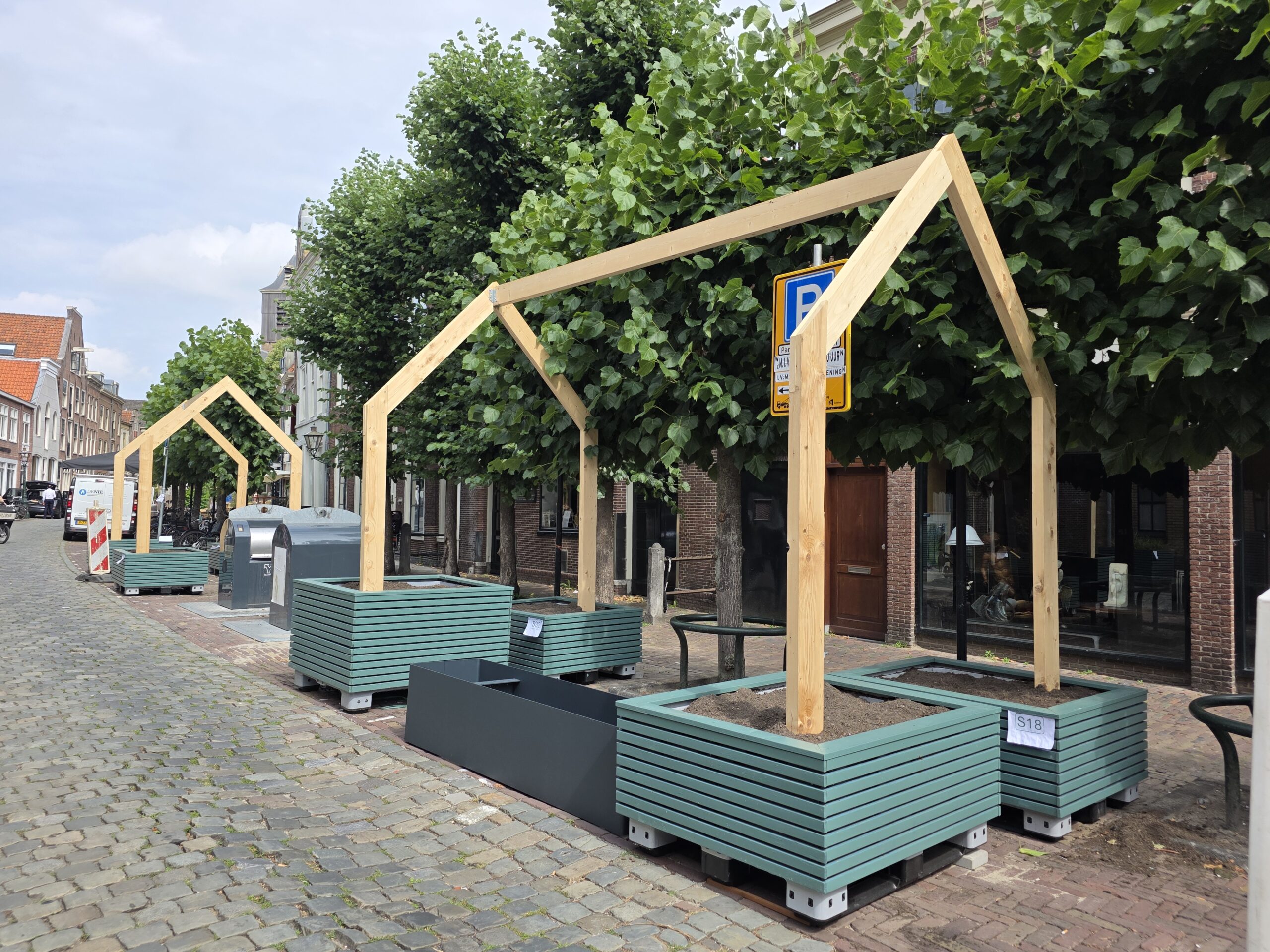 In de parkeervakken zijn grote plantenbakken neergezet die speciaal voor dit doel zijn gemaakt bij sociaal werkbedrijf DZB Leiden. Deze vullen zij met kleurrijke beplanting en enkele boompjes. Ook zijn er fietsvlonders neergezet, zodat er meer ruimte is voor fietsen en om de boel een extra gezellige uitstraling te geven, zijn er schemerlampen geplaatst.