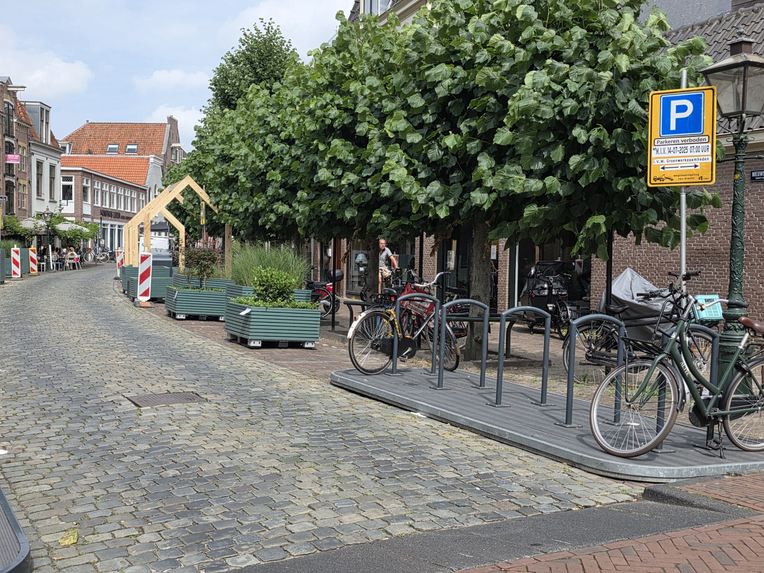 Het gaat in eerste instantie om een proef. Na de zomer kunnen bewoners en ondernemers hun mening geven over de tijdelijke inrichting. Die feedback neemt de gemeente mee bij het definitieve ontwerp voor de herinrichting van de straat. Daarbij verdwijnen ook meerdere parkeerplekken.
