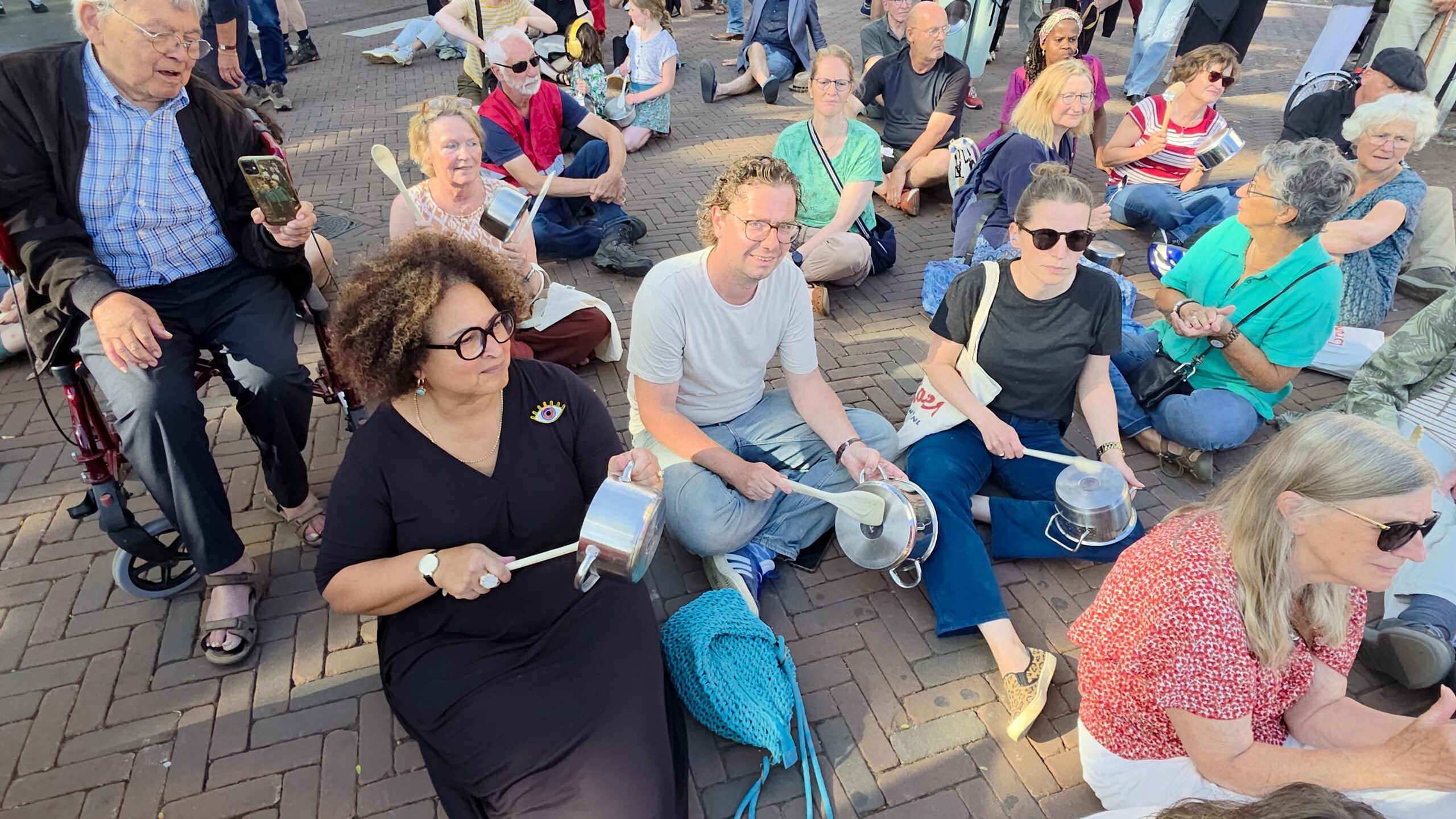 Enkele honderden mensen hebben donderdagavond in Leiden gevolg gegeven aan de oproep om te komen protesteren tegen de Israëlische bezetting van de Gaza-strook. Het ging om een lawaaidemonstratie, waarbij met pollepels op potten en pannen werd geslagen om op die manier aandacht te vragen voor de enorme hongersnood in Gaza.