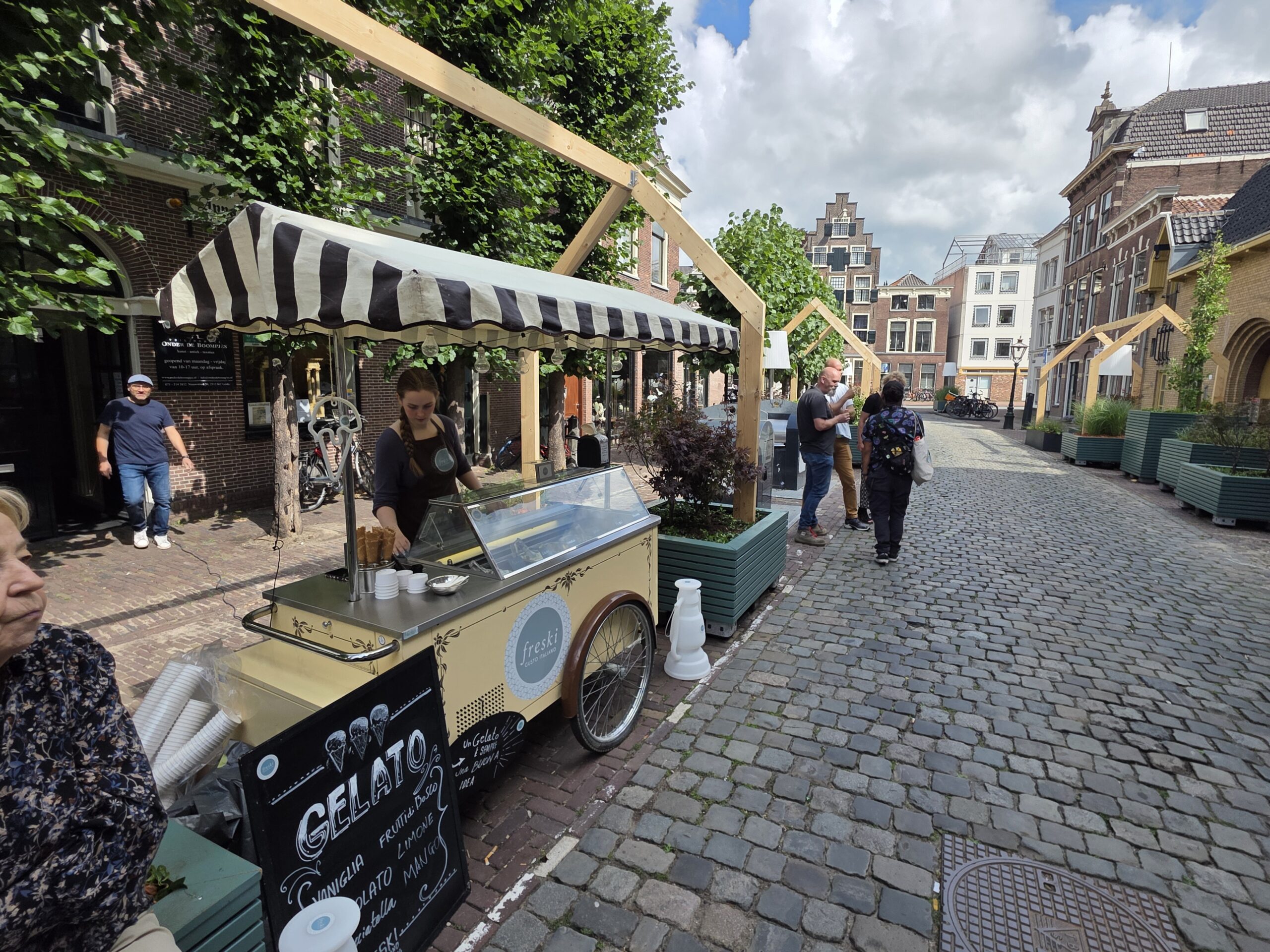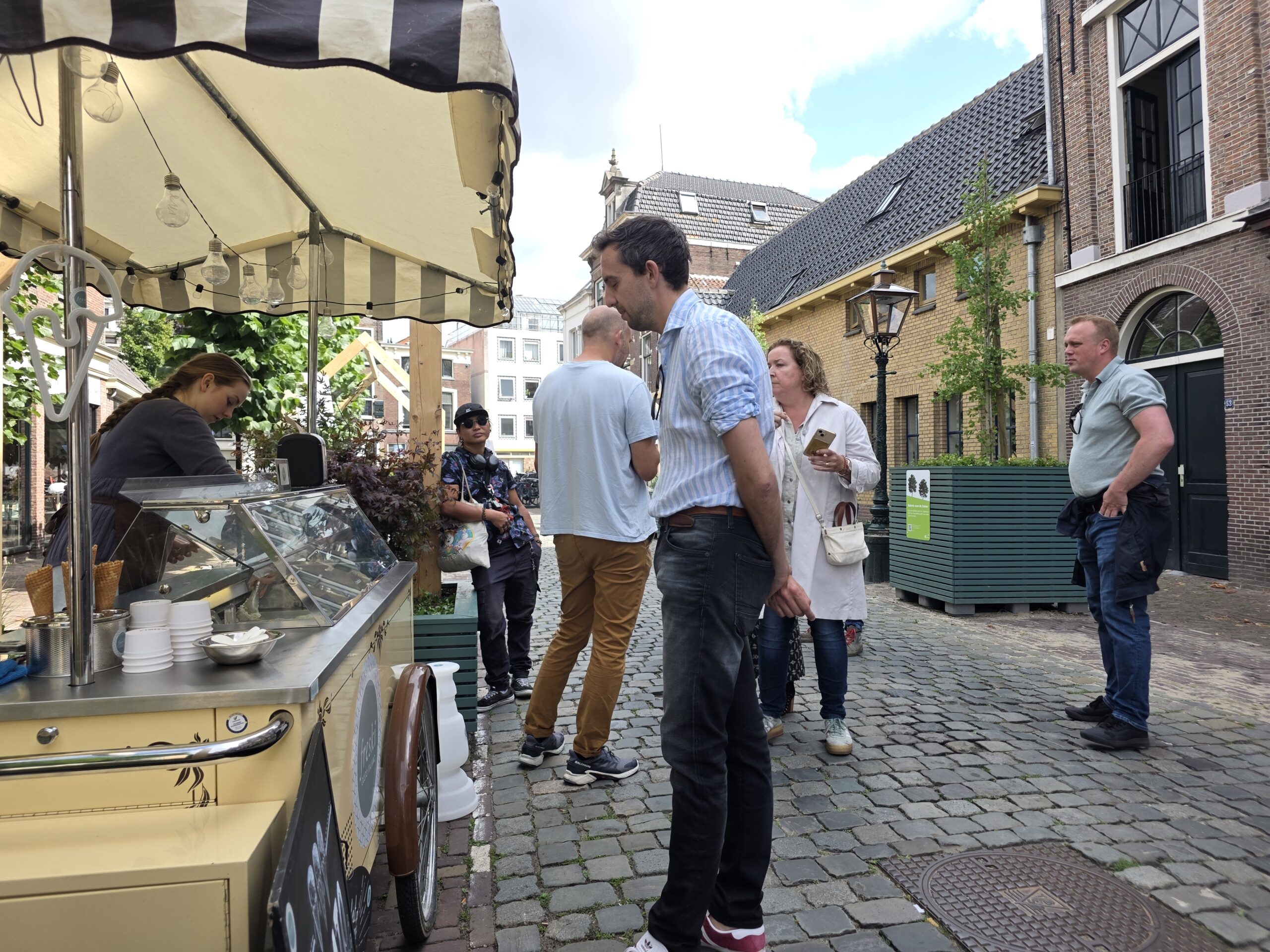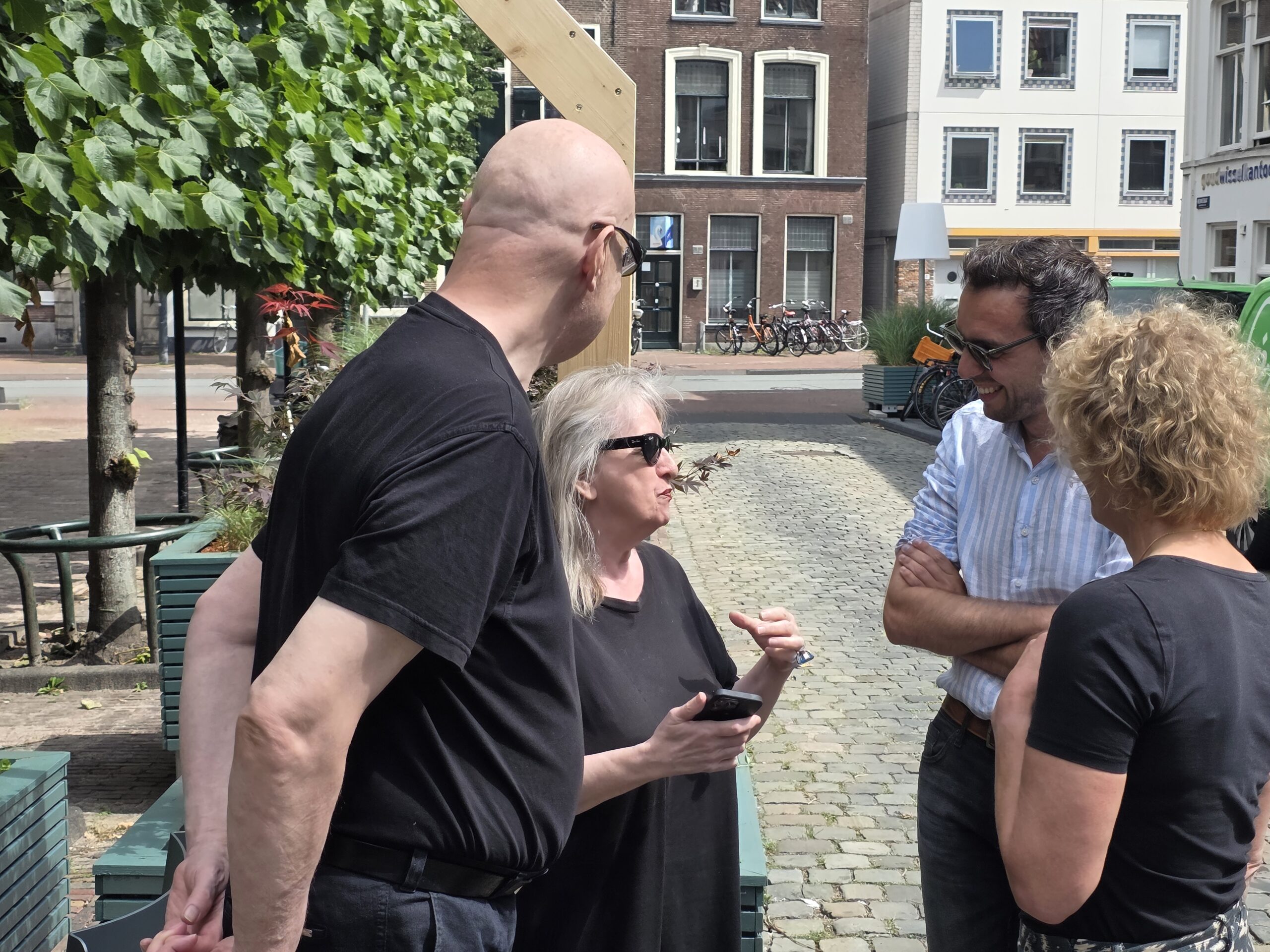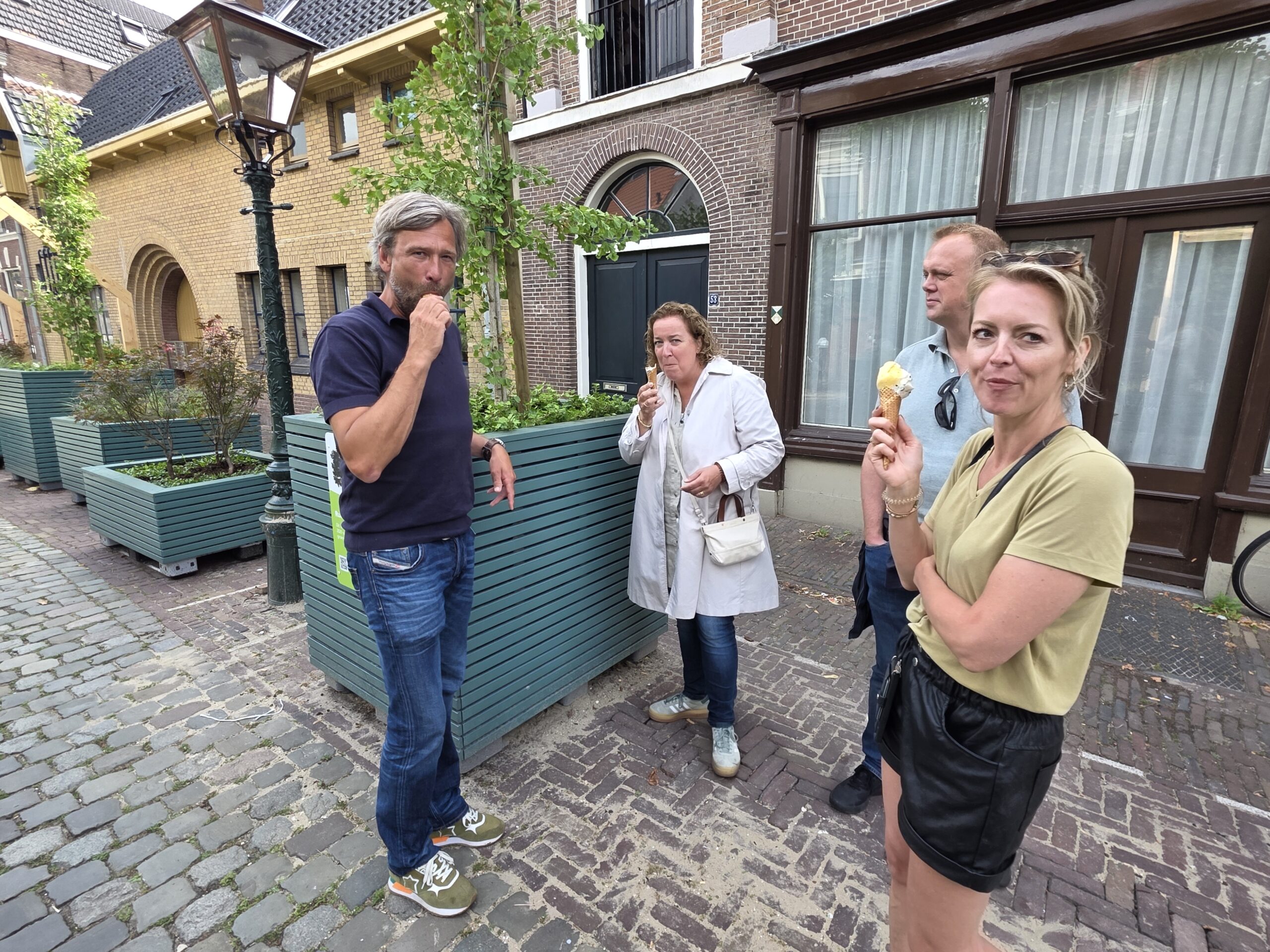 Terwijl voor de deur van Veilinghuis ‘Onder de Boompjes’ gratis Italiaans ijs werd uitgedeeld, maakte North een praatje met de bewoners die in groepjes bij elkaar stonden. Eigenlijk precies zoals het was bedoeld: de straat als verlengstuk van de woning tijdens de periode tot 1 september.
