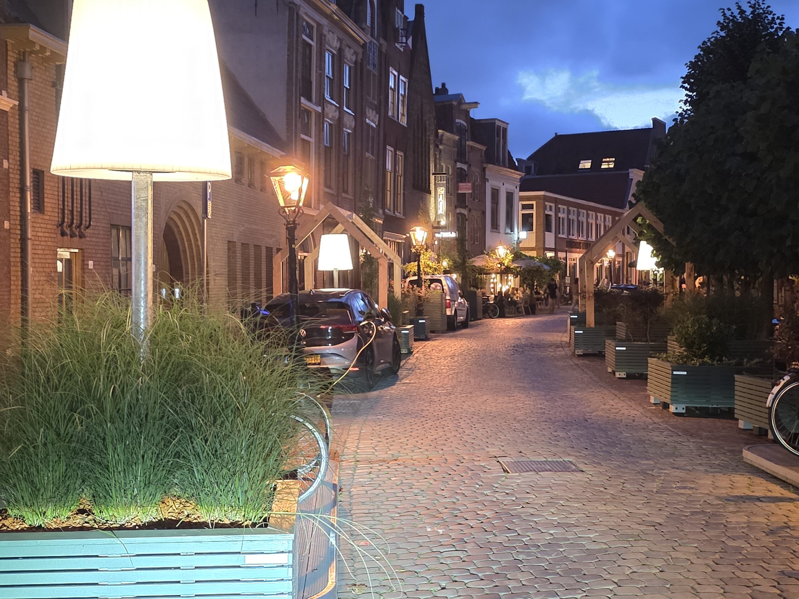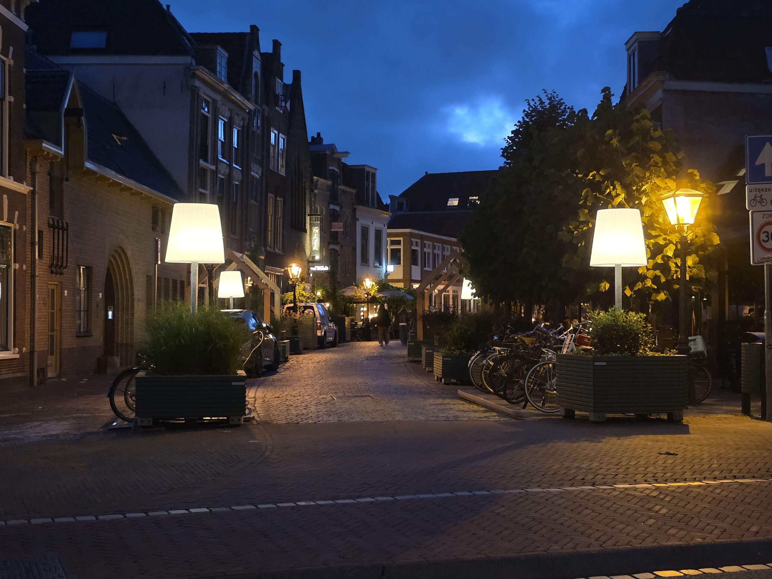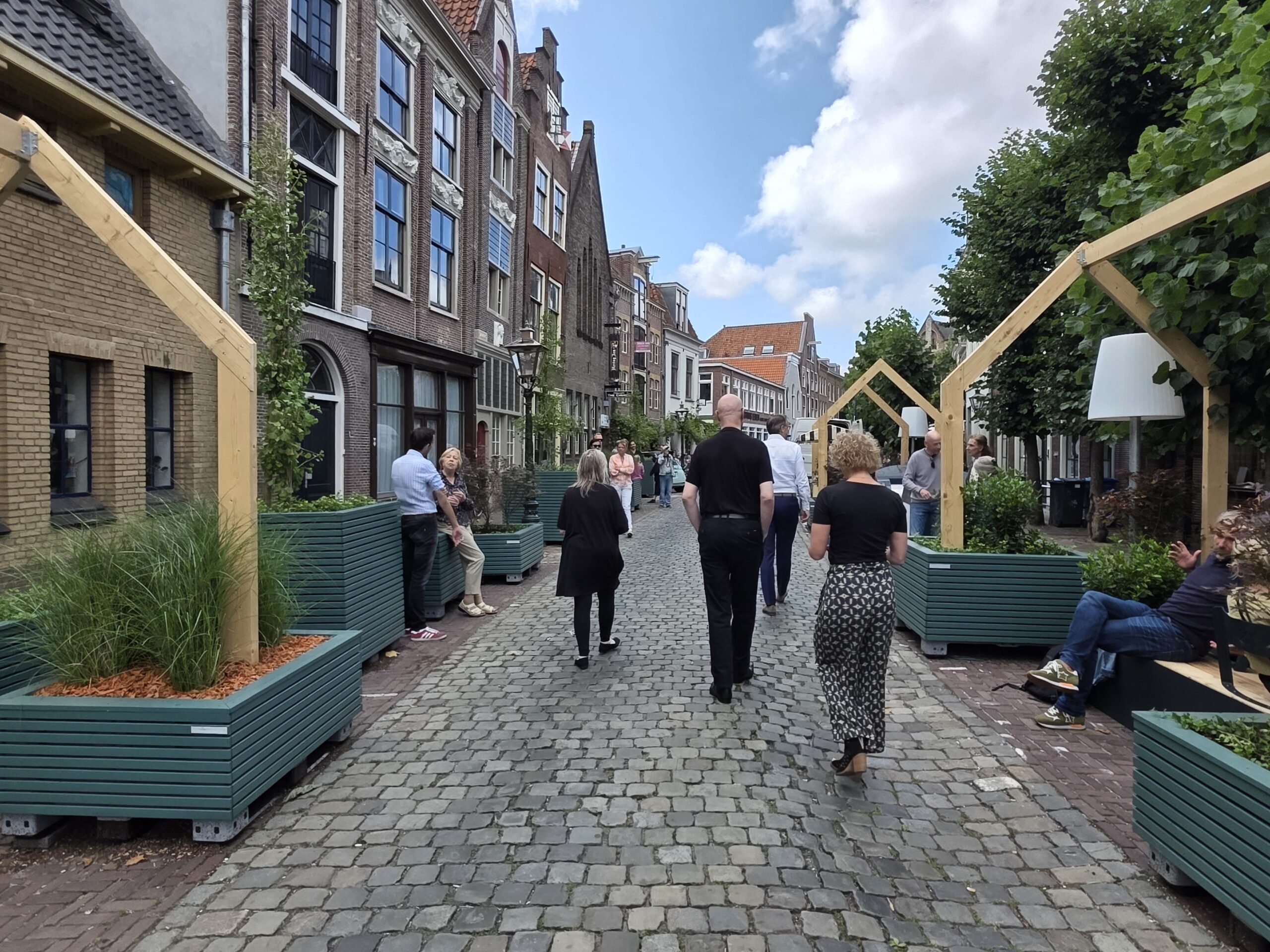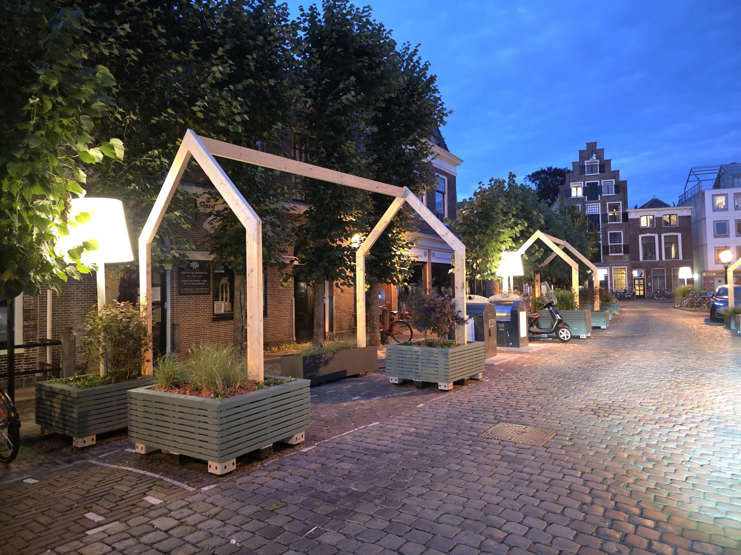 De straat kreeg een tijdelijk herinrichting met een flink aantal plantenbakken vol groen en uit te kluiten gewassen schemerlampen die ondanks hun formaat in de avonduren voor een intiem sfeertje zorgen. Ook staan er her en der bankjes waar de bewoners en voorbijgangers een praatje kunnen maken.