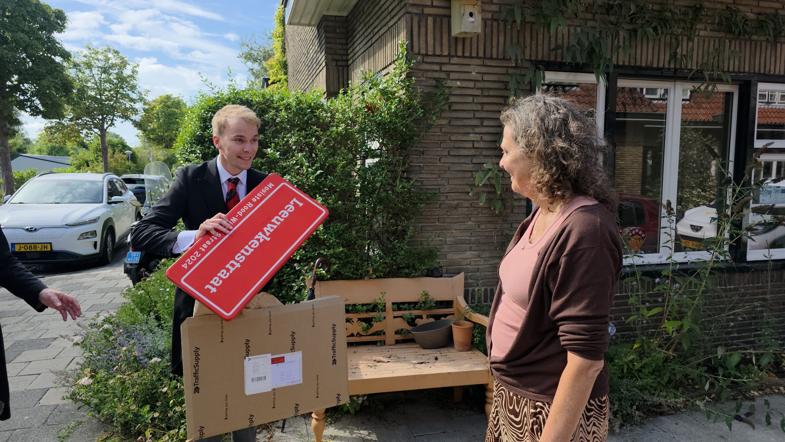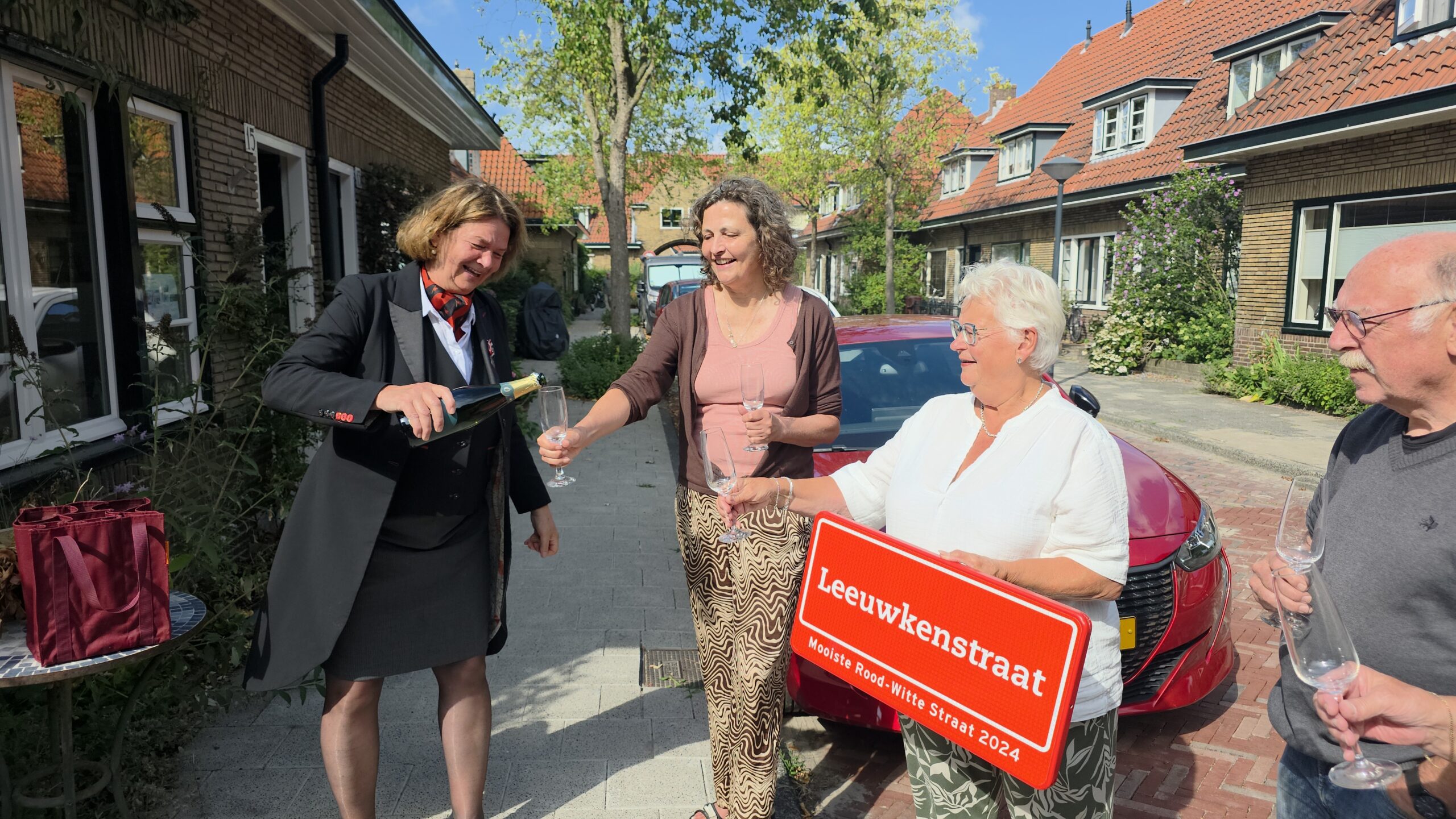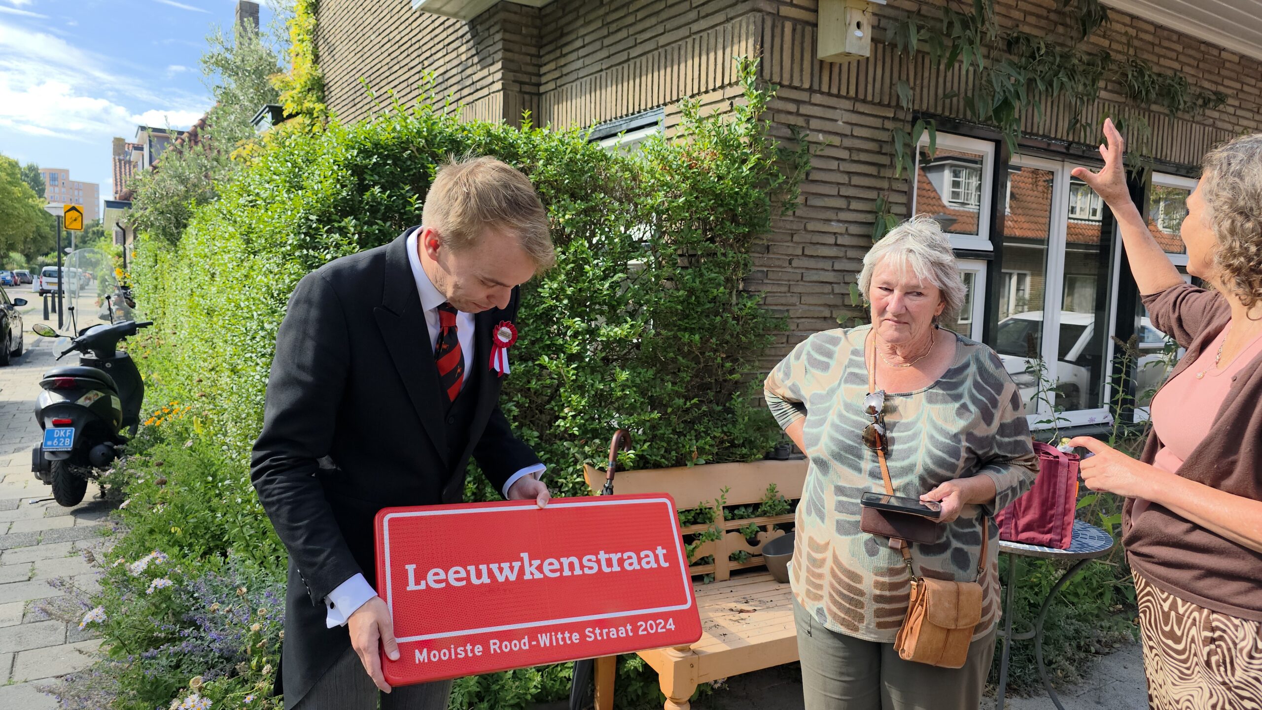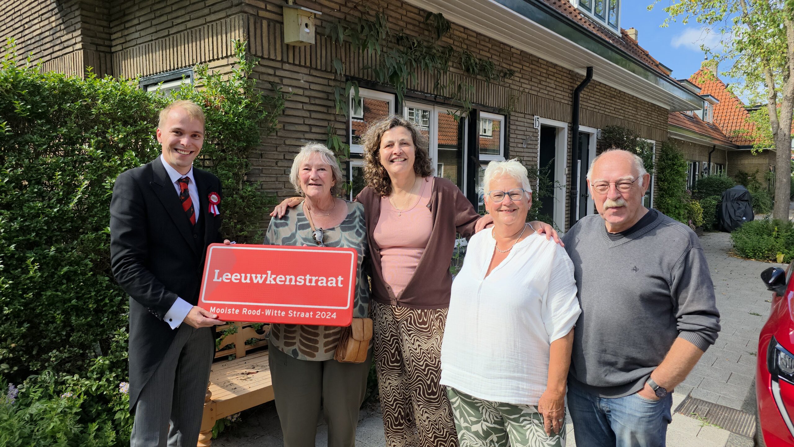 Tot 20 september kunnen Leidse straten zich aanmelden als mooiste rood-witte straat van Leiden. De winnende straat krijgt een prachtige beker en een rood-wit straatnaambord. Woensdagmiddag werd het eerste Rood-Witte Straatnaambord uitgereikt aan de bewoners van de Leeuwkenstraat die er in 2024 met de winst vandoor gingen.