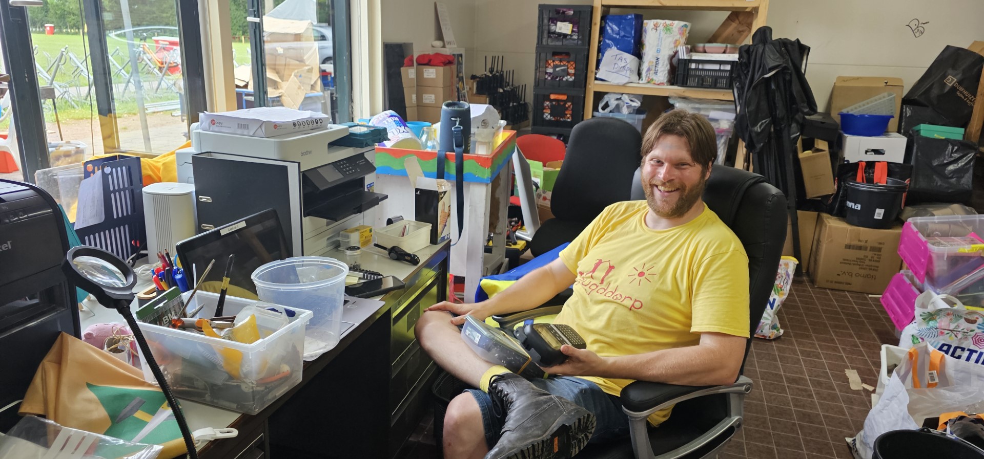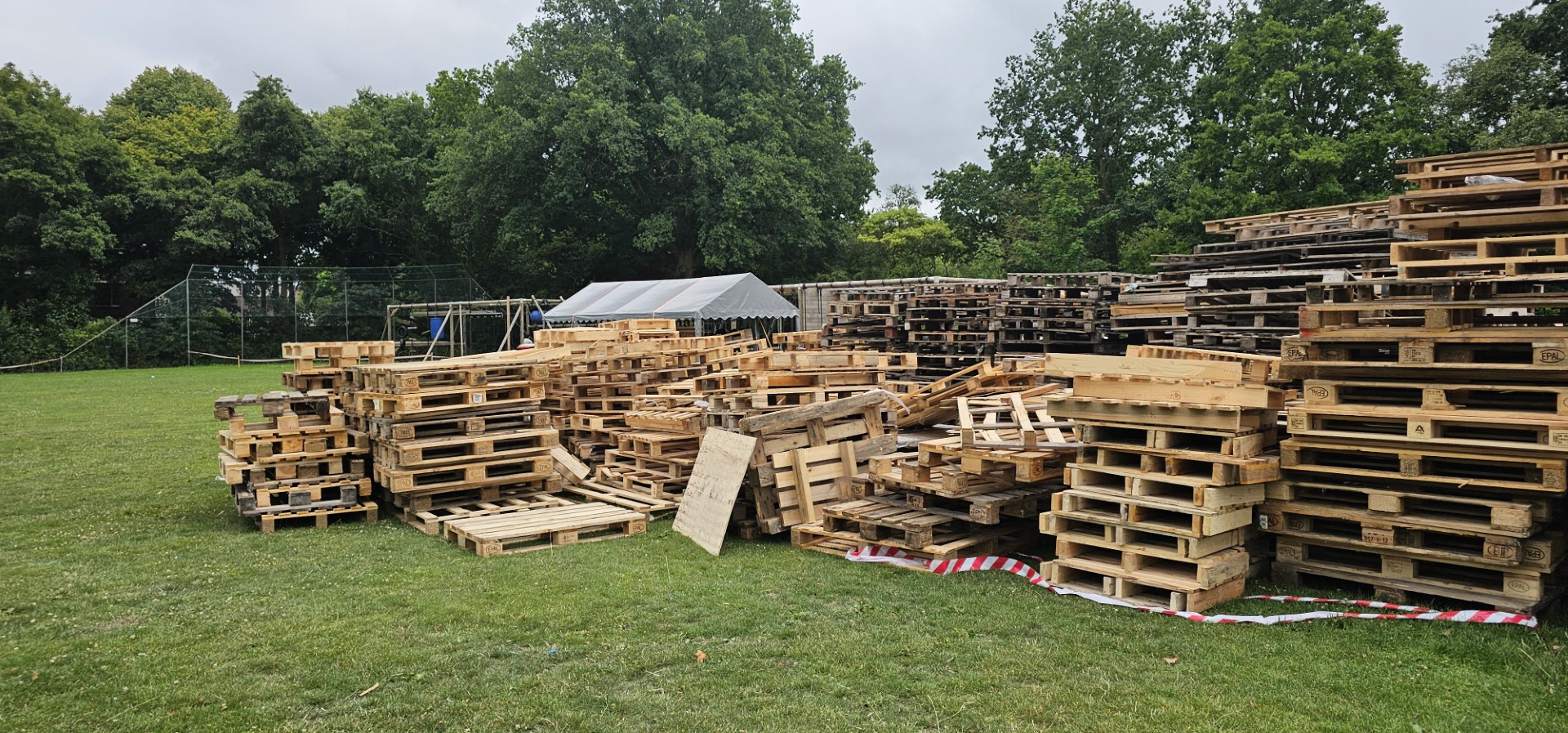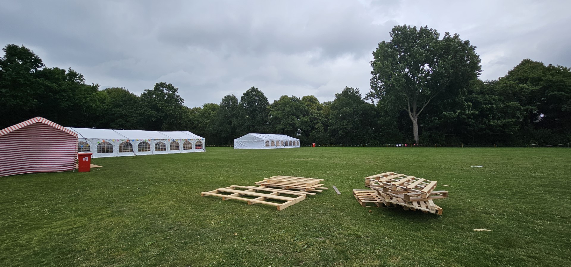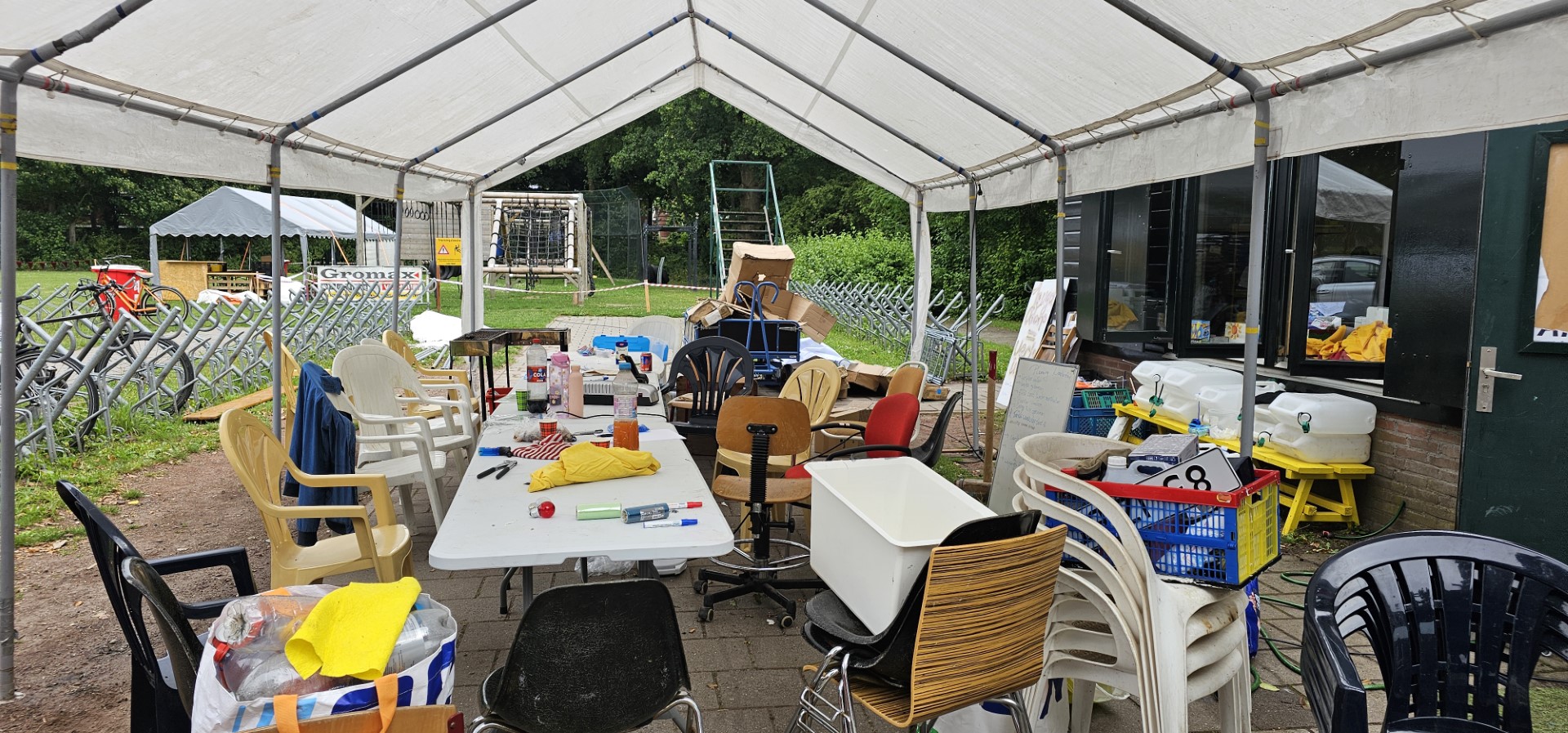 Donderdag lag er in elk geval al een enorme stapel pallets klaar voor de huttenbouw. “Aan de Vliet hadden we beschikking over een paar kleine gebouwtjes, die missen we hier. We hebben dat op kunnen lossen met twee reusachtige evenementententen.”