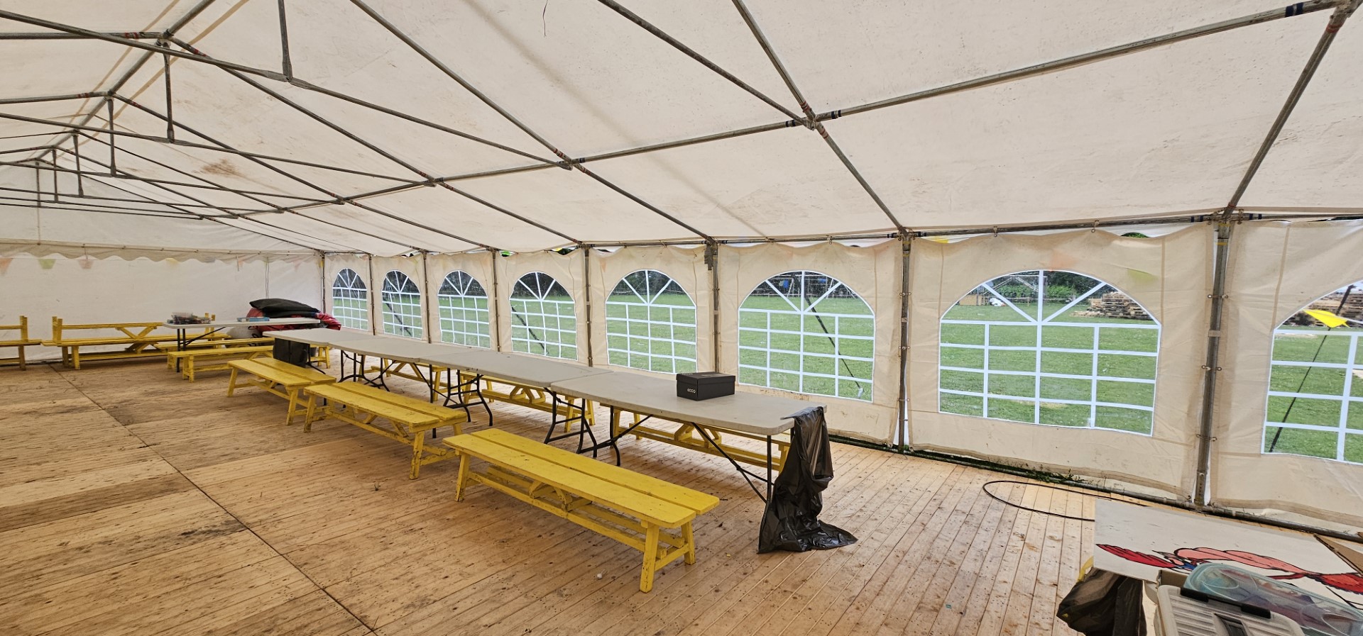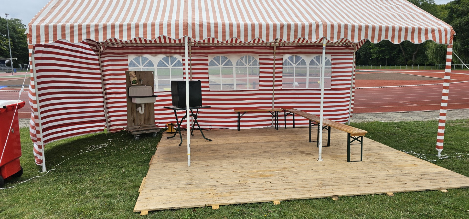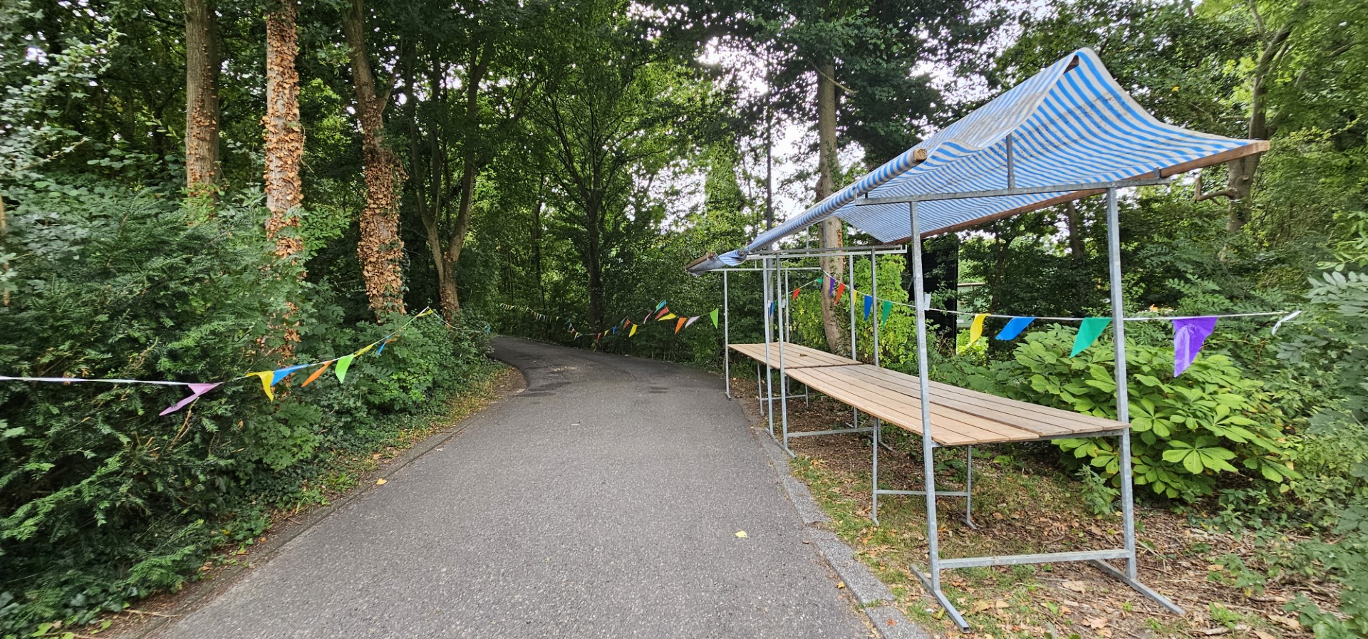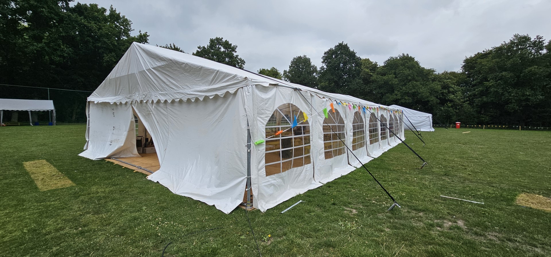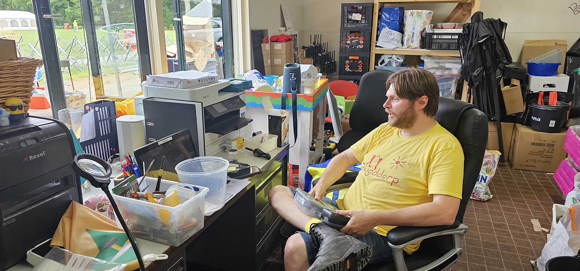 Donderdag lag er in elk geval al een enorme stapel pallets klaar voor de huttenbouw. “Aan de Vliet hadden we beschikking over een paar kleine gebouwtjes, die missen we hier. We hebben dat op kunnen lossen met twee reusachtige evenementententen.”