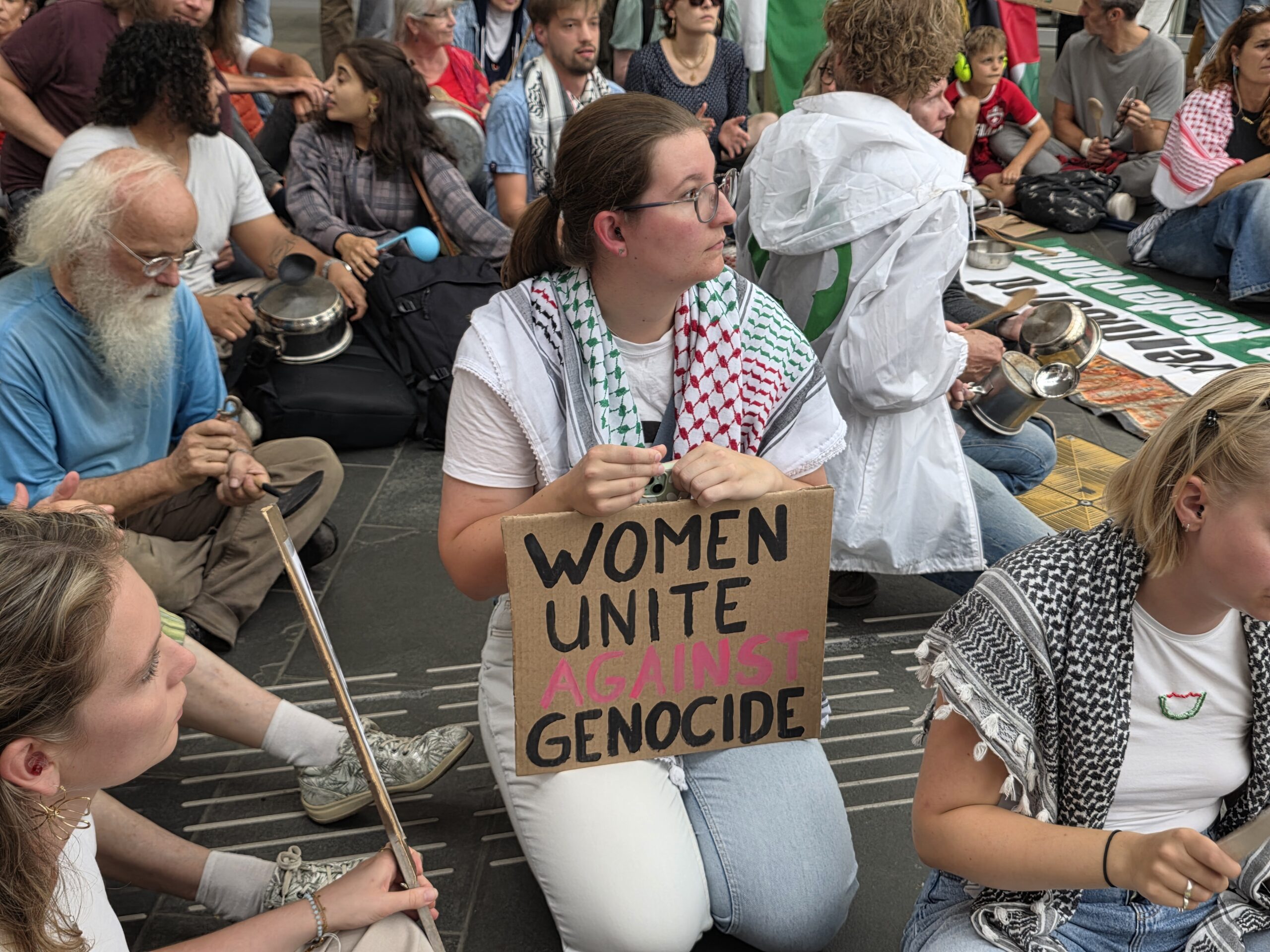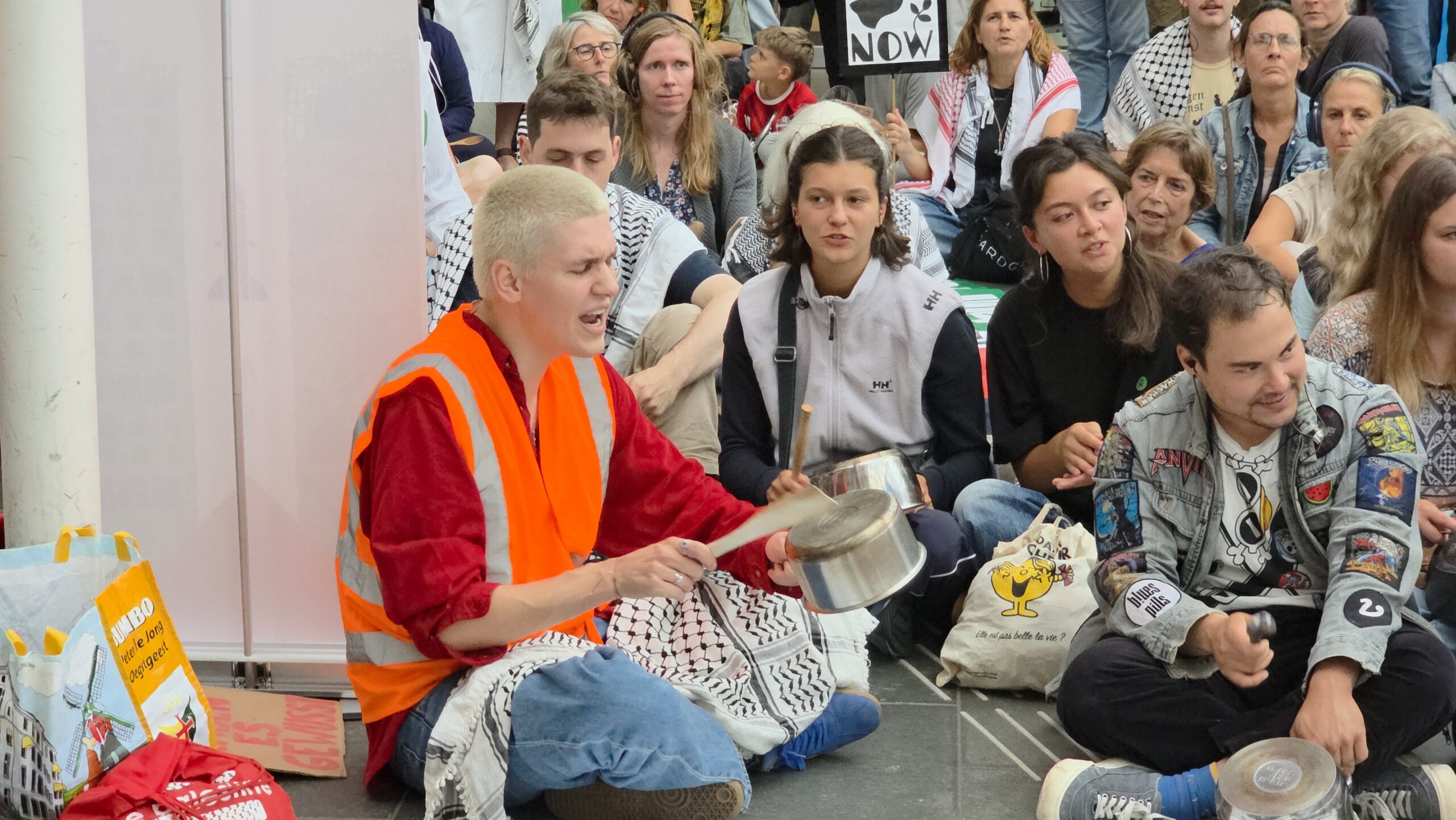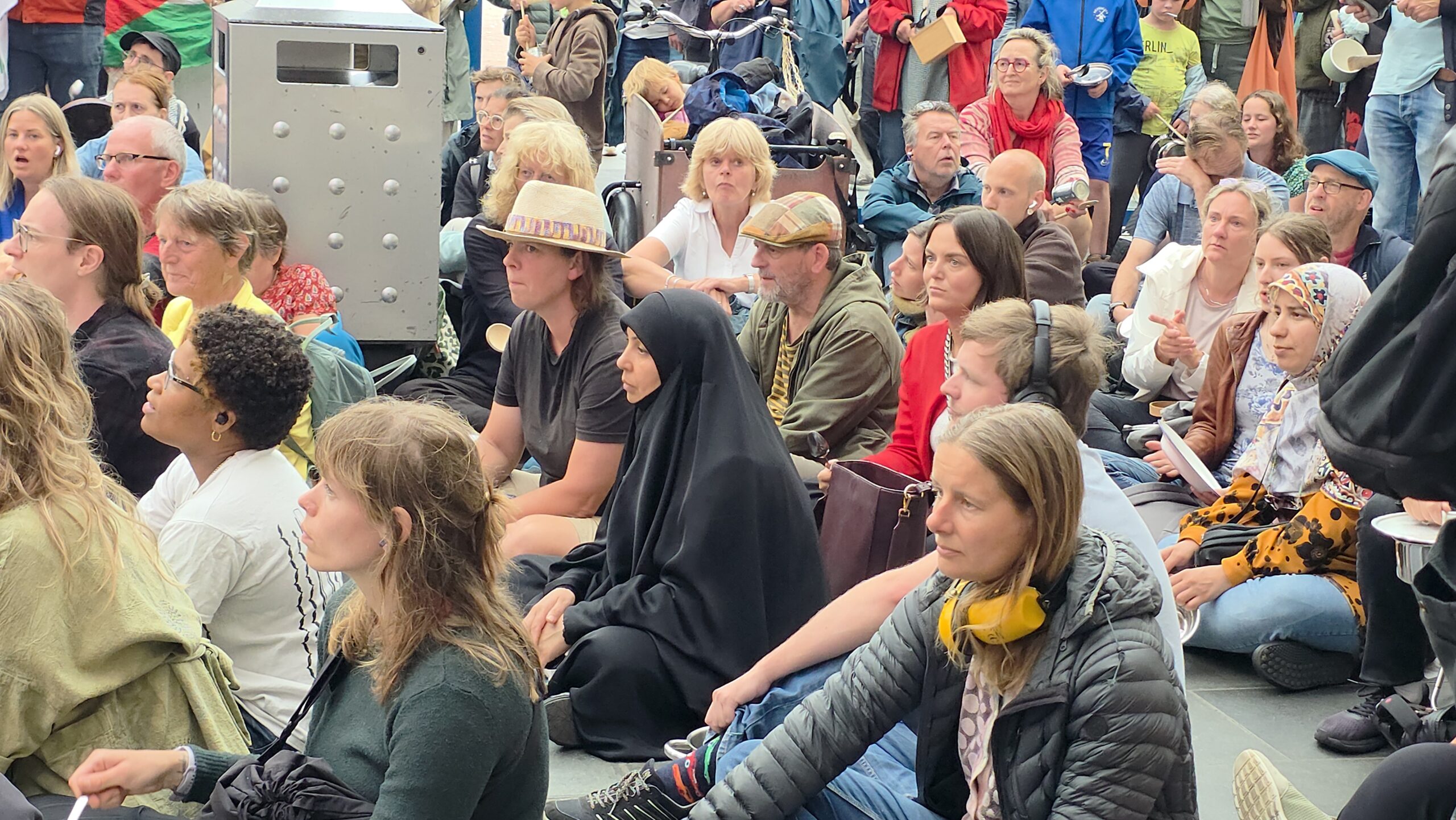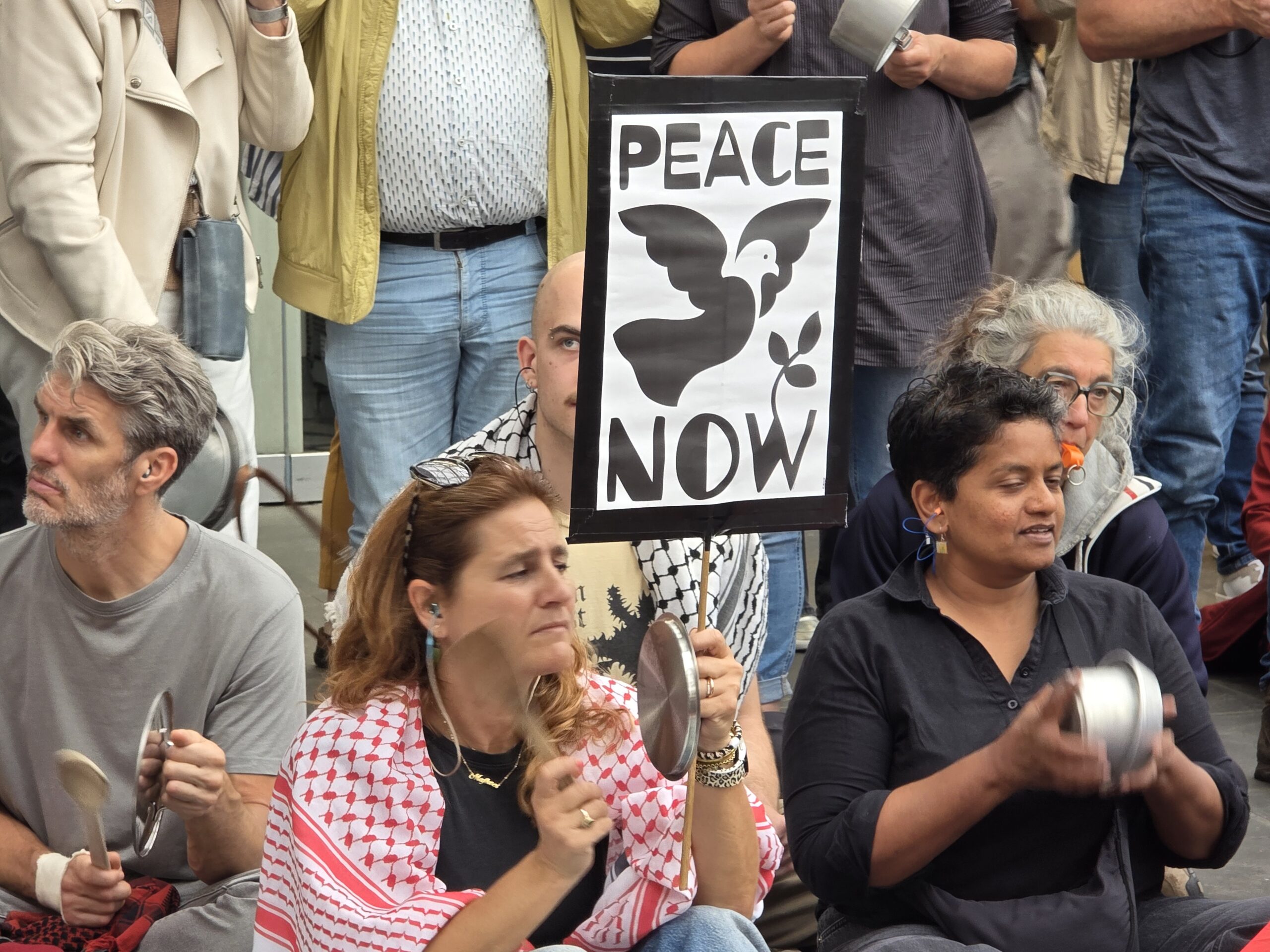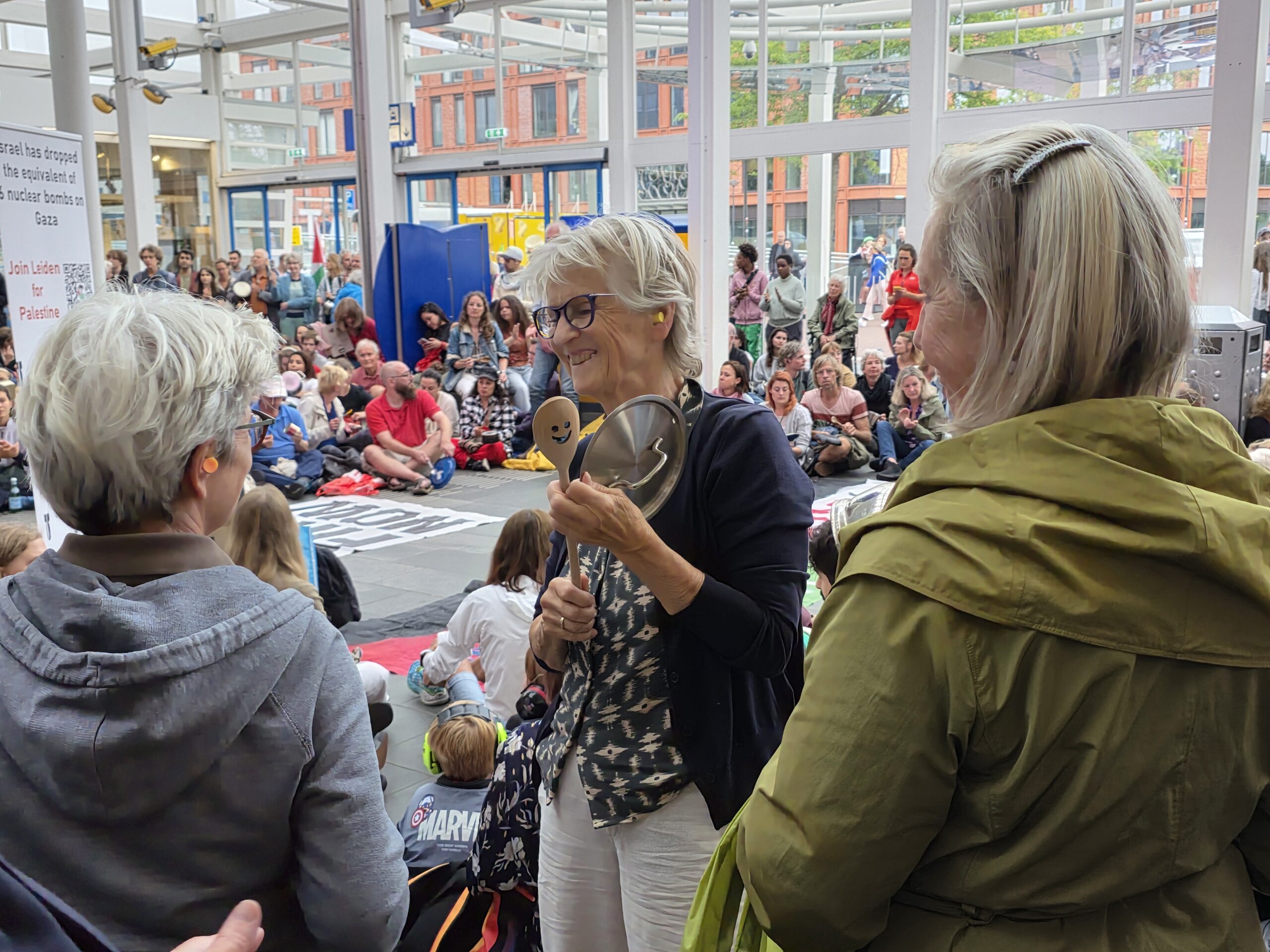 Honderden mensen die niet meer lijdzaam willen toezien hoe de Israëlische regering van Netanyahu Gaza uithongert kwamen donderdagavond voor de tweede week op rij samen bij het centraal station in Leiden. Door met pollepels op potten en pannen te slaan werd aandacht gevraagd voor de oorlog in het gebied.