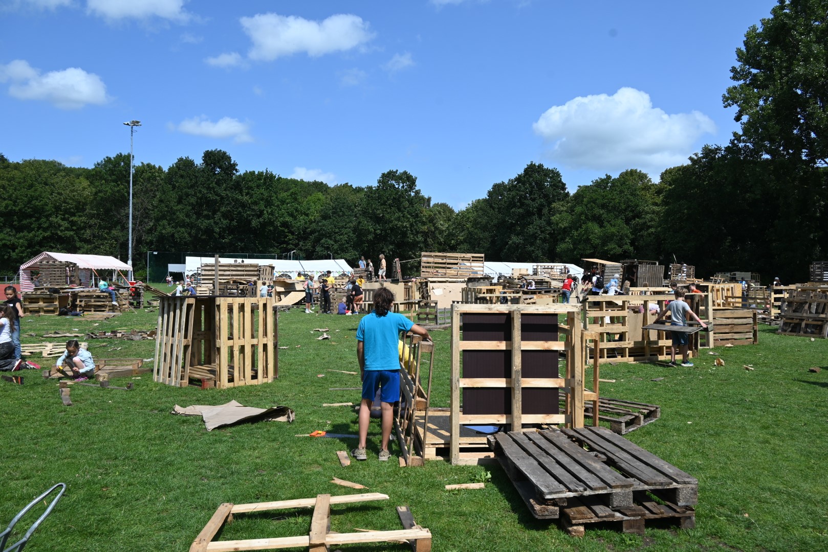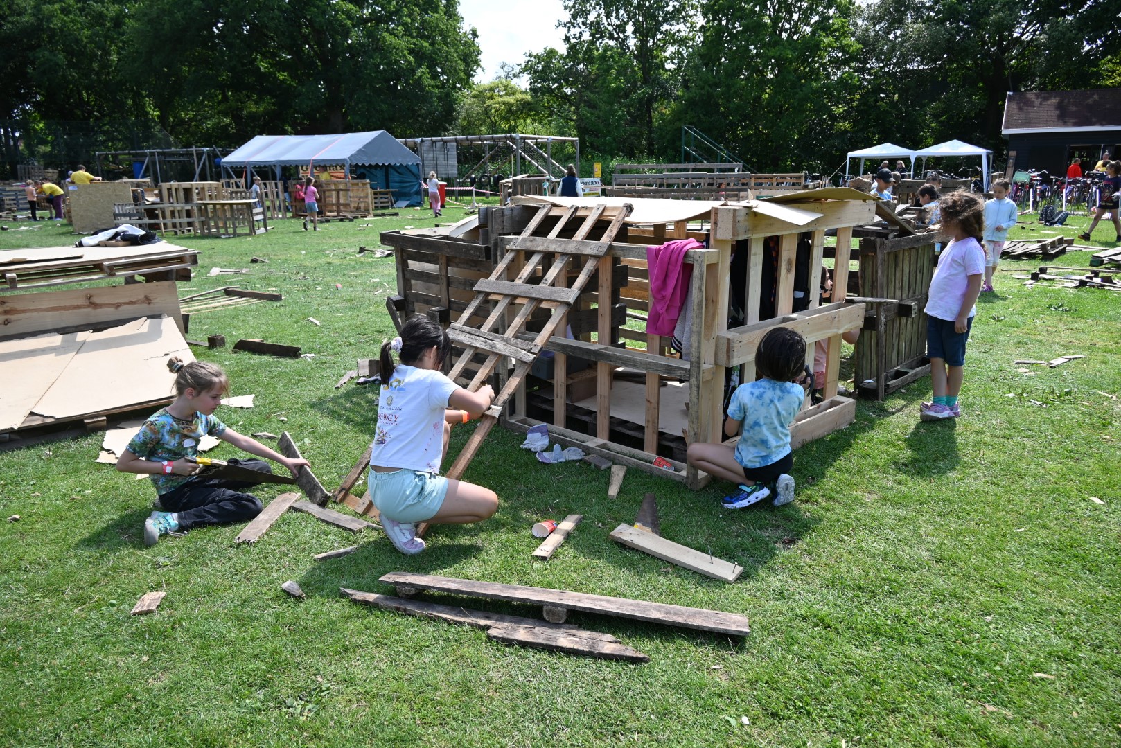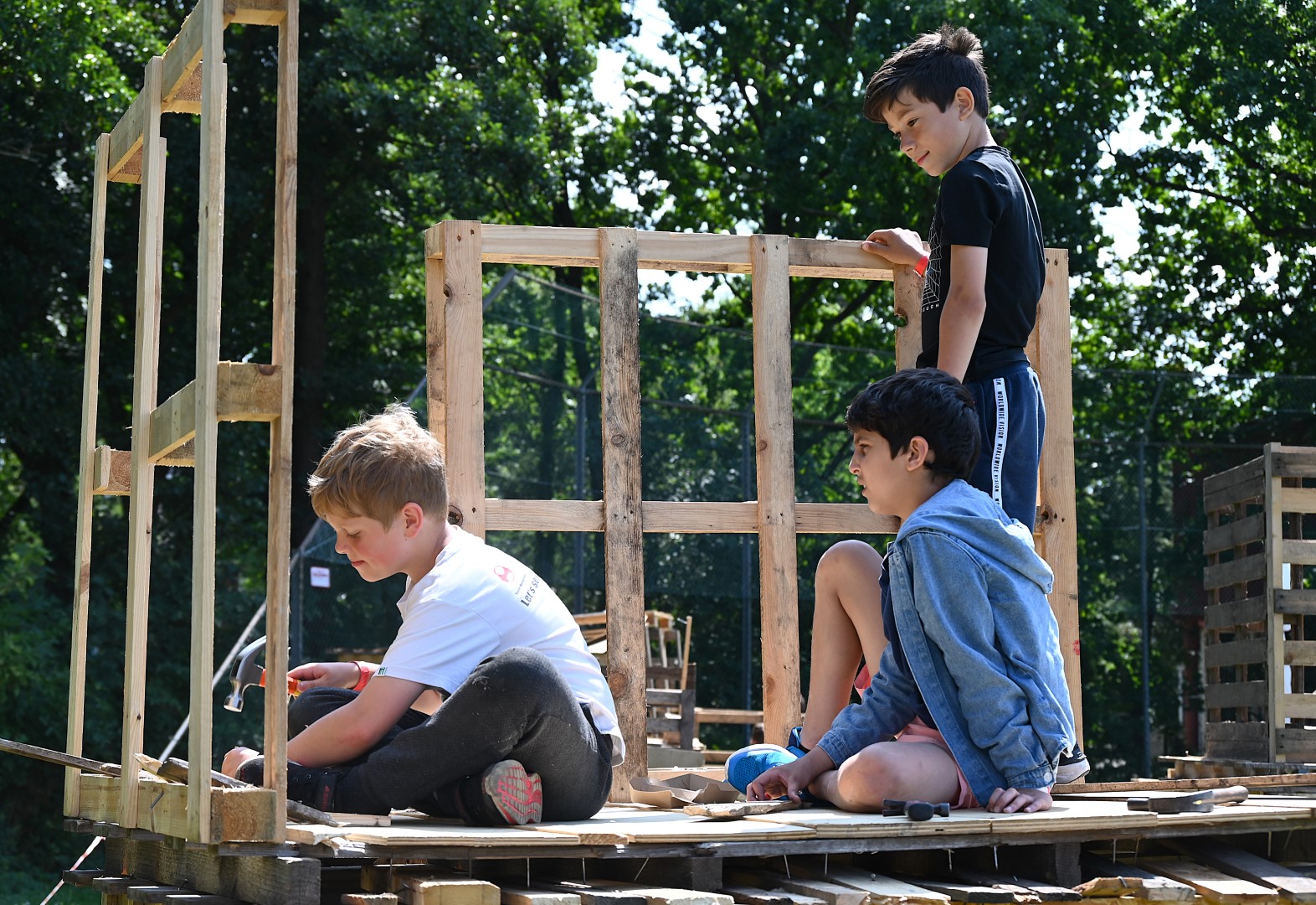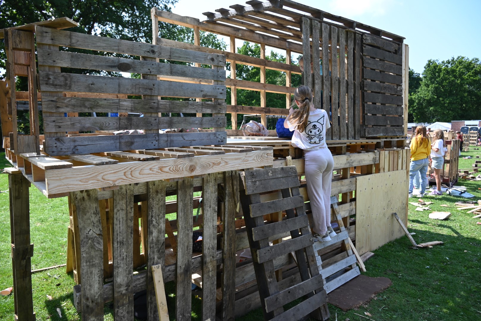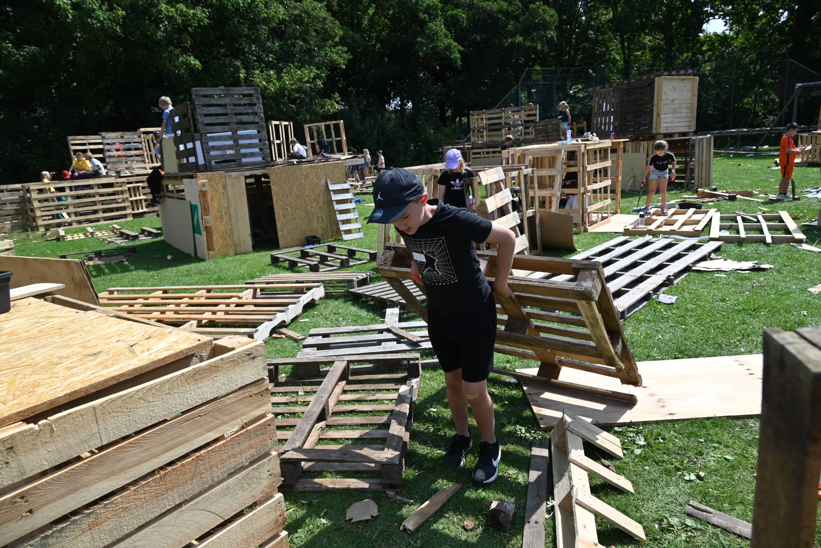 Hutten bouwen is altijd het populairste onderdeel van het vakantiedorp waar kinderen in hun eigen stad vakantie kunnen vieren. “Er zijn nu ongeveer tweehonderd kinderen aan het klussen”, zegt bestuurslid Jordy Piket. De andere honderd deelnemers doen een van de andere activiteiten.