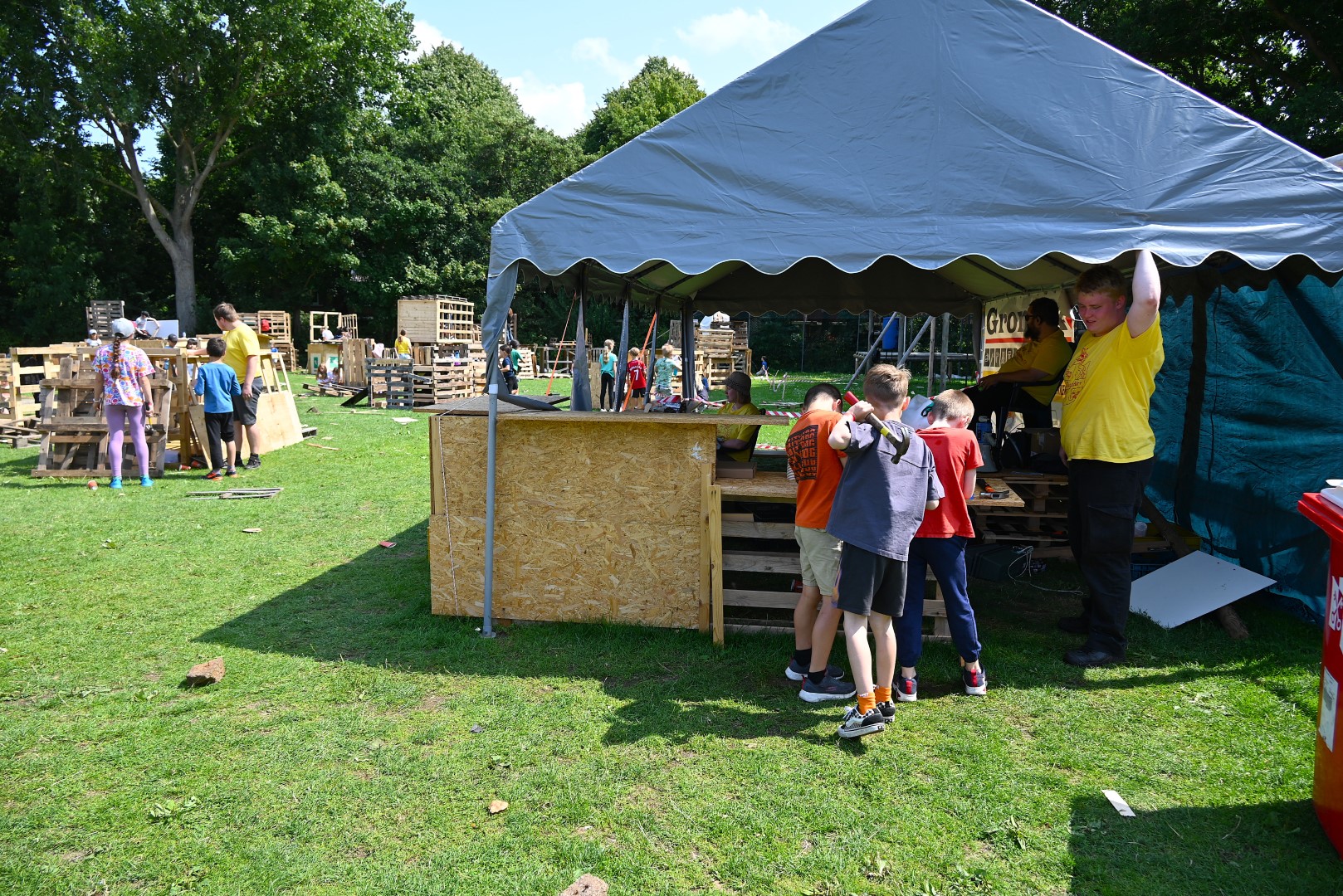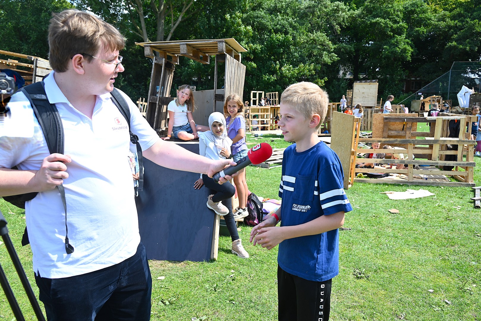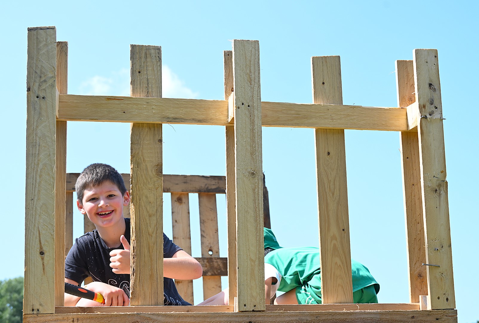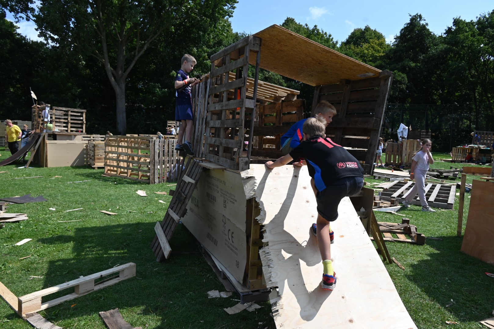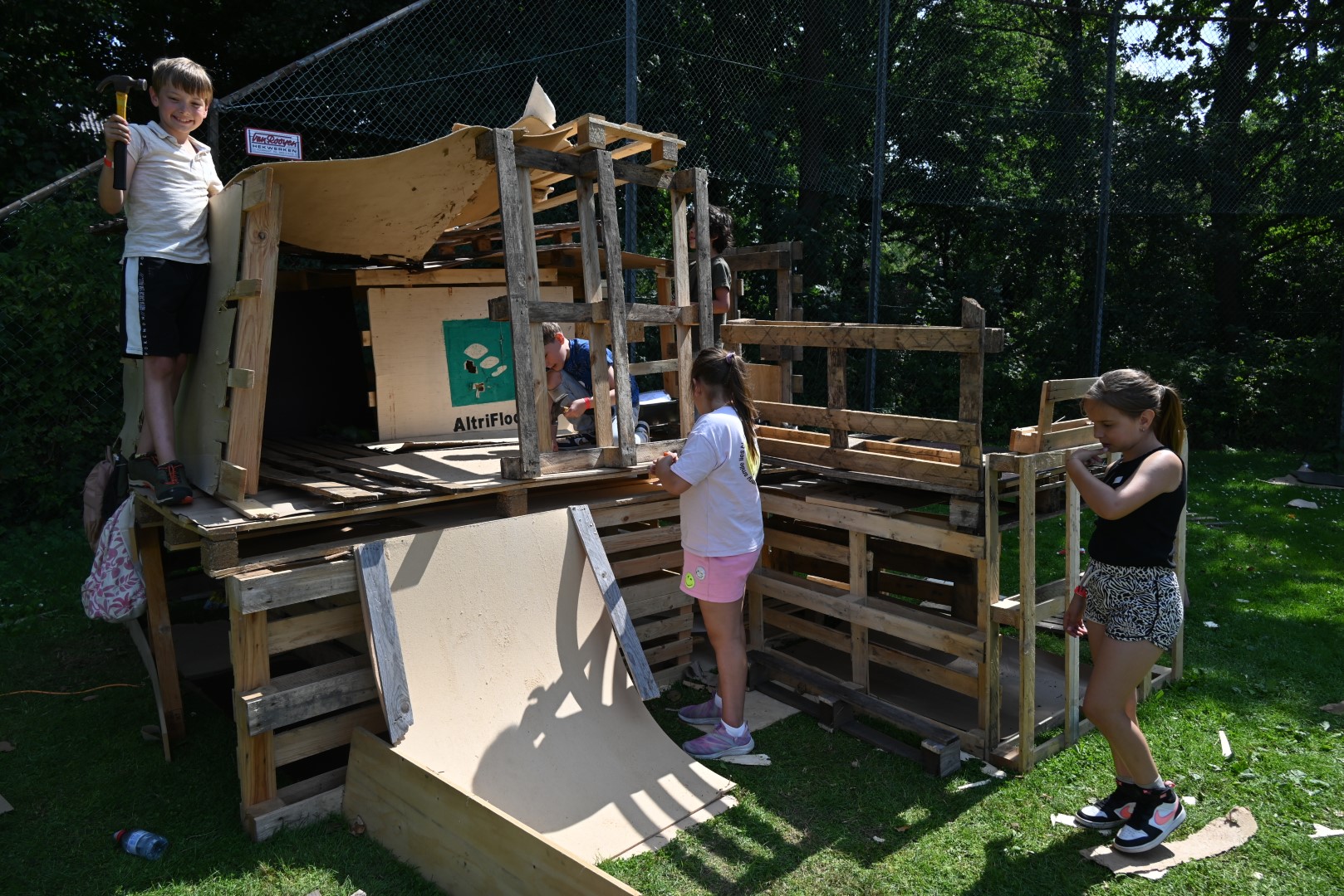 Hutten bouwen is altijd het populairste onderdeel van het vakantiedorp waar kinderen in hun eigen stad vakantie kunnen vieren. “Er zijn nu ongeveer tweehonderd kinderen aan het klussen”, zegt bestuurslid Jordy Piket. De andere honderd deelnemers doen een van de andere activiteiten.