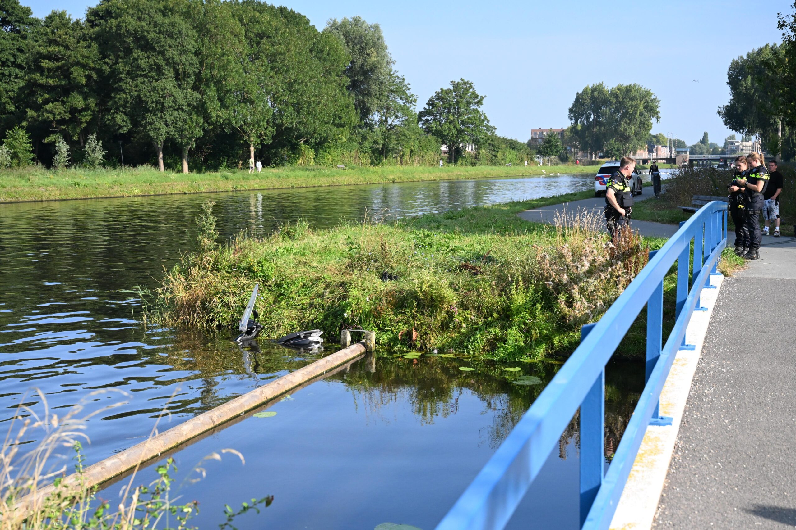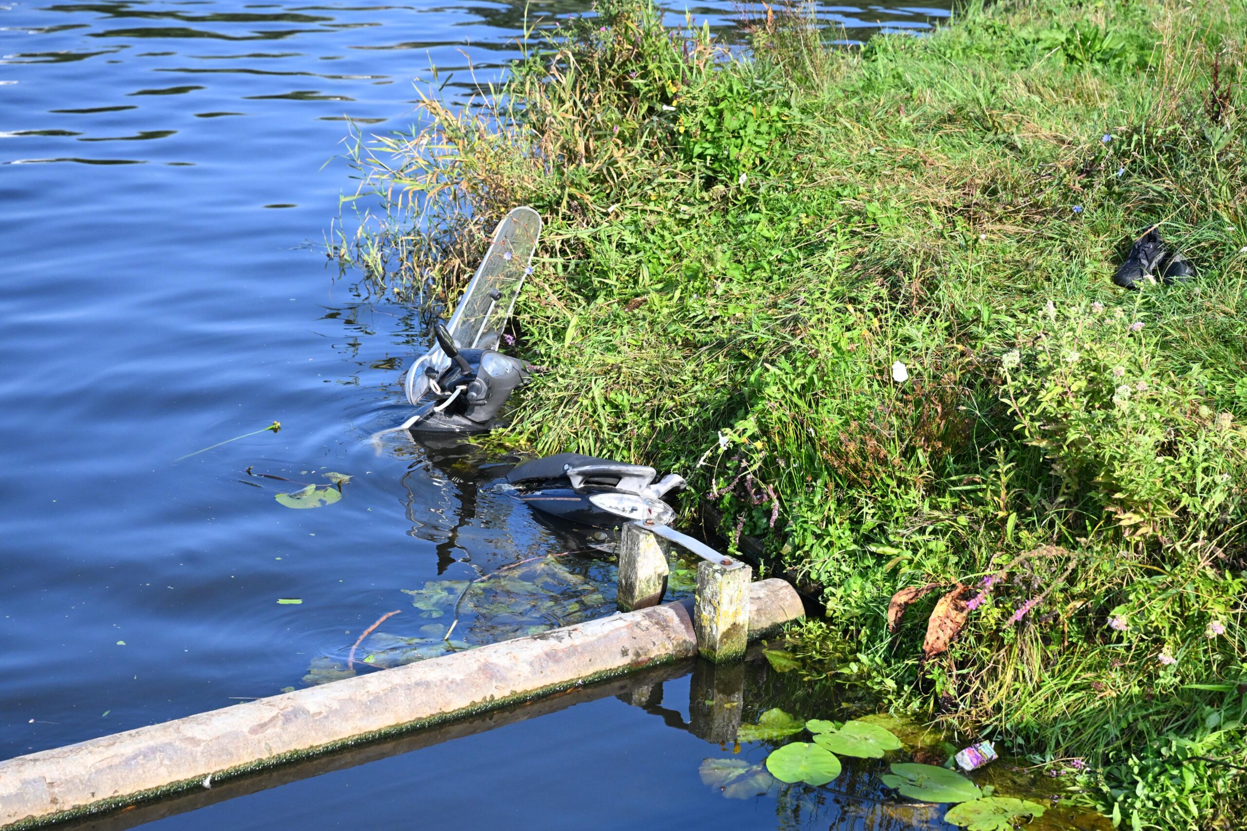 Op de val lagen ter hoogte van de plek waar de scooter in het water lag een paar schoenen inclusief een reiskoffer. De brandweer schaalde uiteindelijk op naar ‘middel waterongeval’, waarop een tweede duikploeg uit Alphen aan den Rijn met spoed werd gealarmeerd om te helpen zoeken.