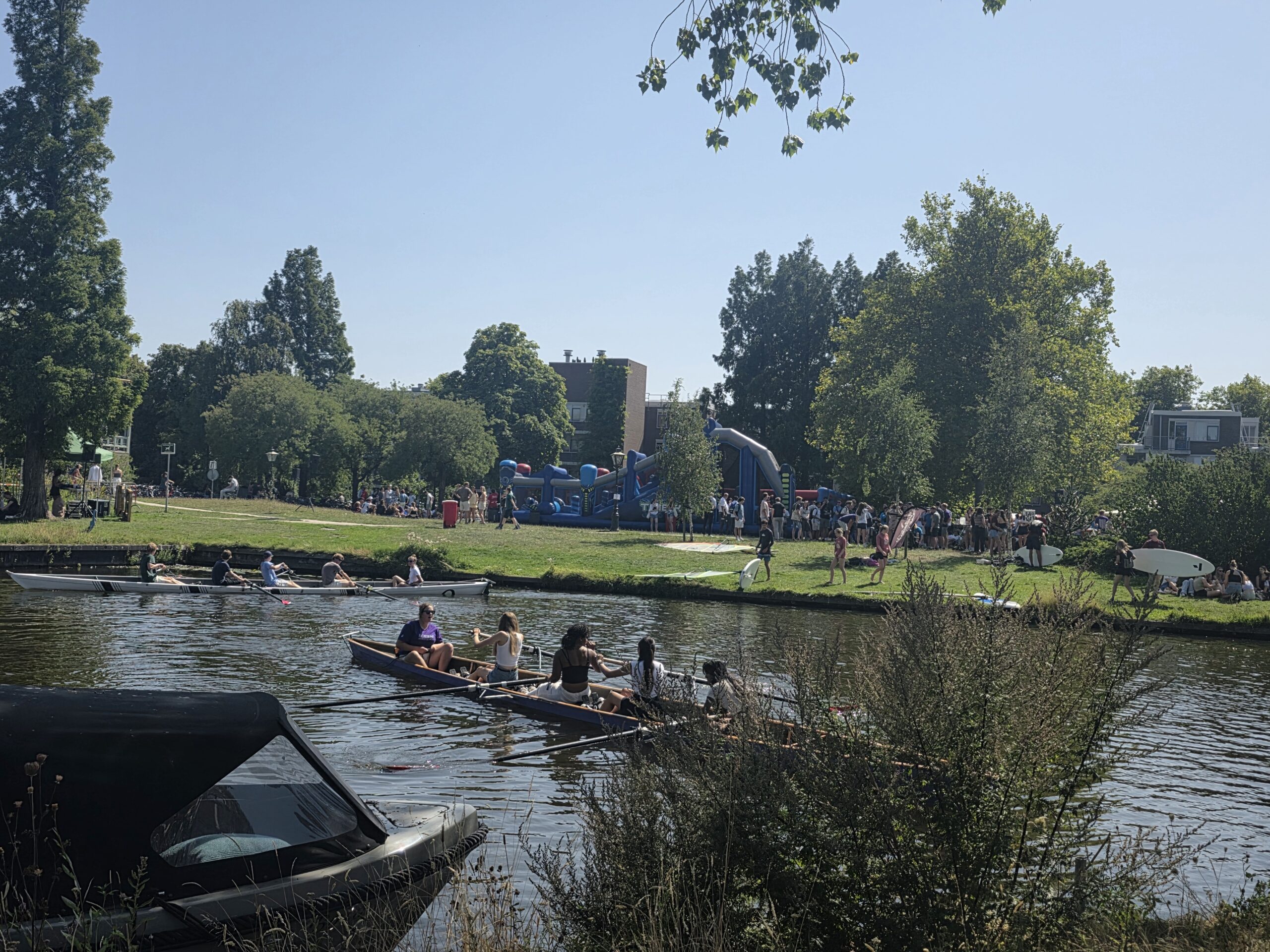 Bij kraampjes vertelden de leden over hun vereniging en op het water erachter werden demonstraties gegeven van onder meer roeien, zeilen en waterpolo. Studenten die wilden, konden de sporten ook zelf uitproberen. Weliswaar met kans op een nat pak.
