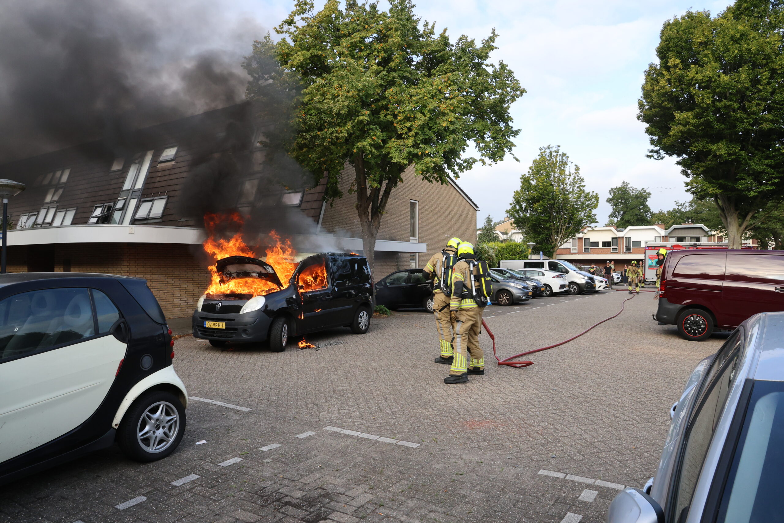 Even later vloog de voorzijde van haar voertuig en brand en binnen de kortste keren stond de hele auto in lichterlaaie. Dat gebeurde rond 9.00 uur op de Patellabank in de Leidse Merenwijk. De auto brandde helemaal uit en is total loss als gevolg van de felle brand.