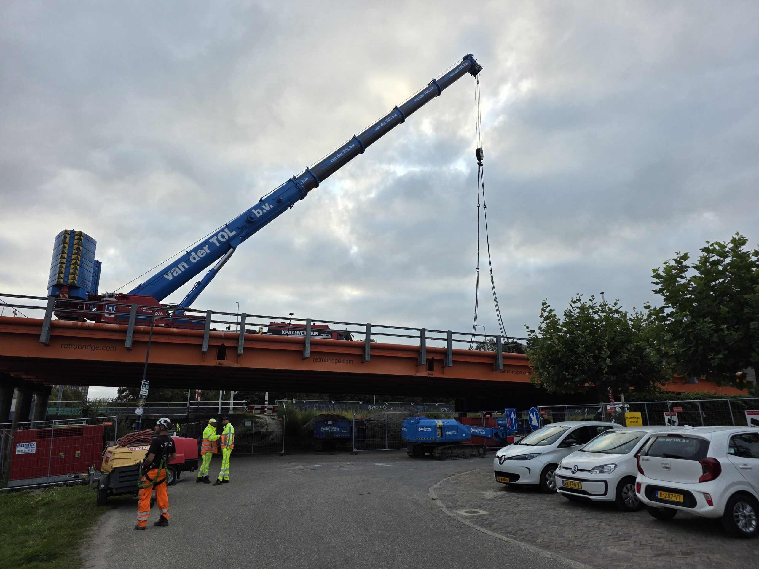 Daarvoor waren eerst pontons op hun plek gevaren, waarop hoogwerkers werden getakeld. Tijdens de werkzaamheden werden de tunnel tussen de Vlietweg en Cronesteyn voor de veiligheid regelmatig even afgesloten voor het verkeer.